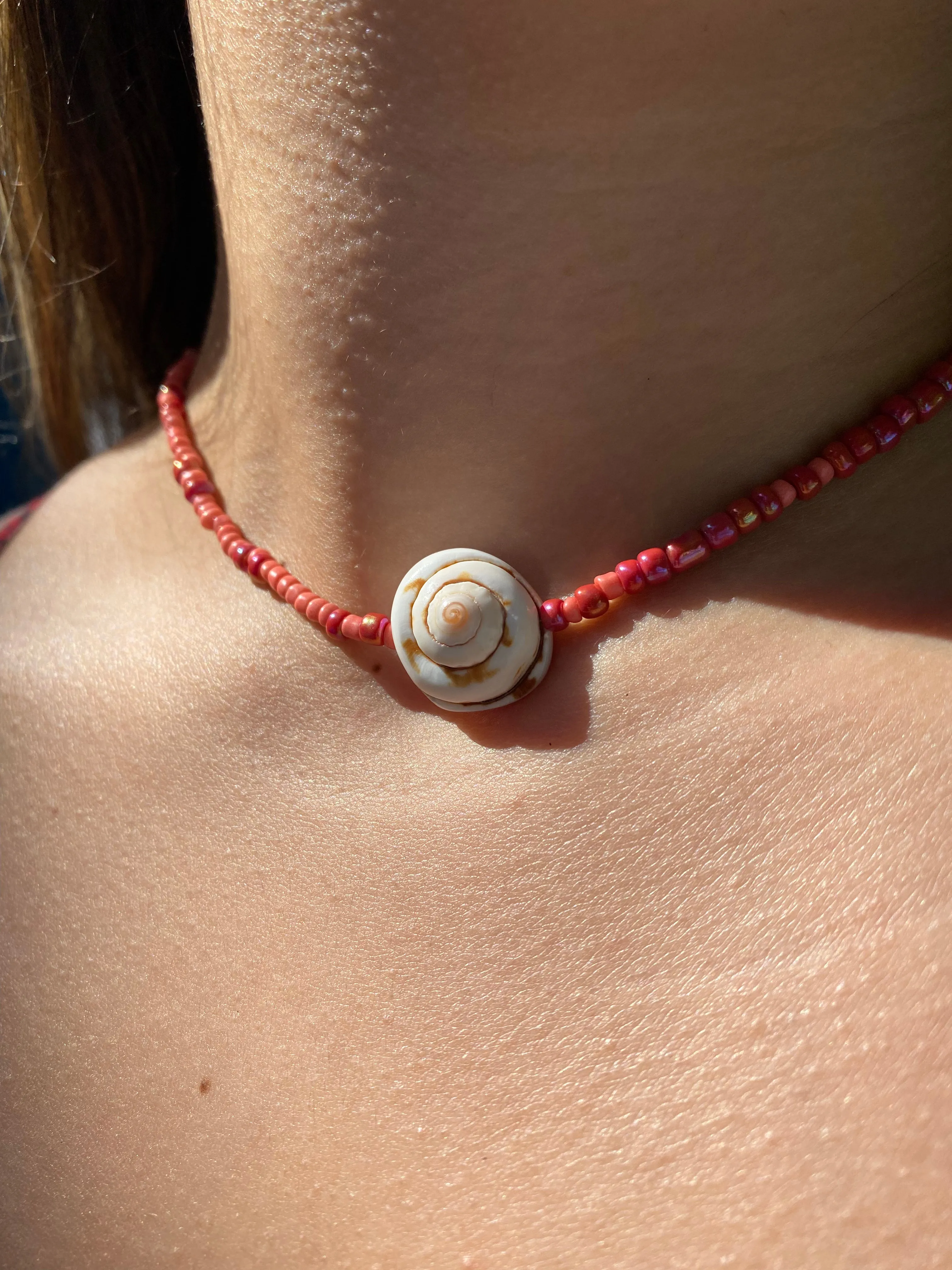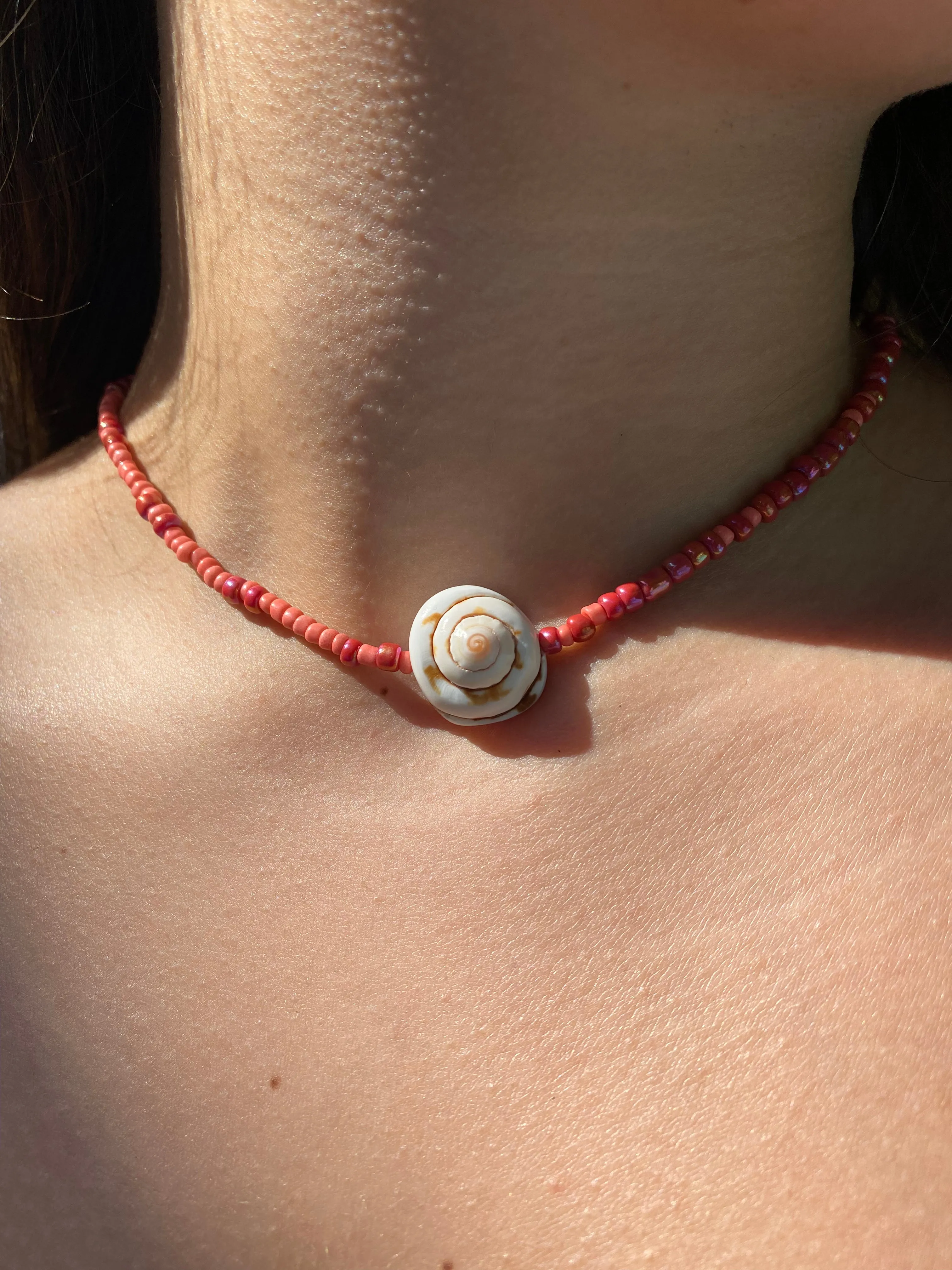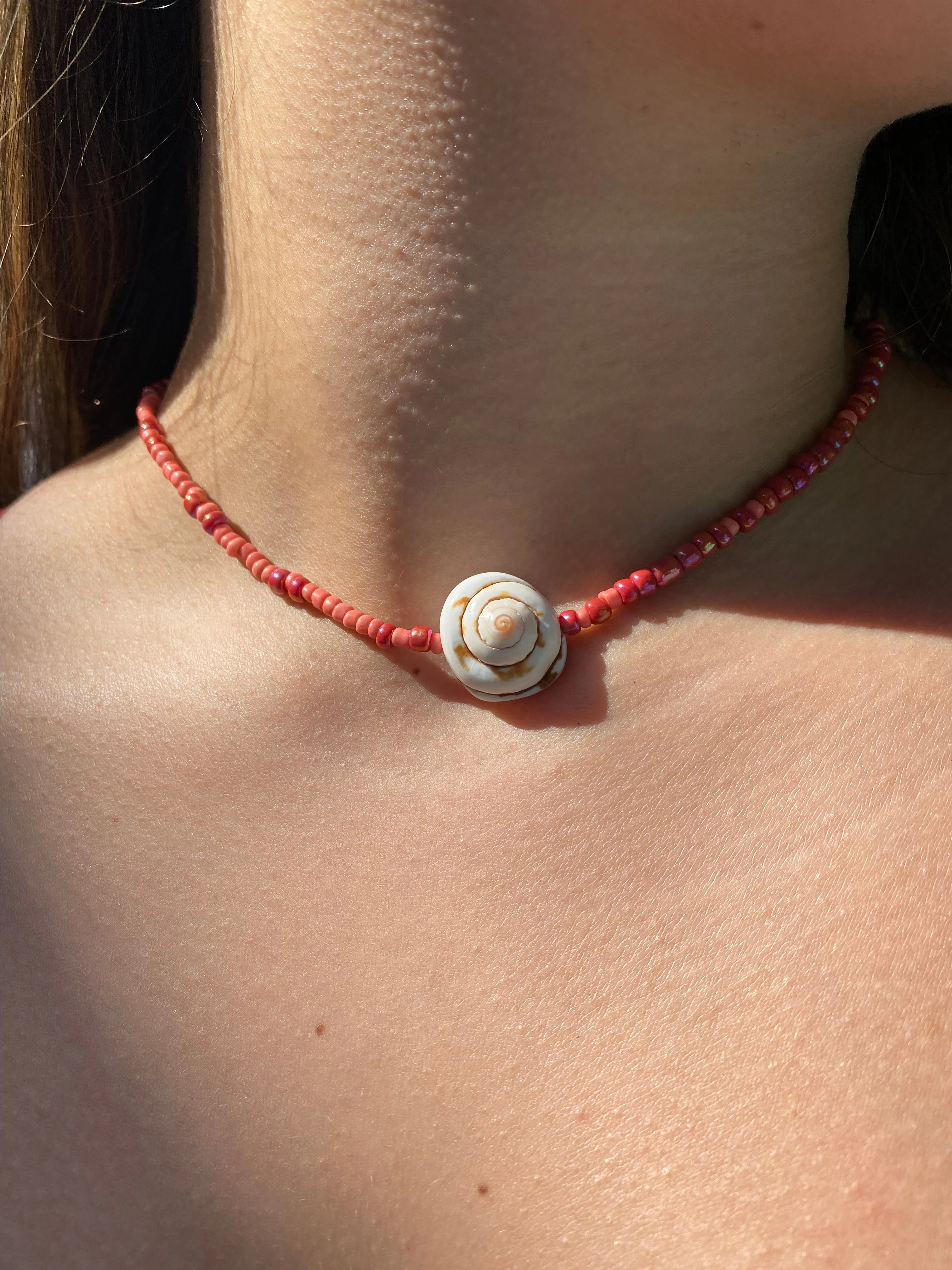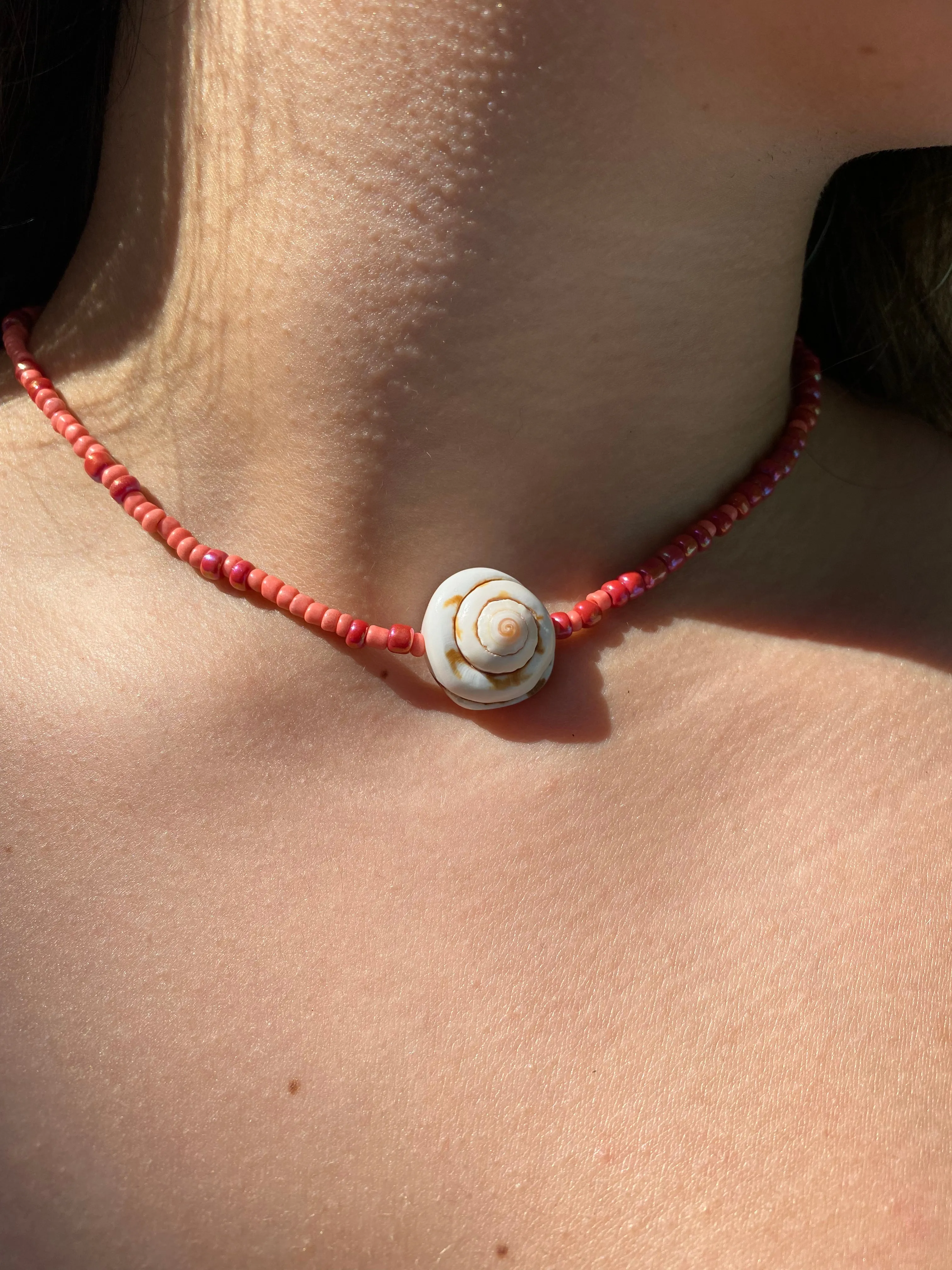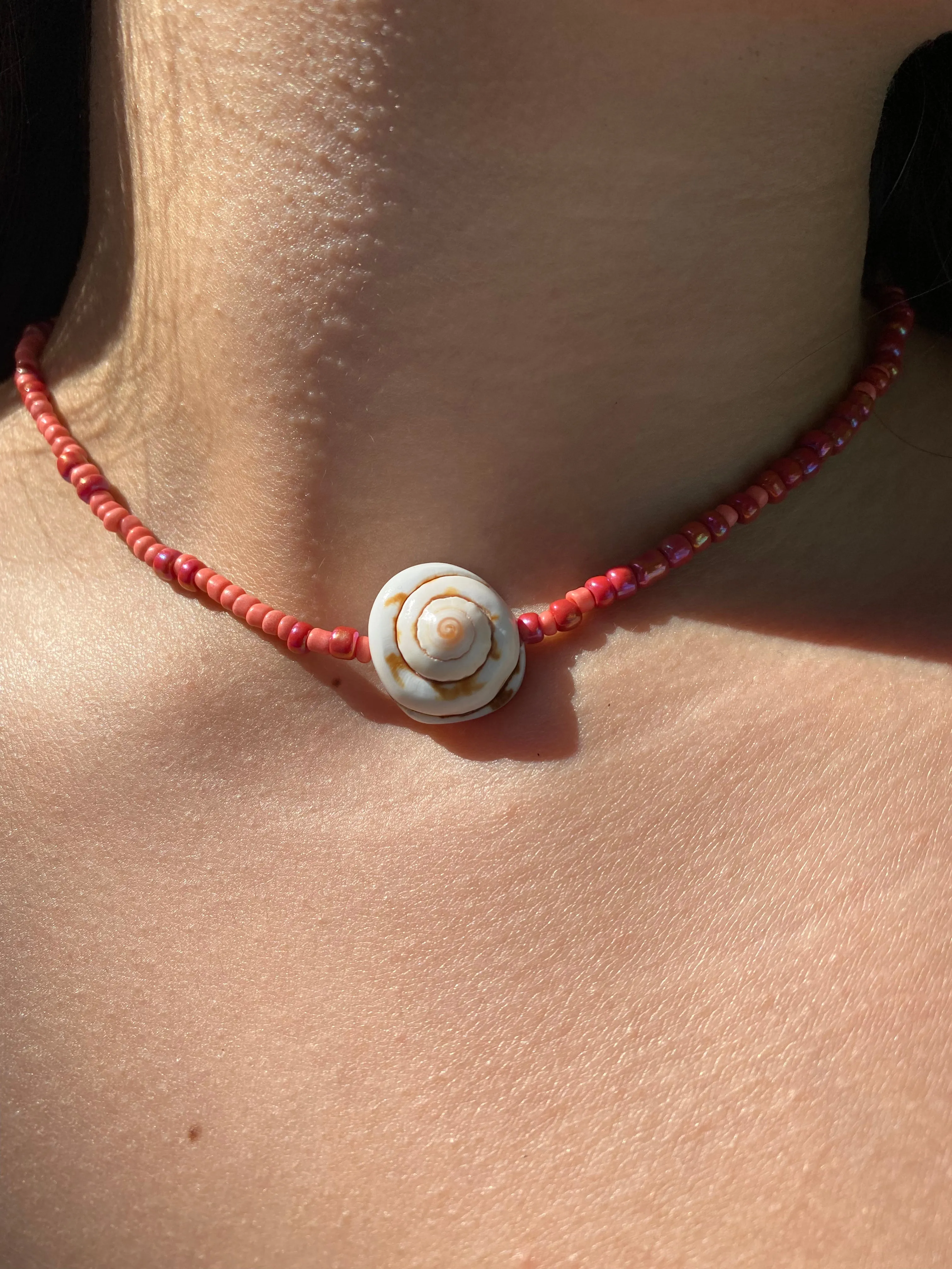 Materials: Glass Beads, Shells, Sterling Silver Lobster Lock