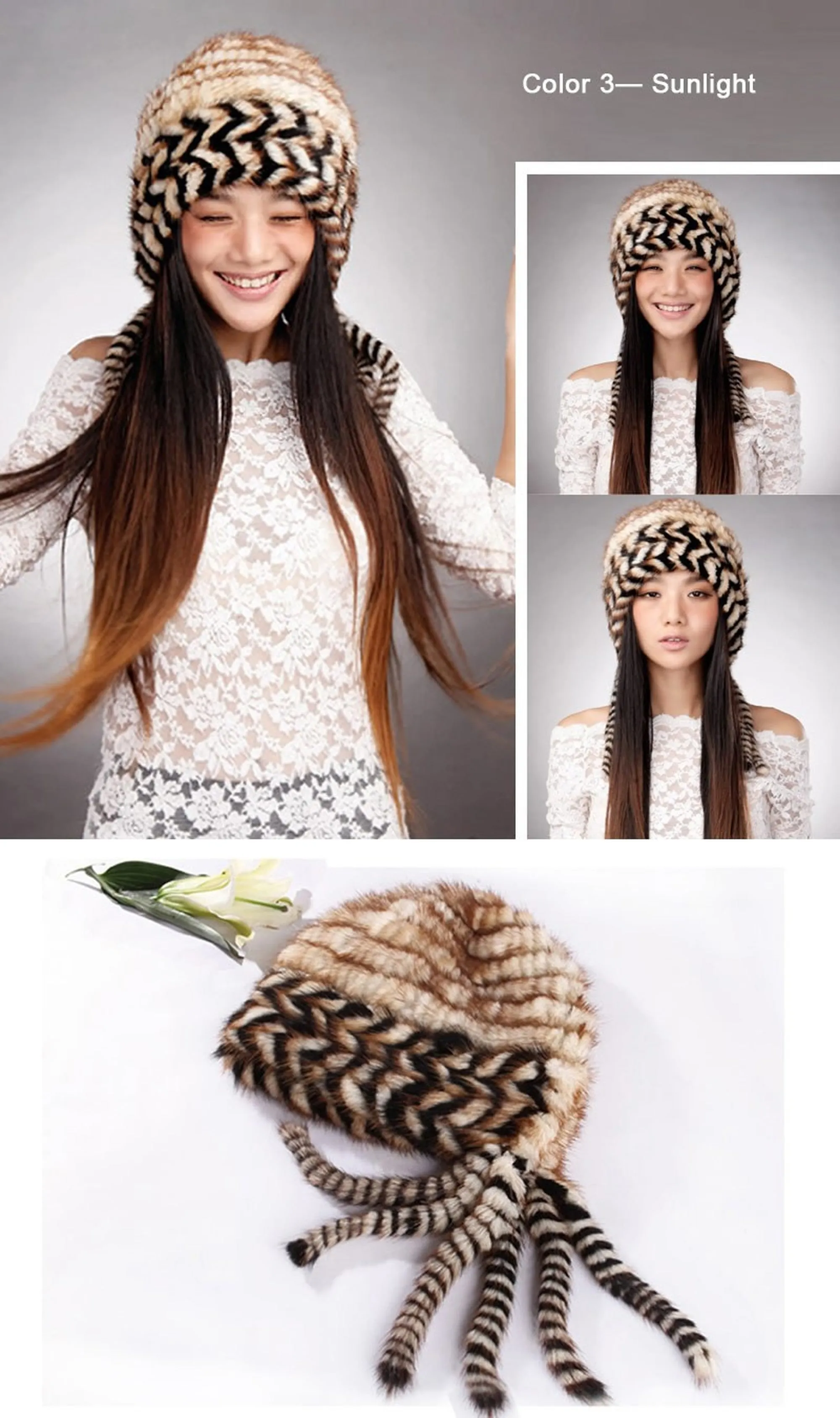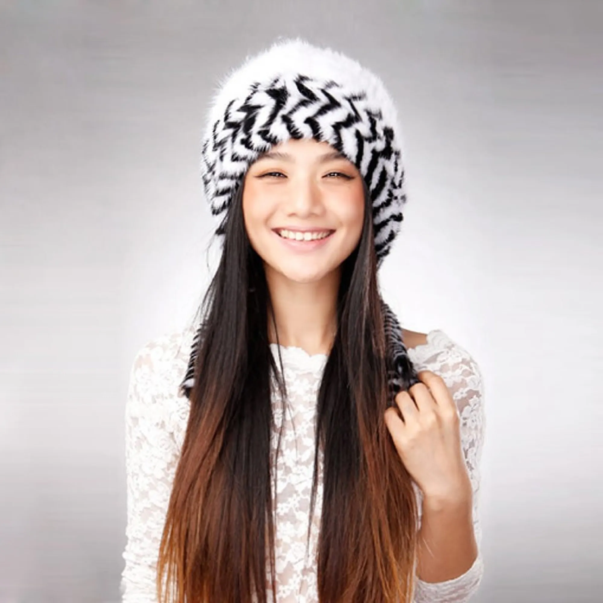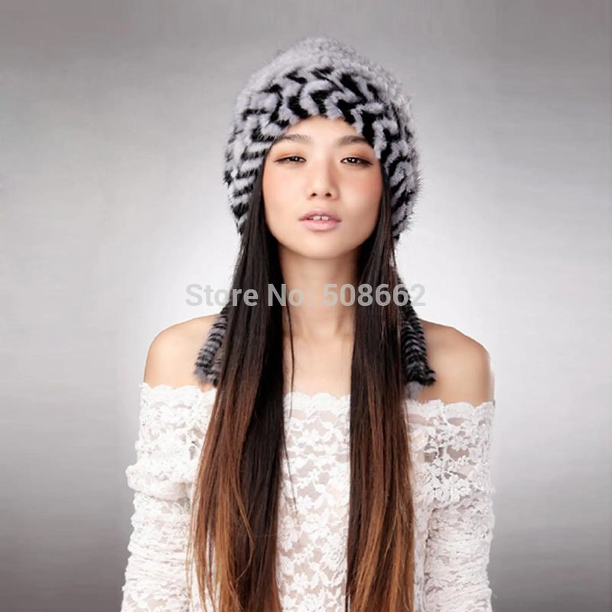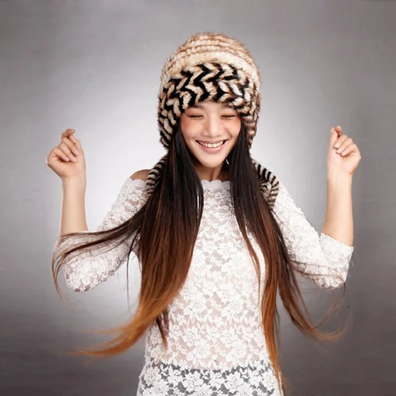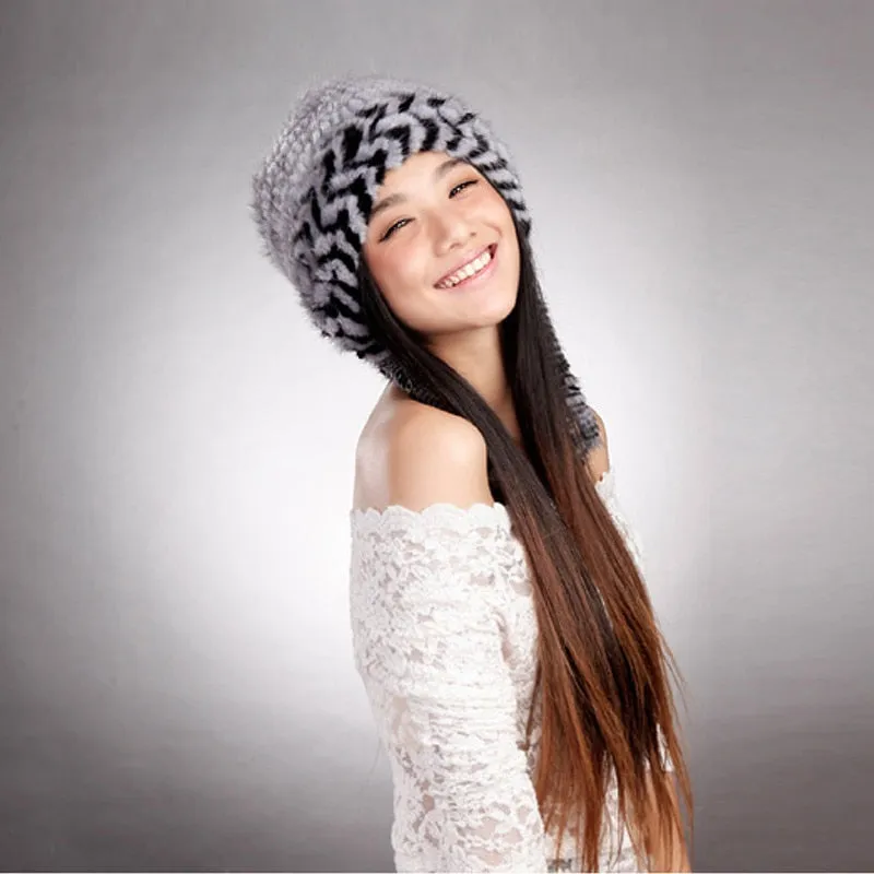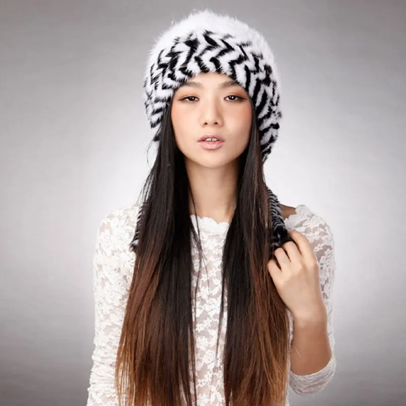 Cute Hats Fur Hat for Women Knitted Real Mink Fur Hat Fur Cap 14623