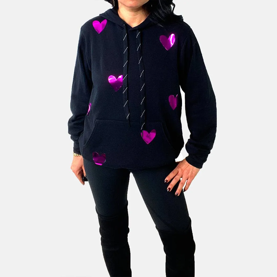 Fuchsia Foil hearts are cut and placed by hand in NYC!