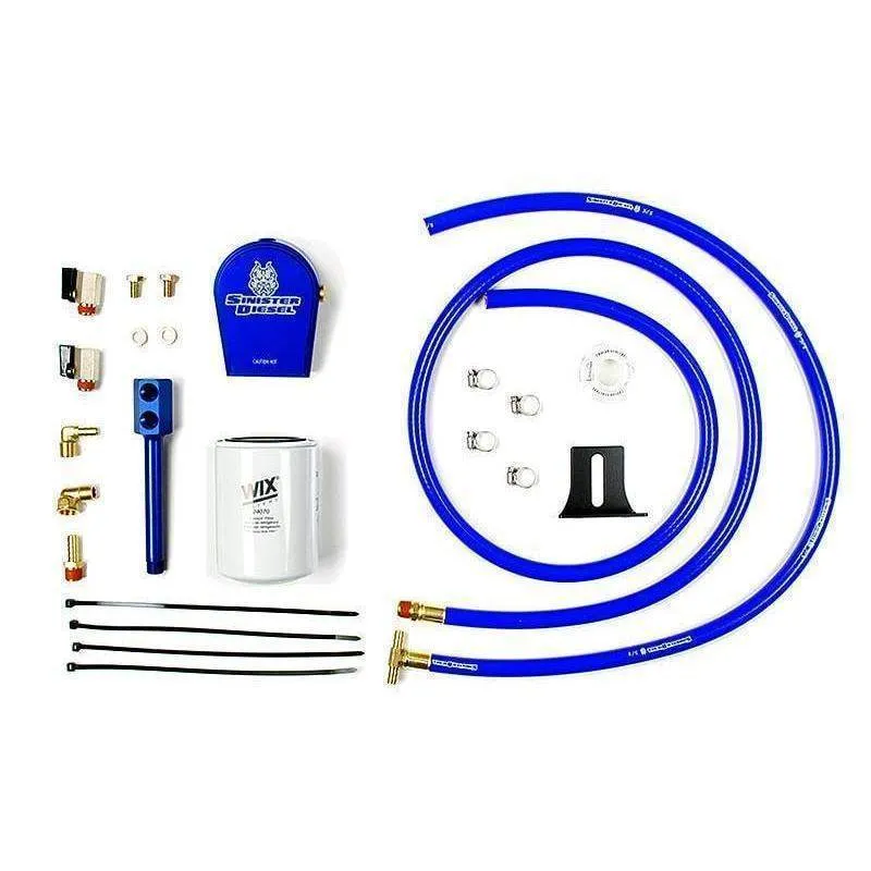 Add years of life to your Ford F-250, F-350 6.7L diesel engine with this Water Coolant Filter Bypass System. Removing contaminates such as the casting sand and metal shavings left over from the manufacturing process means your water pump, EGR cooler and engine oil cooler will all last longer. This kit is designed to bypass and filter small amounts of coolant while your Ford Powerstroke engine is running. The CNC machined billet 6061 aluminum anodized construction filter head attaches to supplied bracket, which mounts to factory holes in your Ford truck’s chassis. The filter boss includes 2 threaded inlet ports and 1 outlet port. This coolant bypass kit includes all fittings needed for installation. The silicone hose fittings are pre-assembled for simple, leak-proof connections and are factory tested at twice the recommended radiator cap pressure.