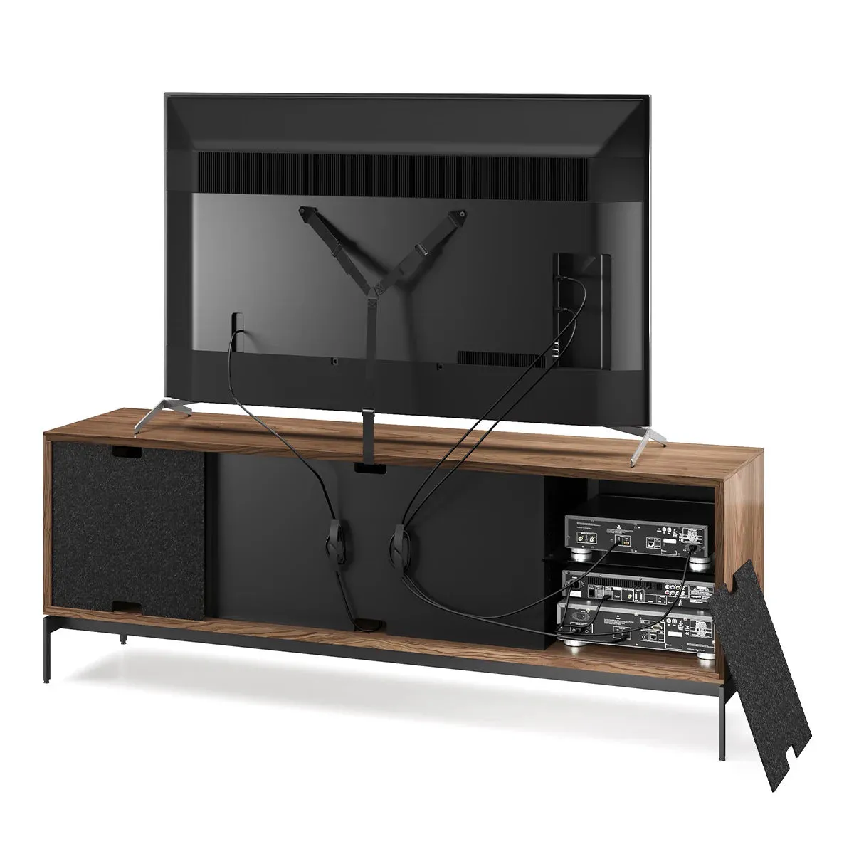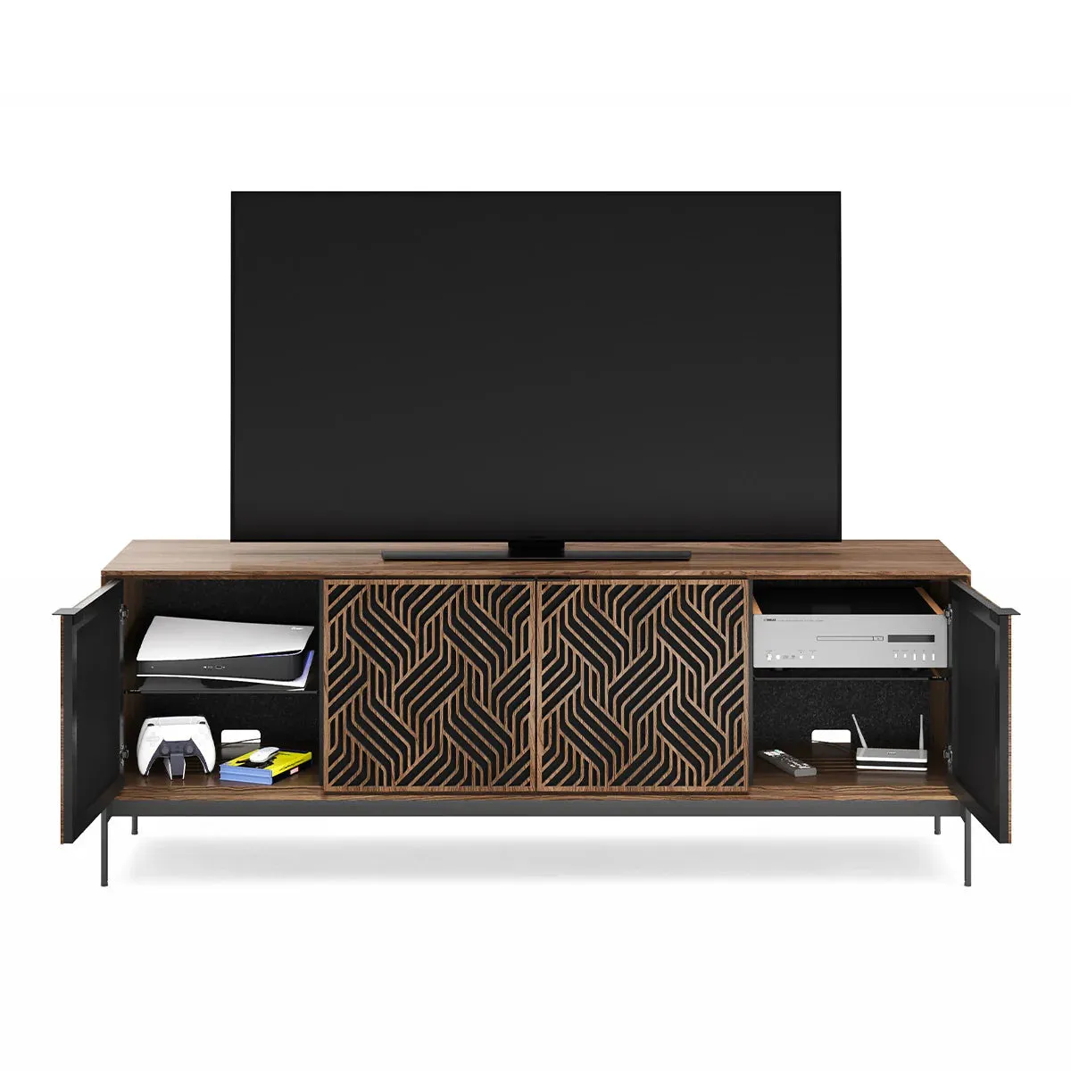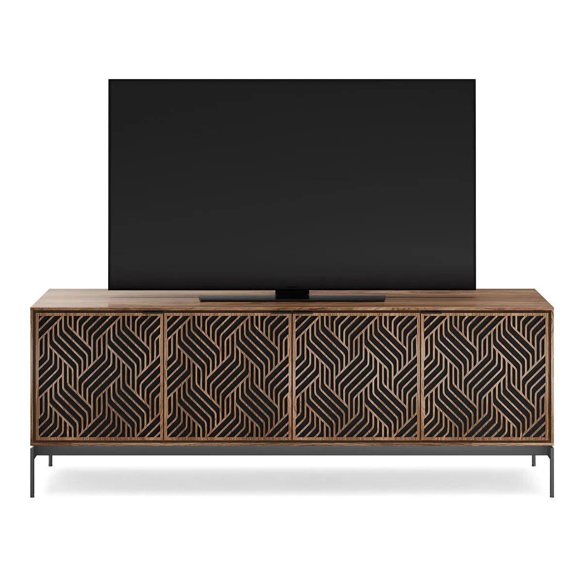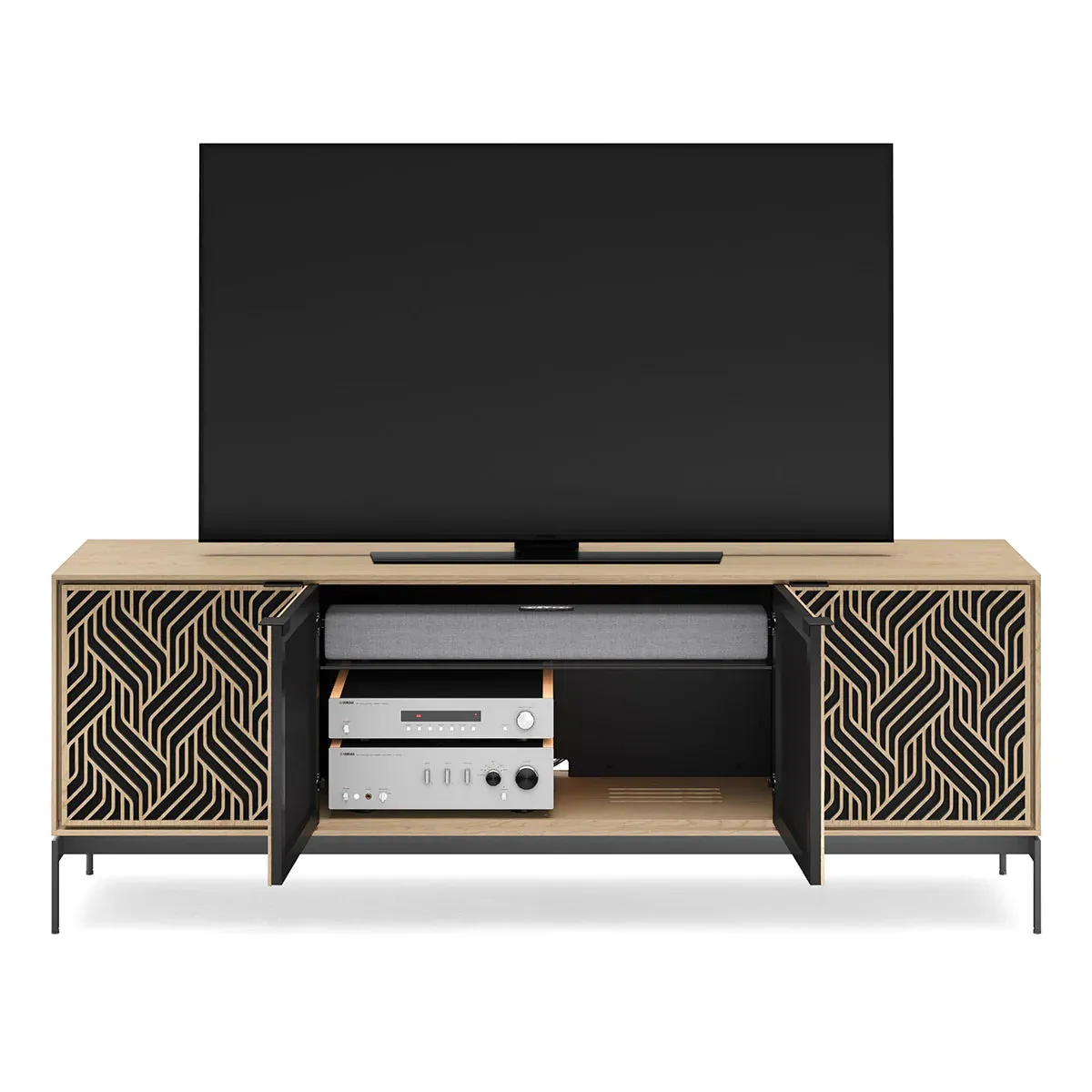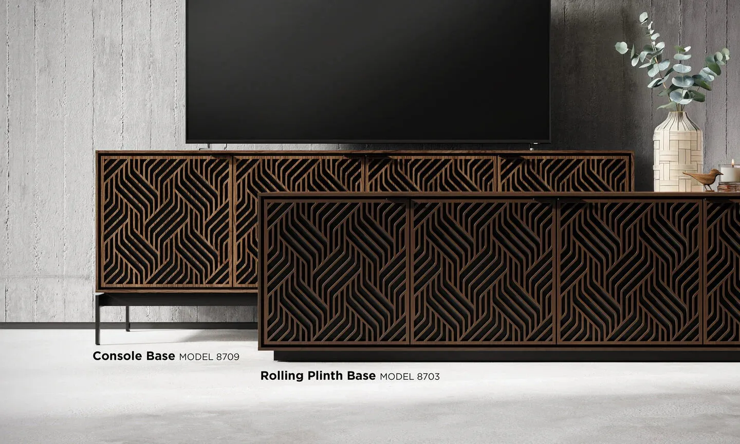 The BDI Elements 8709 Weave Media Cabinet with Console Base is a fusion of organic design and cutting-edge functionality, perfect for modern living spaces. The cabinet features the Weave door pattern, bringing a textured and natural aesthetic to any room. Designed to support larger TVs, it provides ample space for your media components, while the console base adds height and prominence to your living room. Acoustically transparent doors, hidden wheels, and adjustable shelves ensure that your tech setup remains organized and easy to manage. With soft-close doors and precision-engineered details, the Elements 8709 Weave Media Cabinet is a stylish and practical addition to your home.