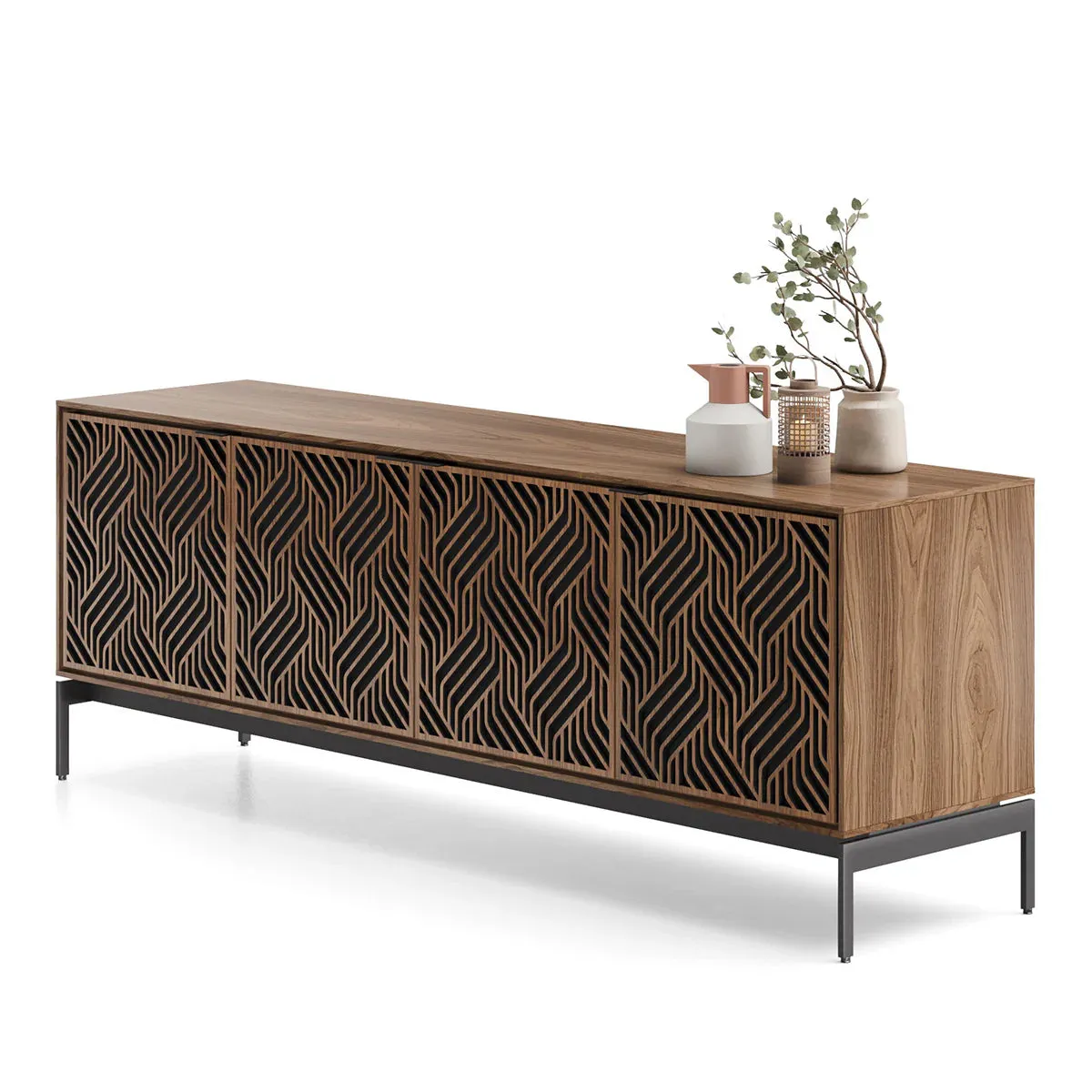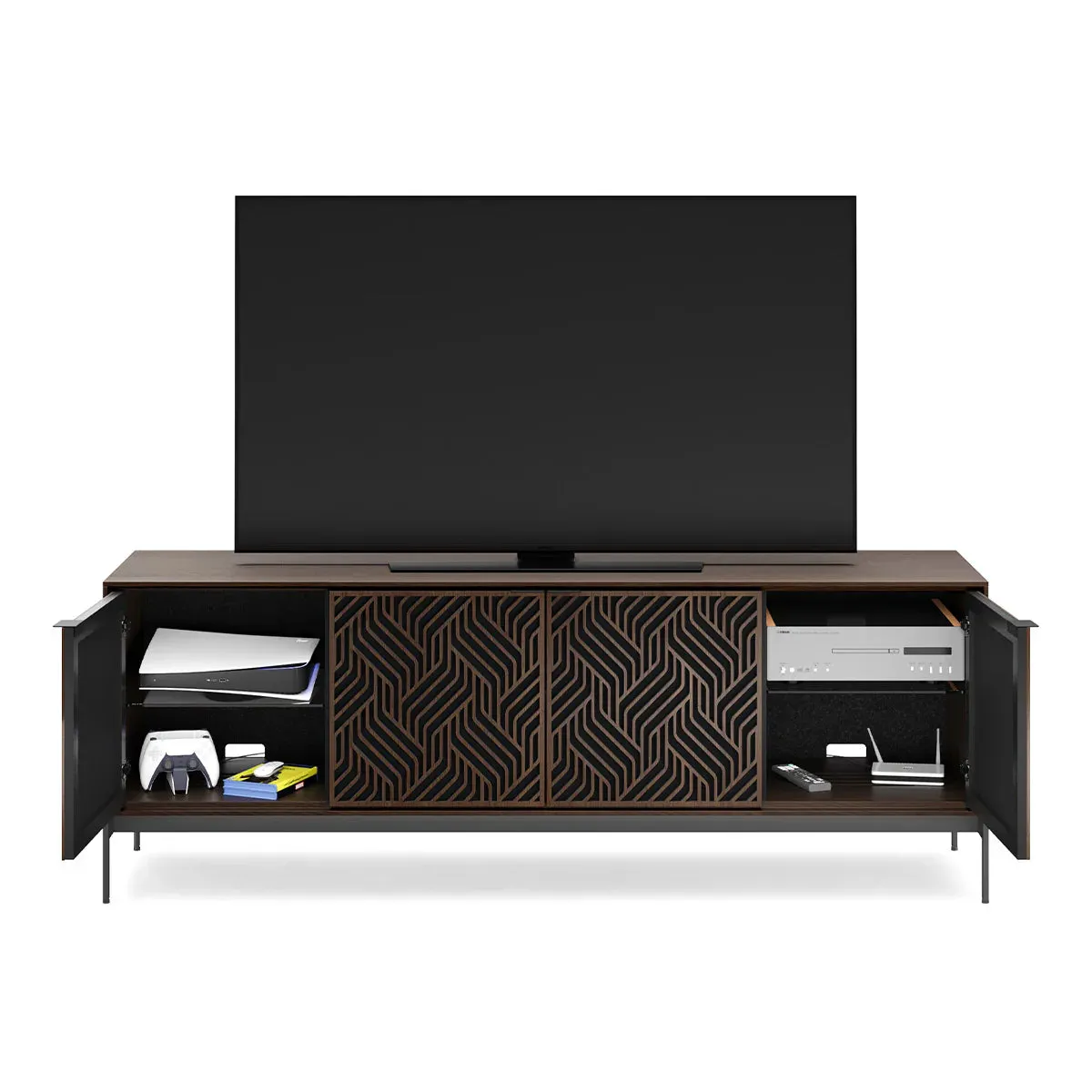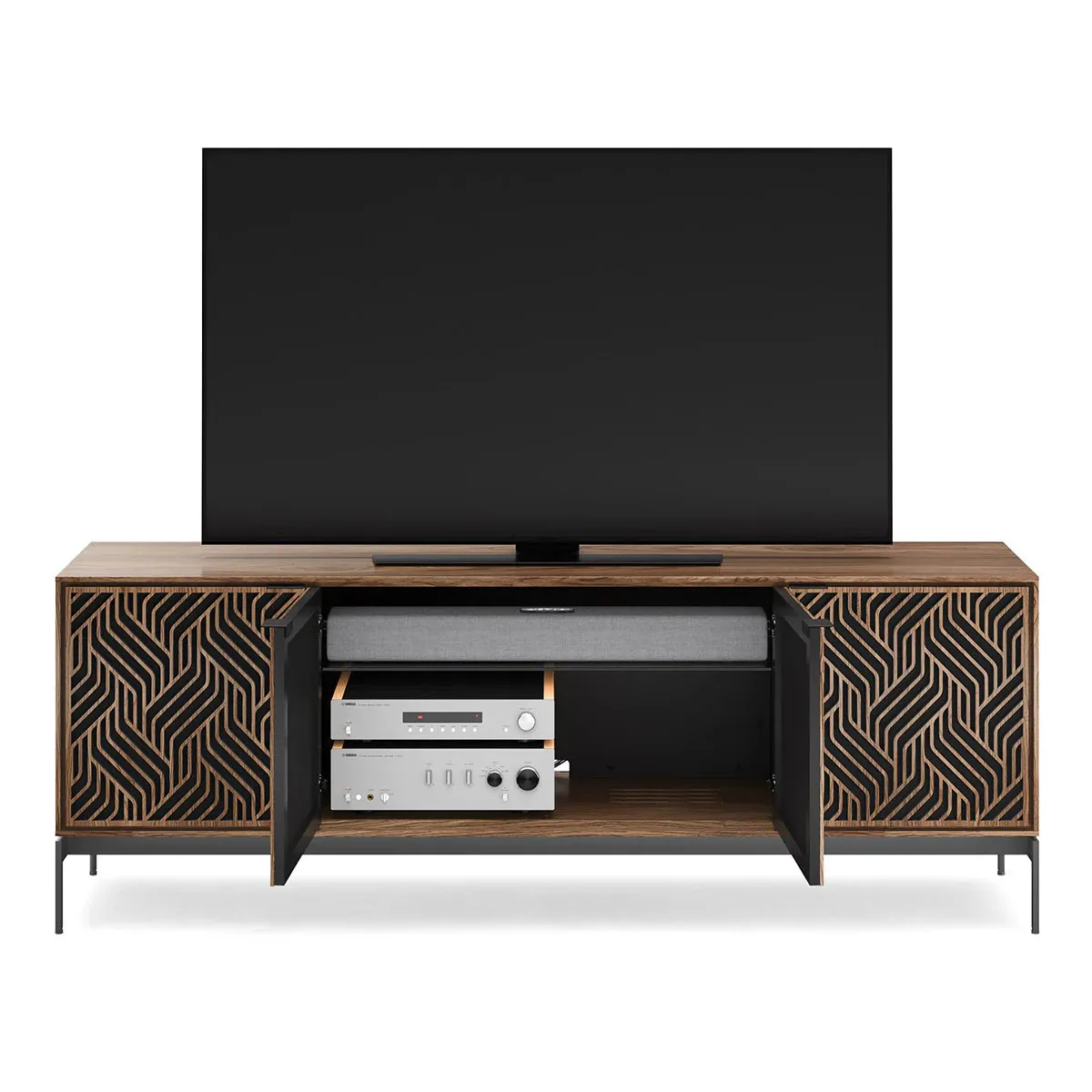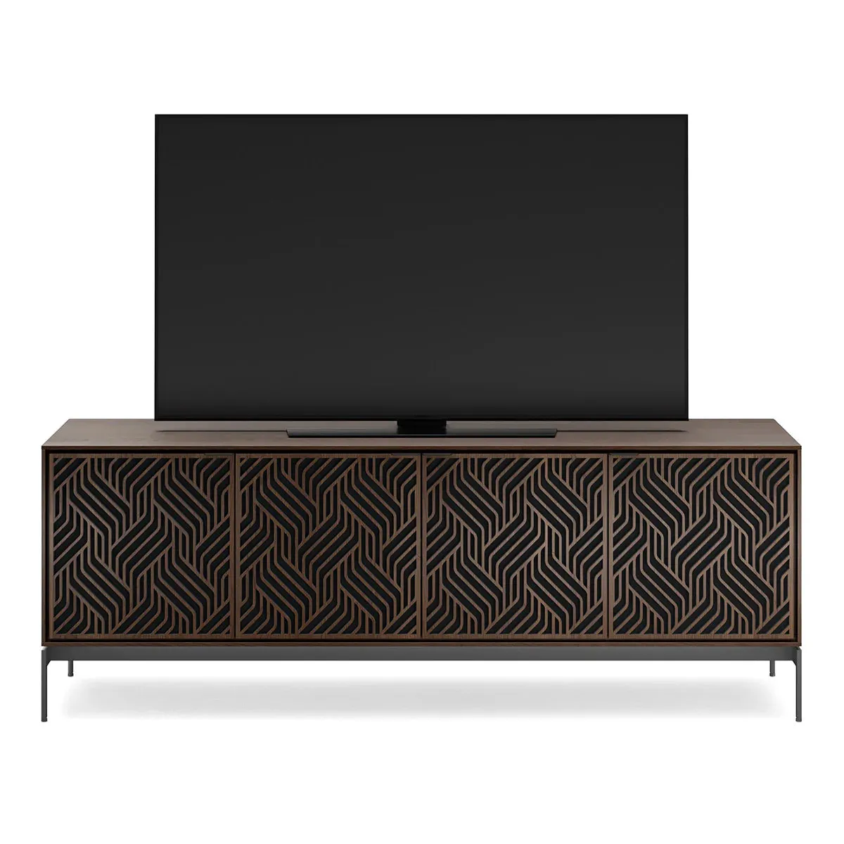 The BDI Elements 8709 Weave Media Cabinet with Console Base is a fusion of organic design and cutting-edge functionality, perfect for modern living spaces. The cabinet features the Weave door pattern, bringing a textured and natural aesthetic to any room. Designed to support larger TVs, it provides ample space for your media components, while the console base adds height and prominence to your living room. Acoustically transparent doors, hidden wheels, and adjustable shelves ensure that your tech setup remains organized and easy to manage. With soft-close doors and precision-engineered details, the Elements 8709 Weave Media Cabinet is a stylish and practical addition to your home.
