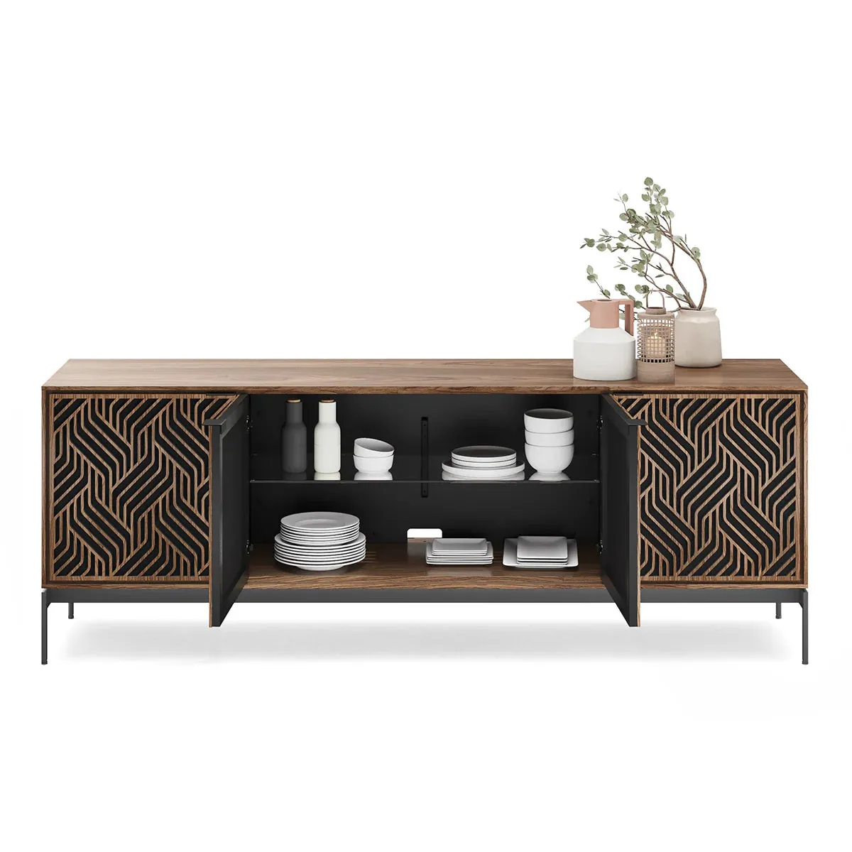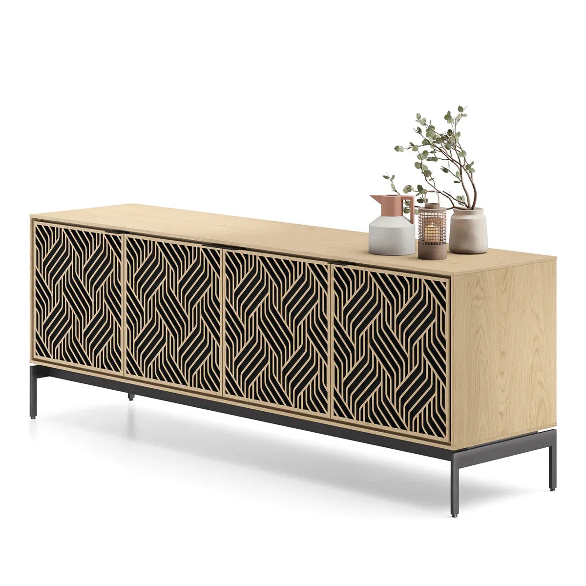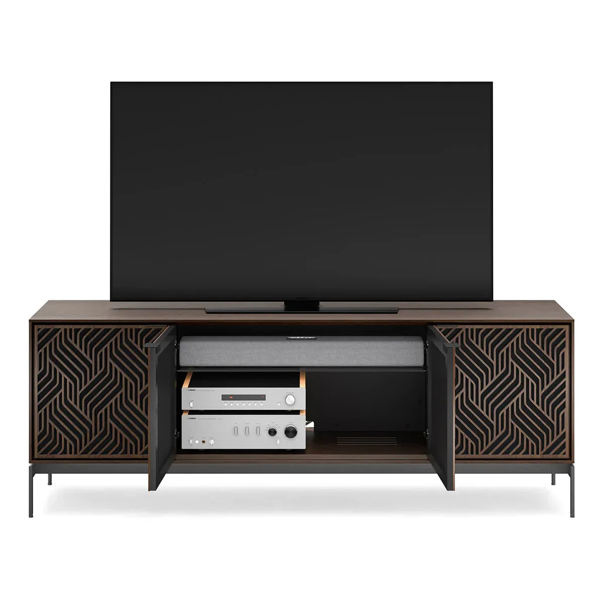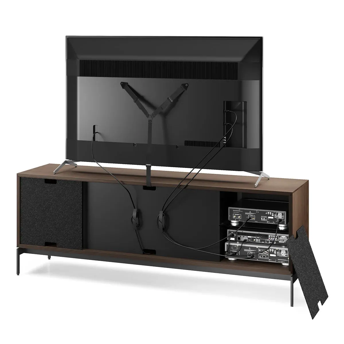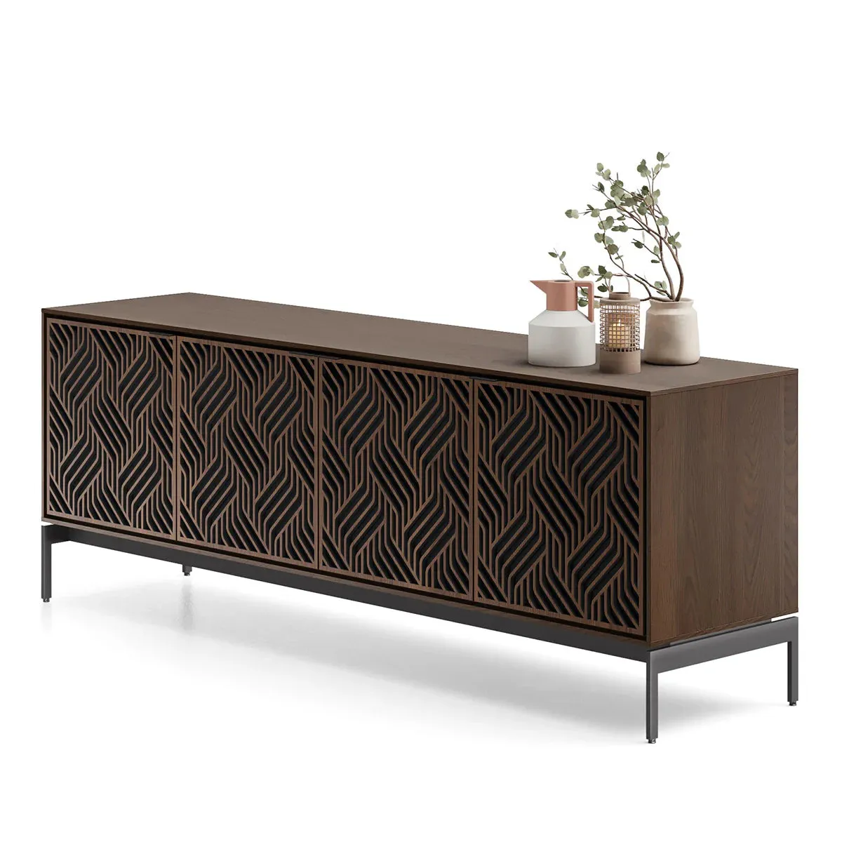 The BDI Elements 8709 Weave Media Cabinet with Console Base is a fusion of organic design and cutting-edge functionality, perfect for modern living spaces. The cabinet features the Weave door pattern, bringing a textured and natural aesthetic to any room. Designed to support larger TVs, it provides ample space for your media components, while the console base adds height and prominence to your living room. Acoustically transparent doors, hidden wheels, and adjustable shelves ensure that your tech setup remains organized and easy to manage. With soft-close doors and precision-engineered details, the Elements 8709 Weave Media Cabinet is a stylish and practical addition to your home.