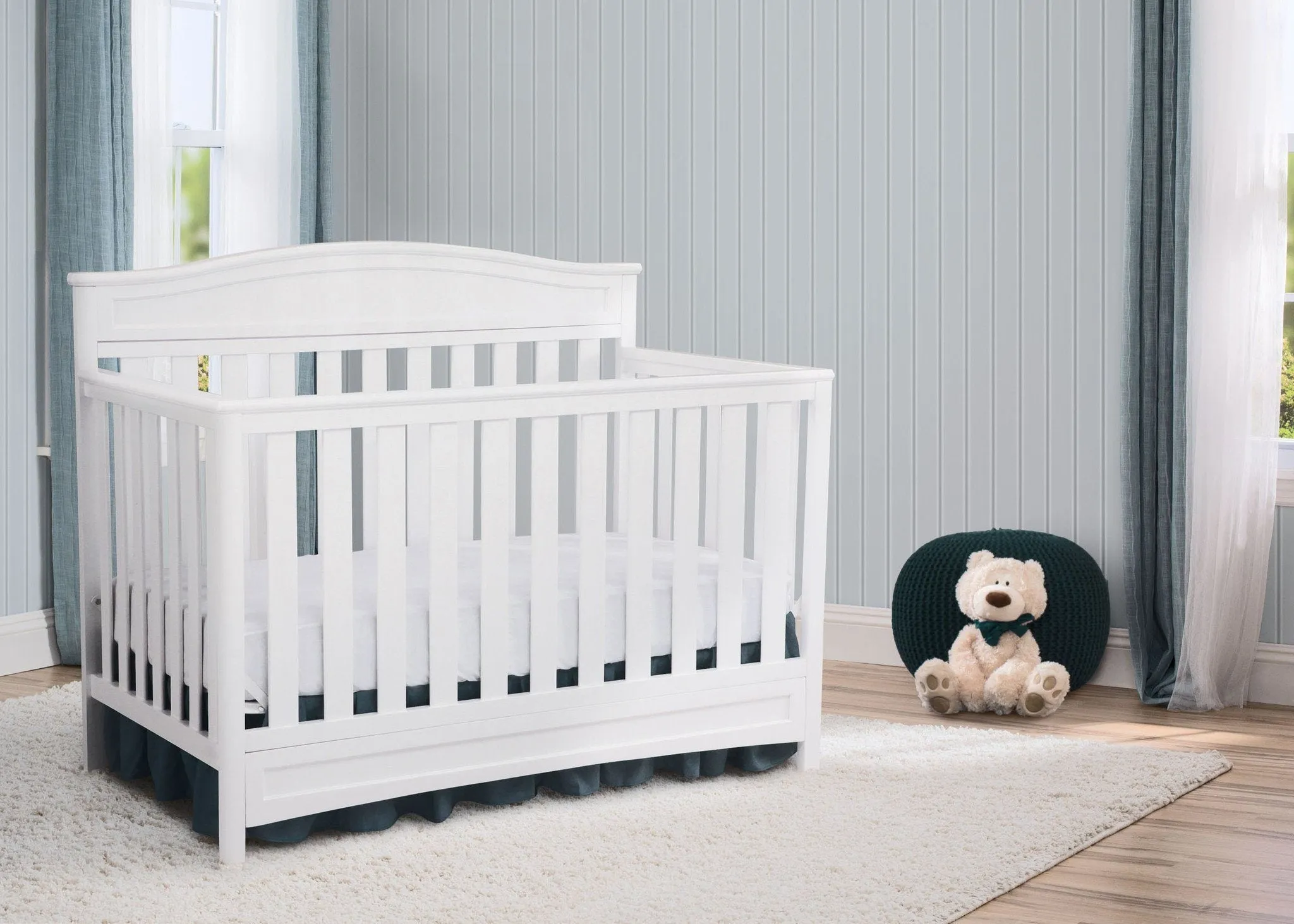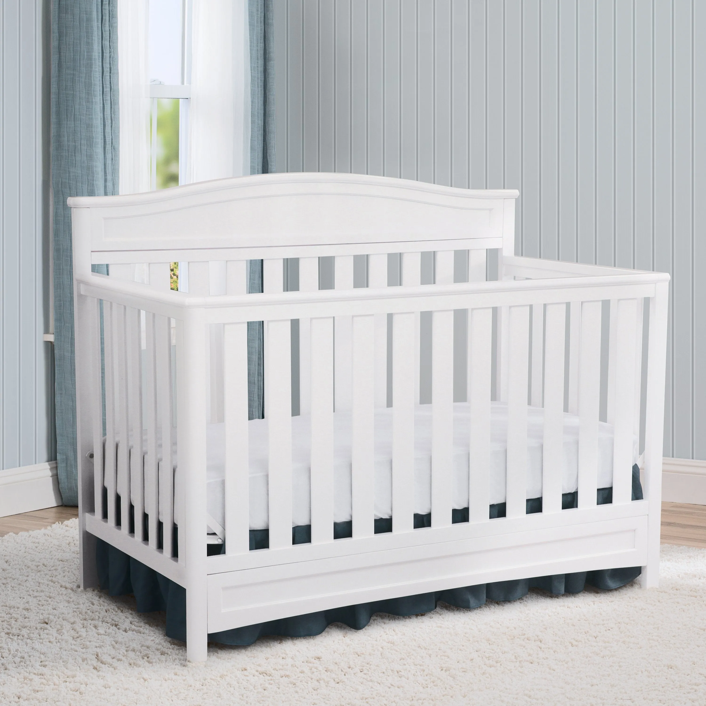 The Essington 4-in-1 Convertible Crib from Delta Children goes beyond classic good looks: Its durable construction lasts a lifetime, and it effortlessly converts from a crib with three mattress height positions to a toddler bed, daybed and full size bed. Designed to give any nursery a gorgeous focal point, it features a slightly curved headboard and airy slats that provide a clear view to Baby. Rigorously tested to ensure your child’s safety, the Essington 4-in-1 Convertible Crib from Delta Children is JPMA certified, and made to Delta Children’s exacting standards of quality, design and longevity.