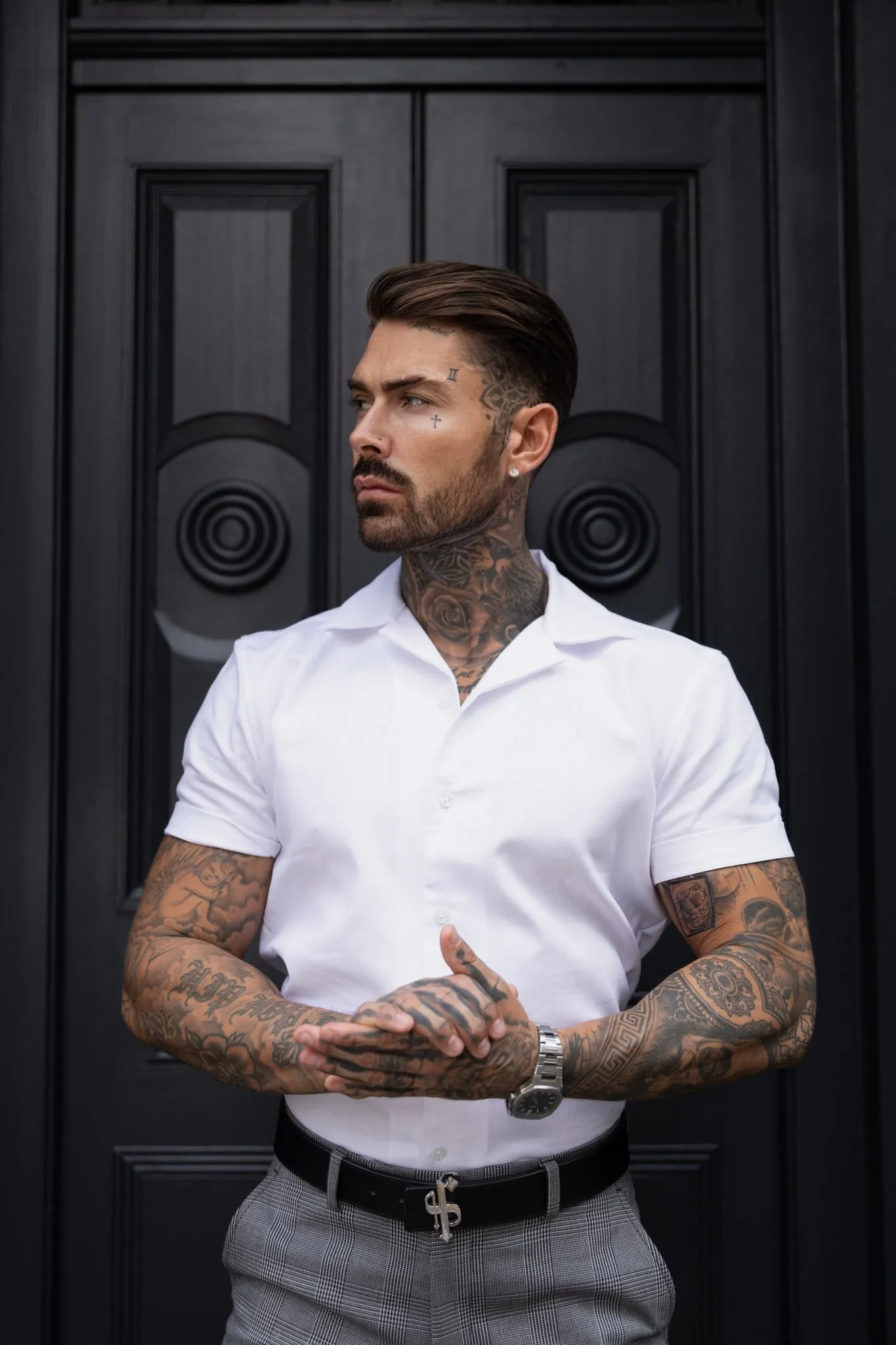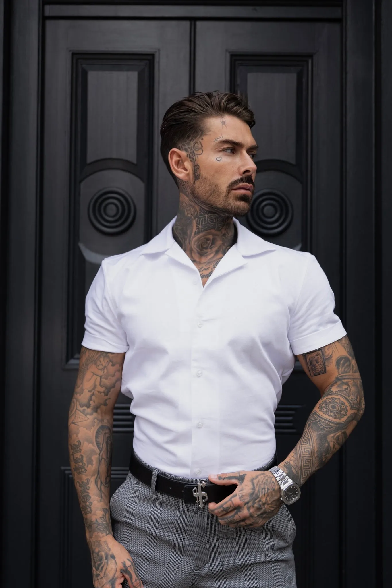 Father Sons Hawaiian Boxy Stretch White Linen Short Sleeve with Revere Collar Short Sleeve - FS1095