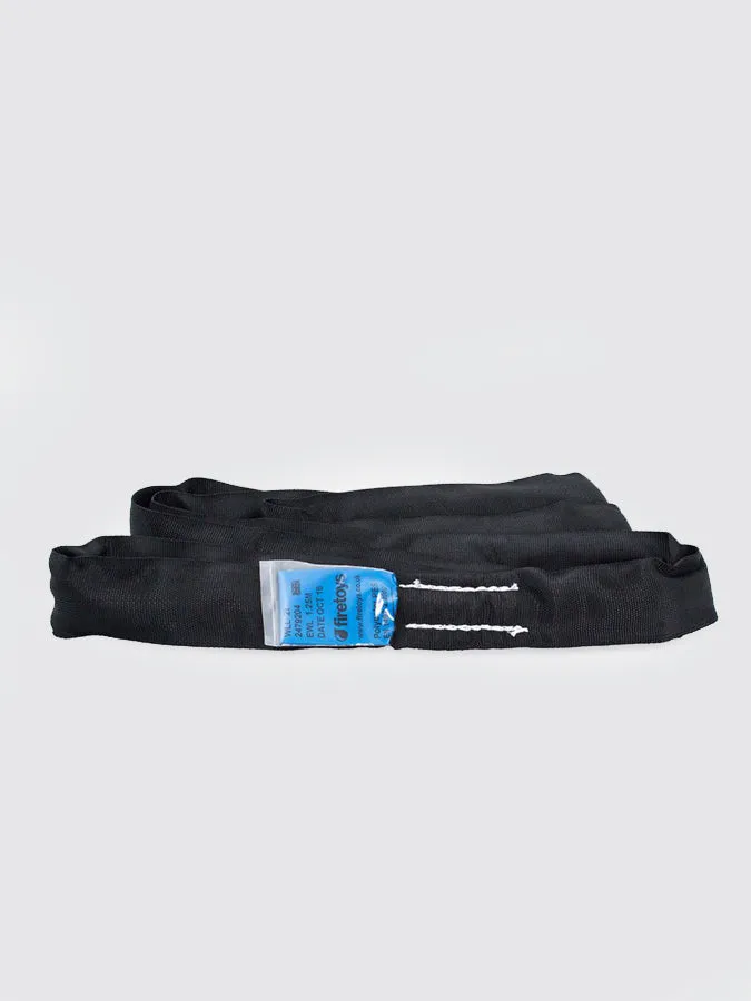 Black circular polyester fibre slings / strops used for rigging. These strops can be attached directly to shackles, carabinas, quick links or any other non abrasive anchor point. Being circular they are very quick and easy to attach.