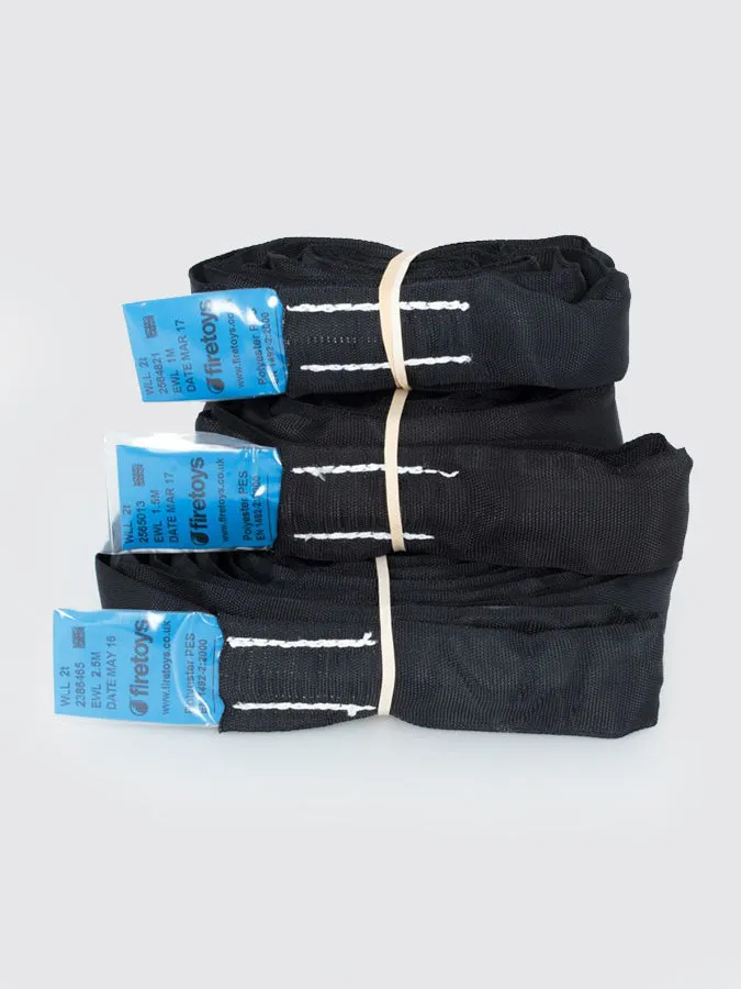 These strops are ideal for slinging around a beam and attaching together as a rigging point, but as they are very strong and safety rated they are also extensively used as a cheap and easy alternative to hanging cables and ropes.