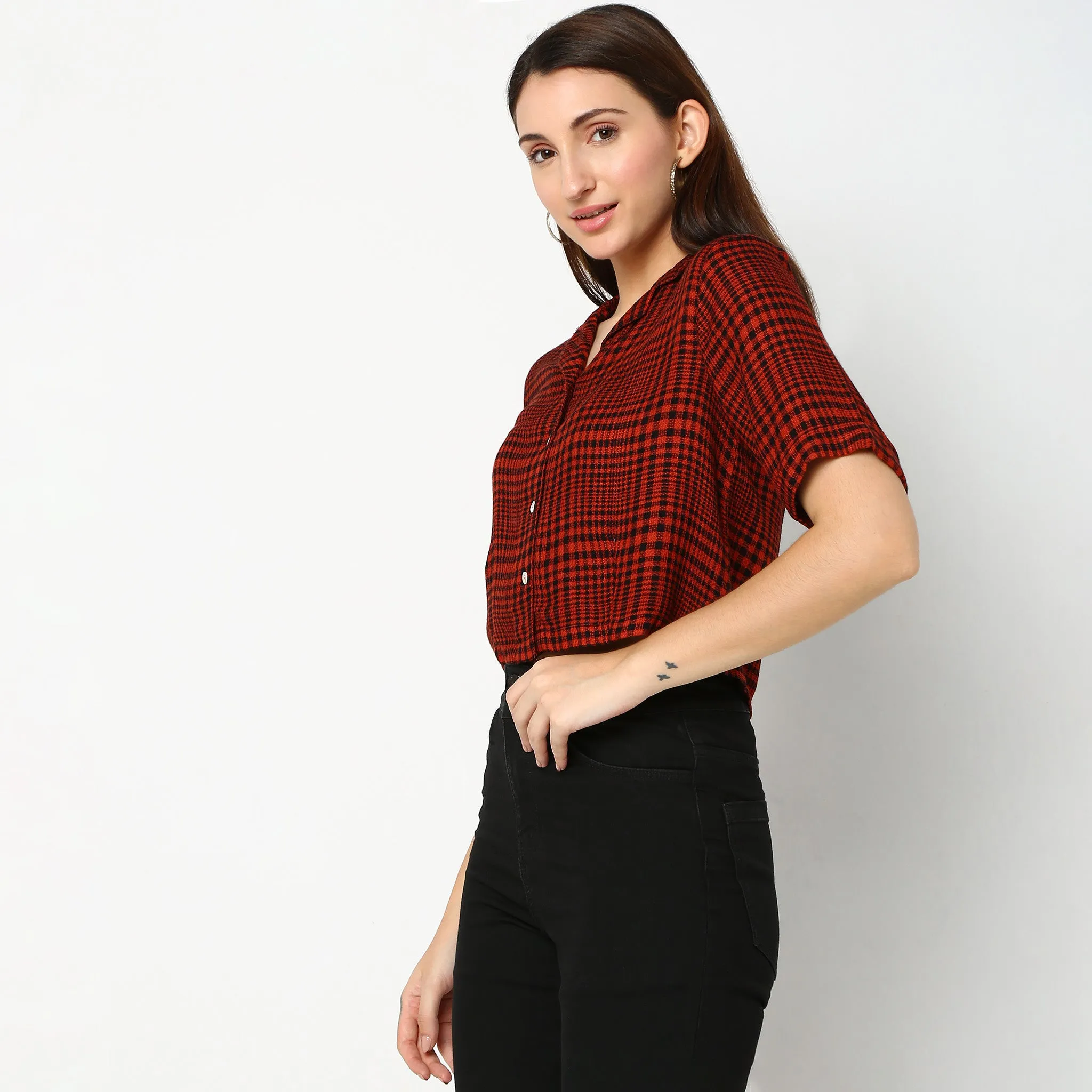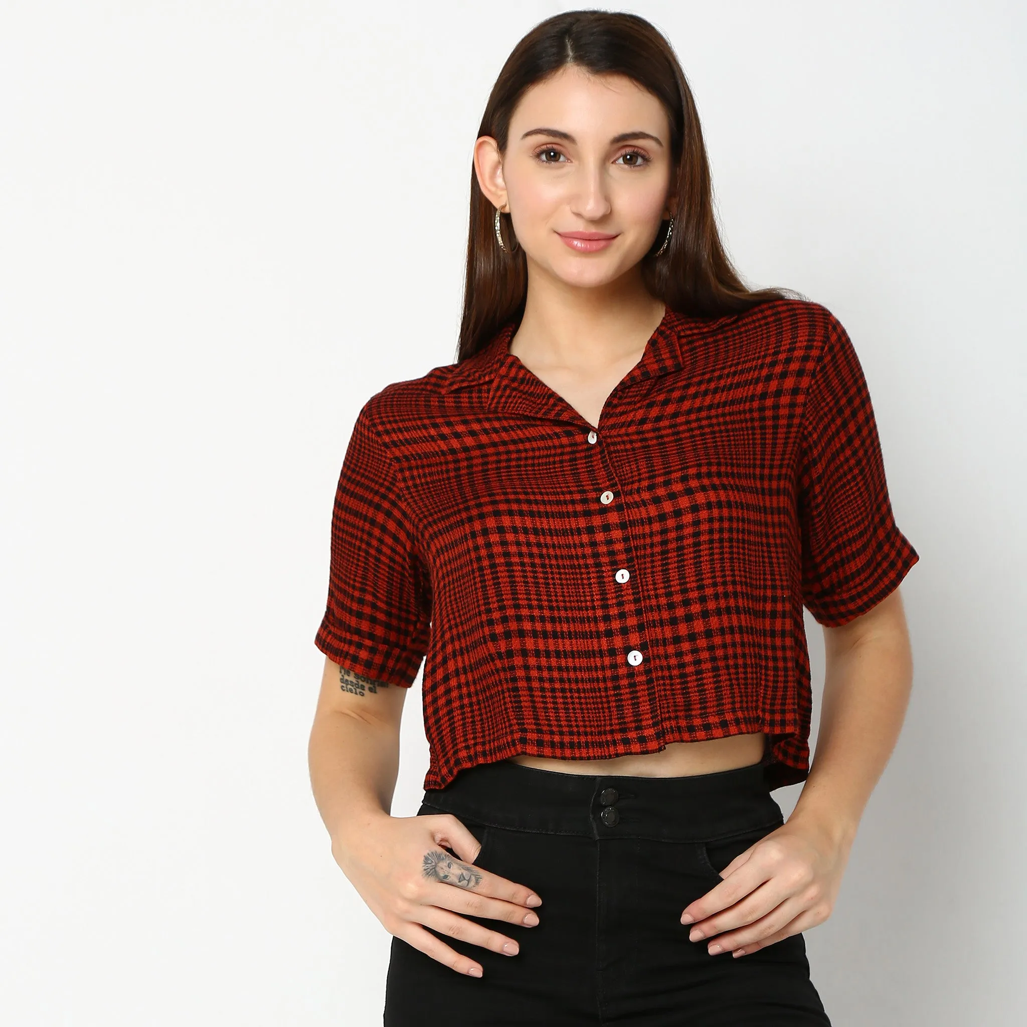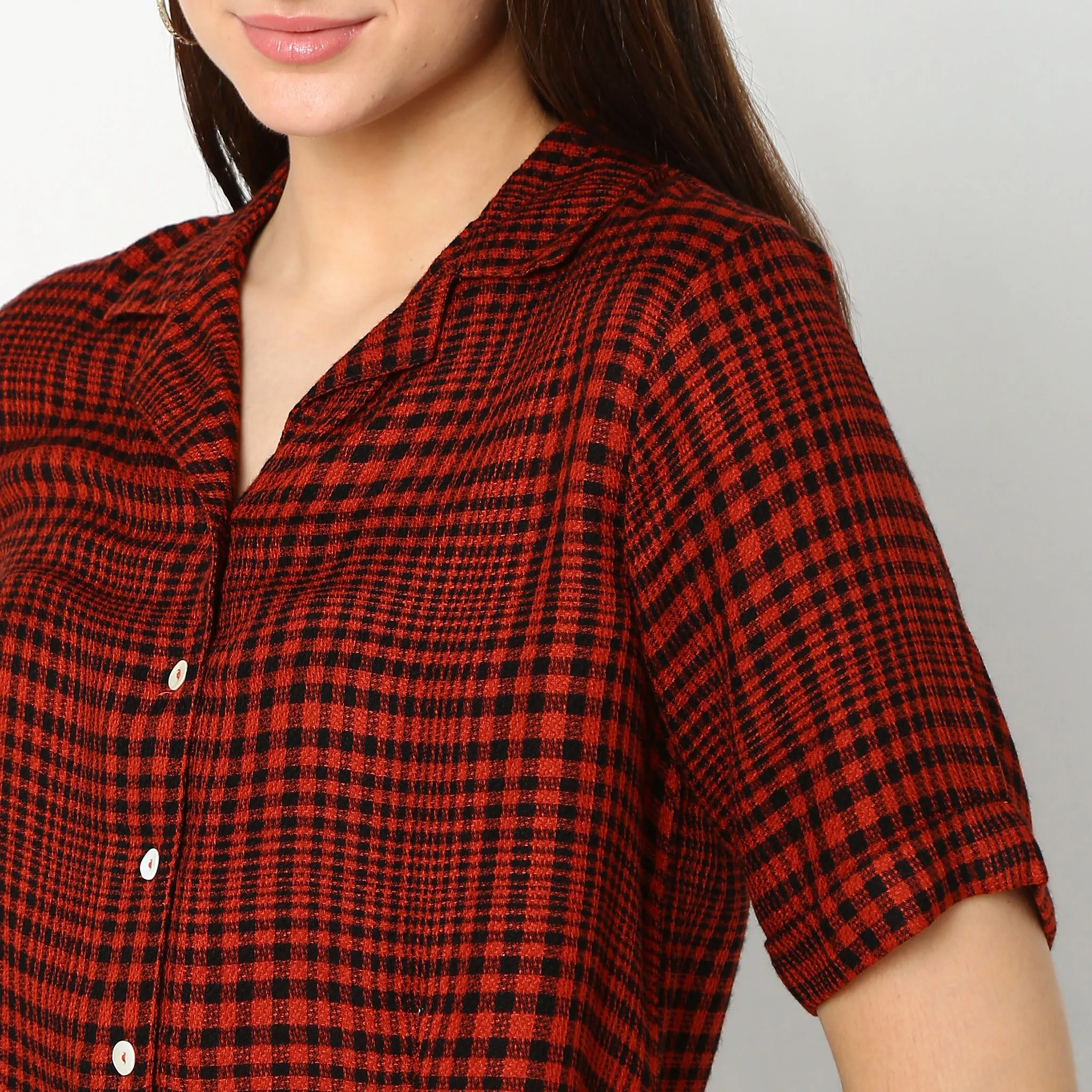 This checkered pattern shirts has a lapel collar and short sleeve. Made from viscose, it is soft and comfortable to wear.