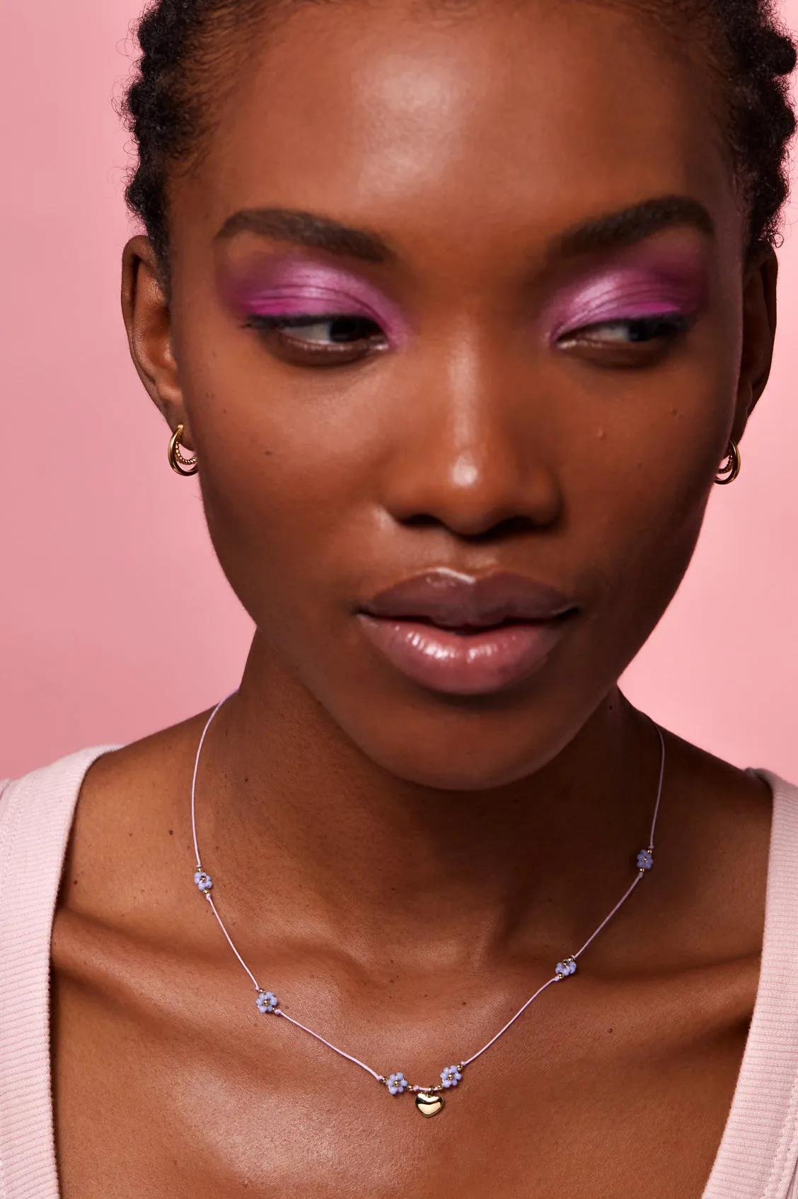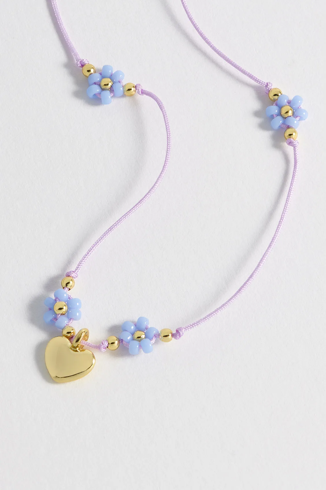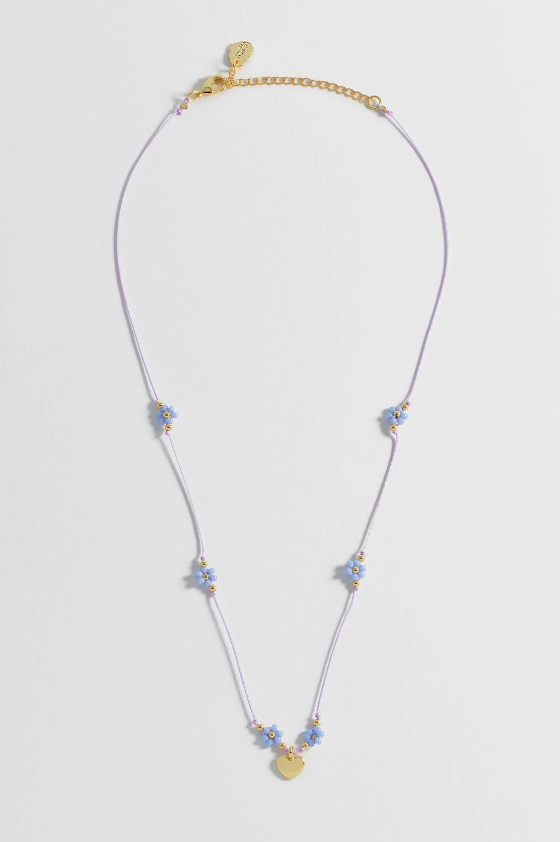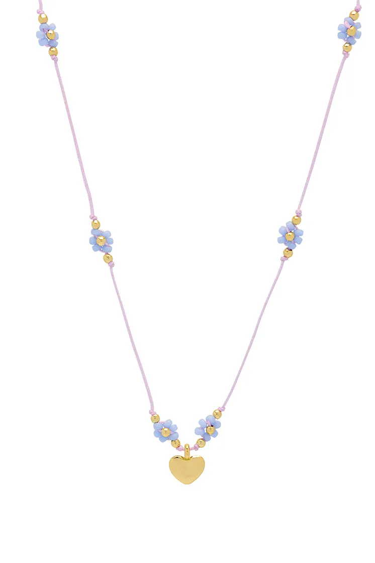 Keep blooming with our gold-plated Flower Heart Miyuki Necklace. Featuring a light pink cord necklace detailed with beaded light blue and gold-plated flowers, this necklace is sure to bring joy to those who wear it. Pair it with our matching Beaded Heart Flower Bracelet for the full look.