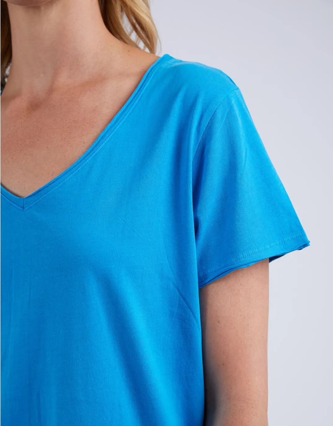 Add a burst of colour to your everyday wardrobe with the Fundamental Vee Tee in Ibiza Blue by . This vibrant tee is made from soft, breathable cotton, ensuring comfort throughout the day. Featuring a flattering V-neckline and a relaxed fit, it's the perfect go-to top for any casual occasion. The simple yet stylish design makes it easy to pair with a variety of outfits, adding a pop of blue to your look.