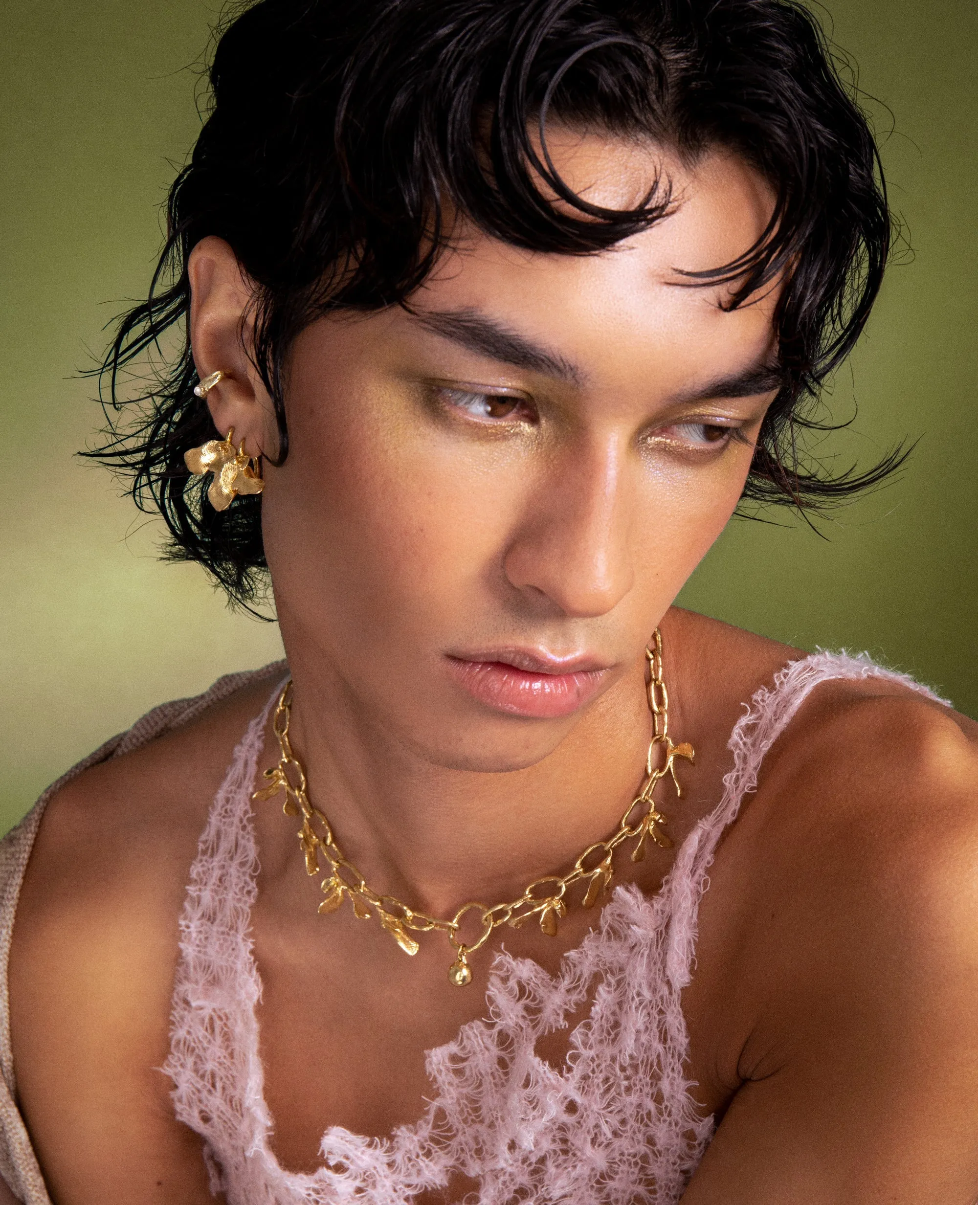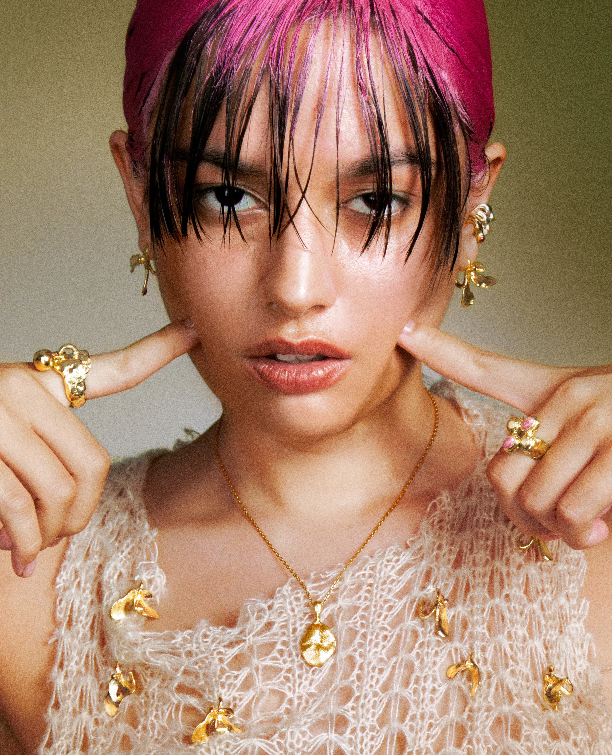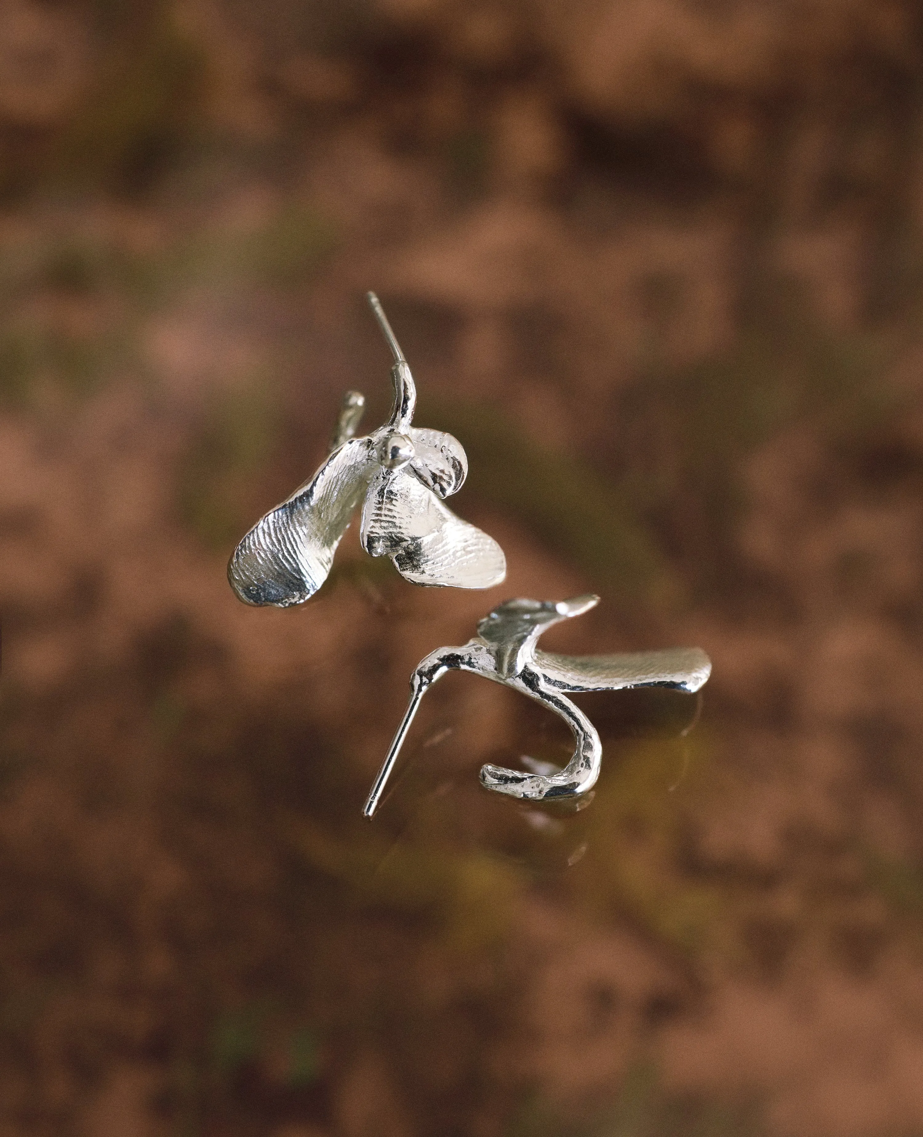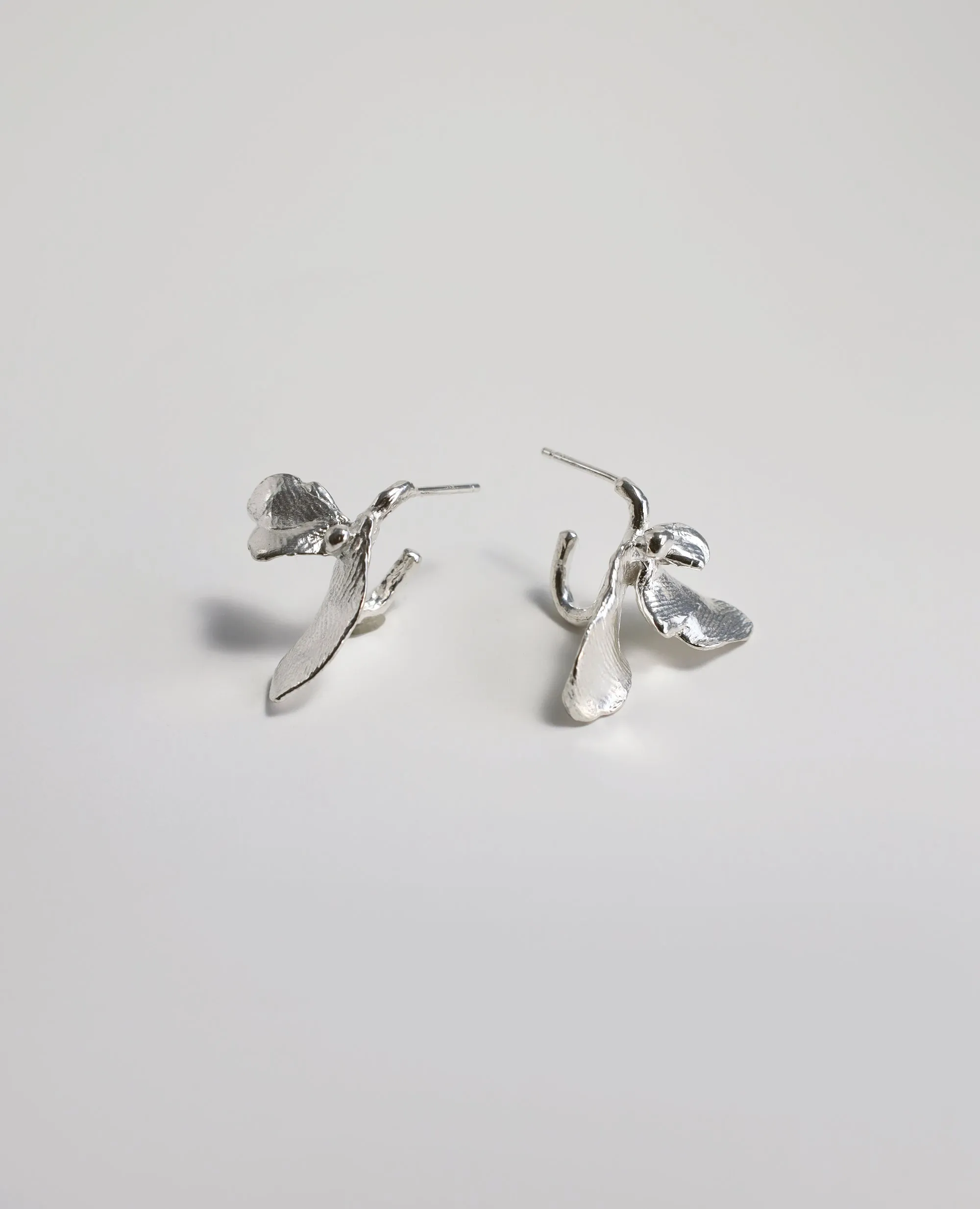 Sculptural mini hoops mimicking asymmetrical florals shapes.