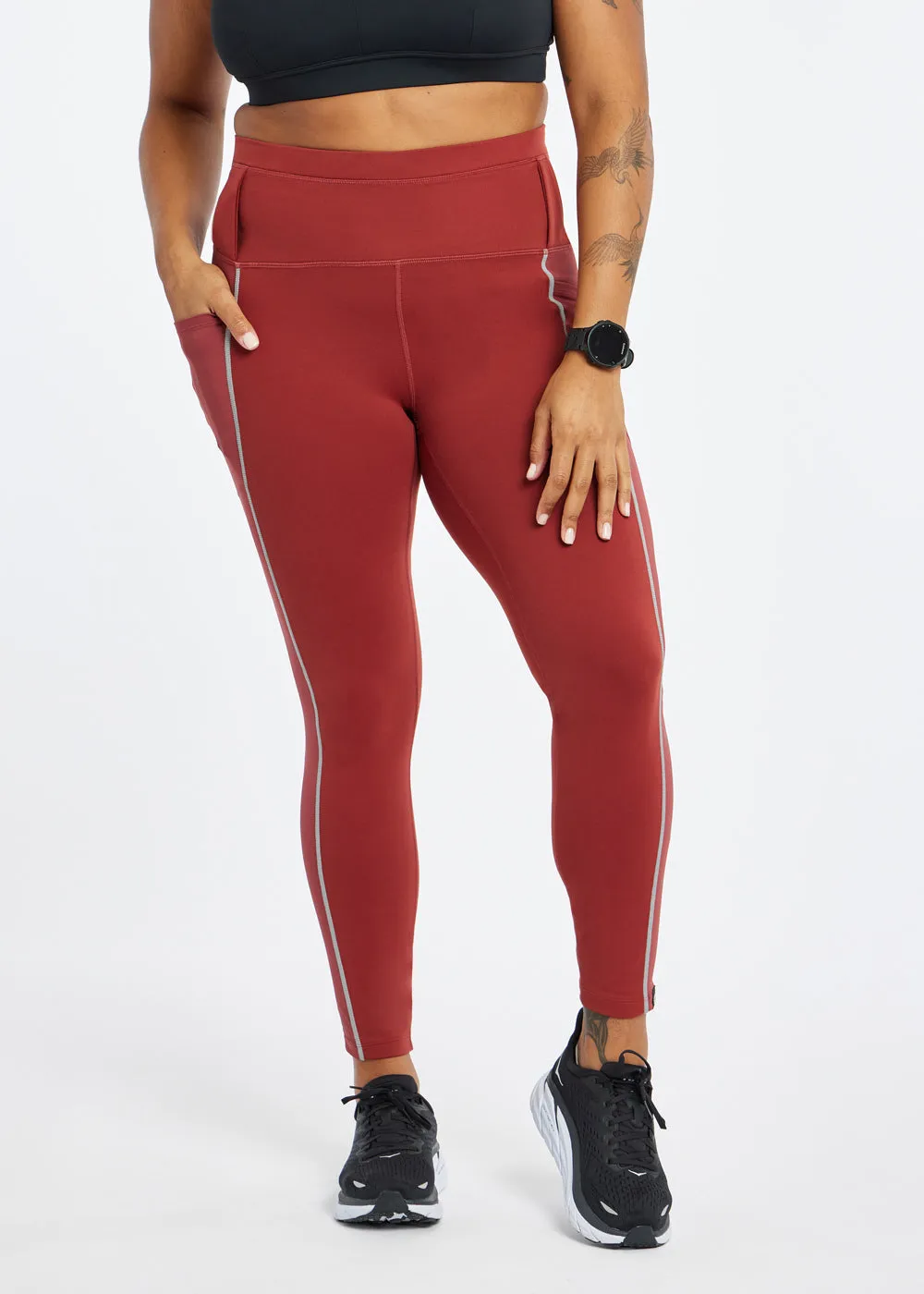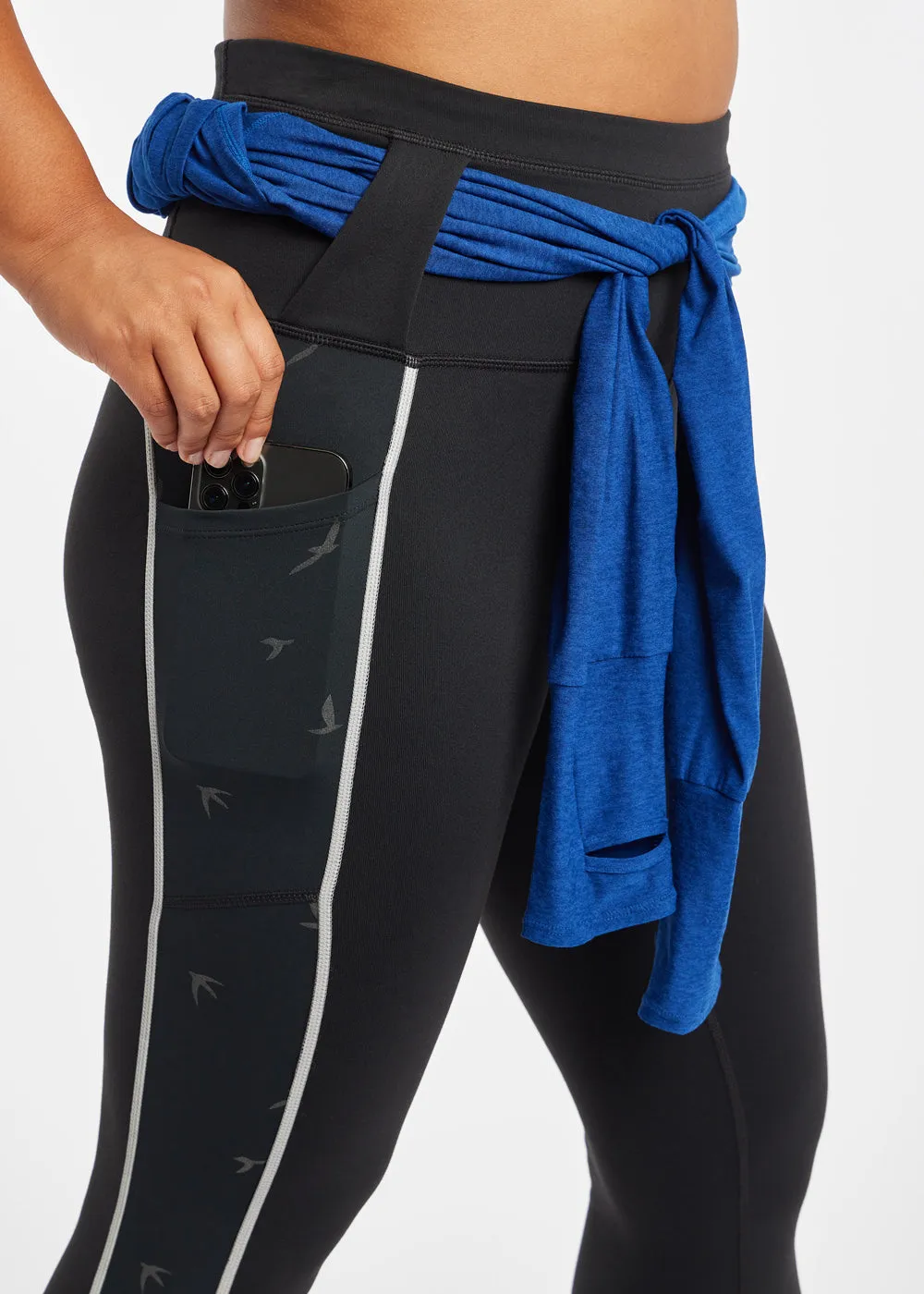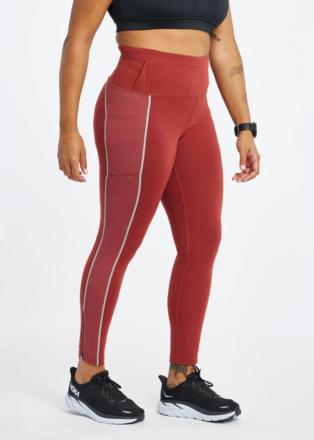 You glow, girl. Stay warm and turn heads in this ultra-high-rise addition to our safety-first Firecracker line. Our compressive Nyelle fabric will keep you warm, while the reflective seaming at the sides will ensure that you're seen by drivers and cyclists. Zipper openings at the leg make for an easy-on, easy-off experience and even the zippers on the outseam hem are reflective! Get a little too toasty on your run? We've thought ahead and added utility belt loops to the waistband, making it easy to loop your top layer through it and keep on running. Pack your phone, keys and a gel in the side pockets or back center pocket, and you're ready to hit the road at any hour of the day.