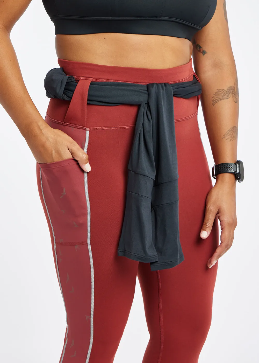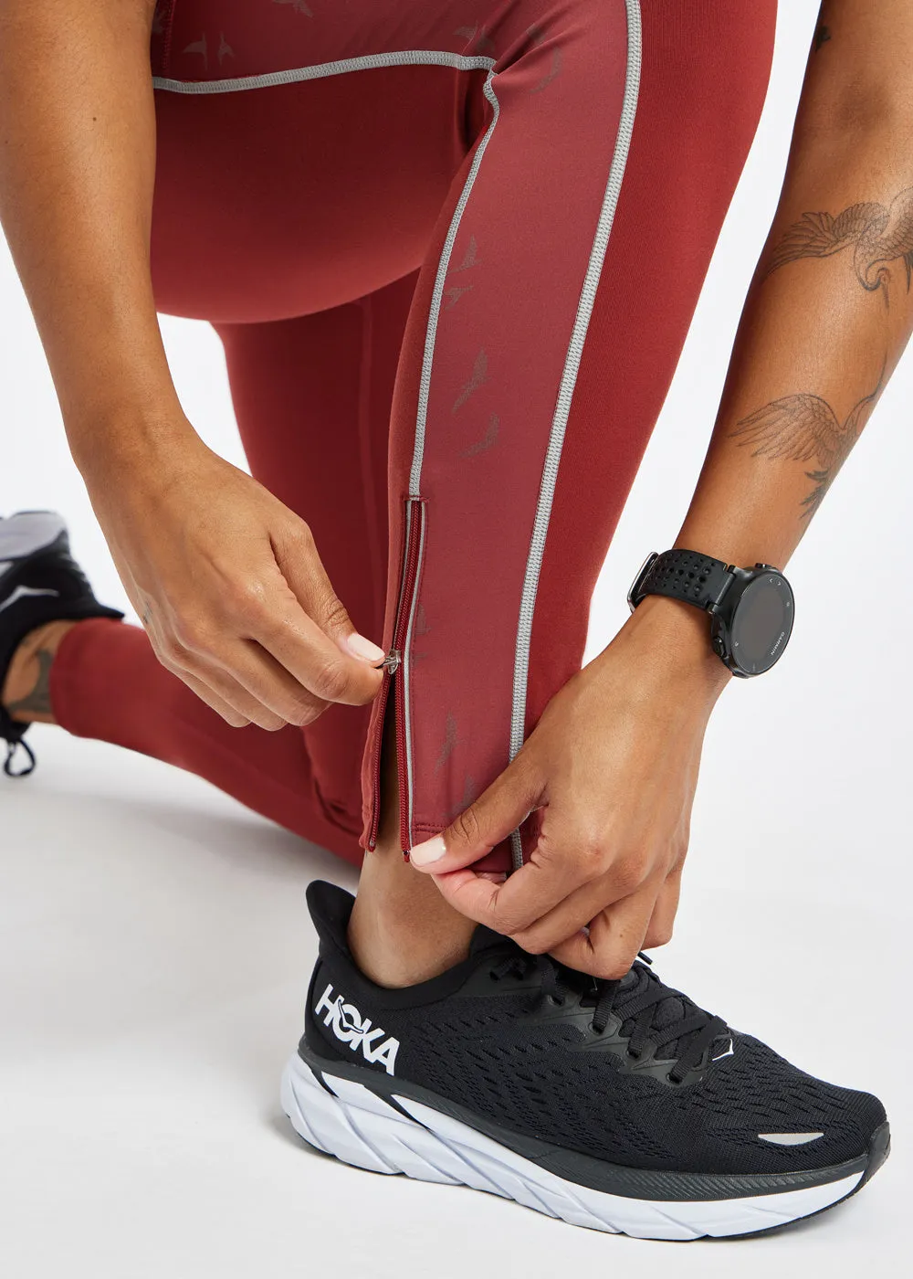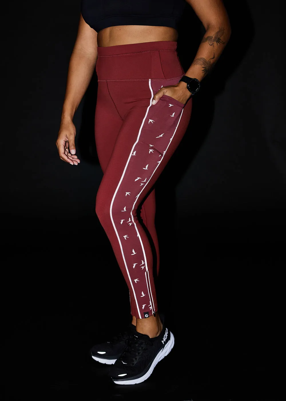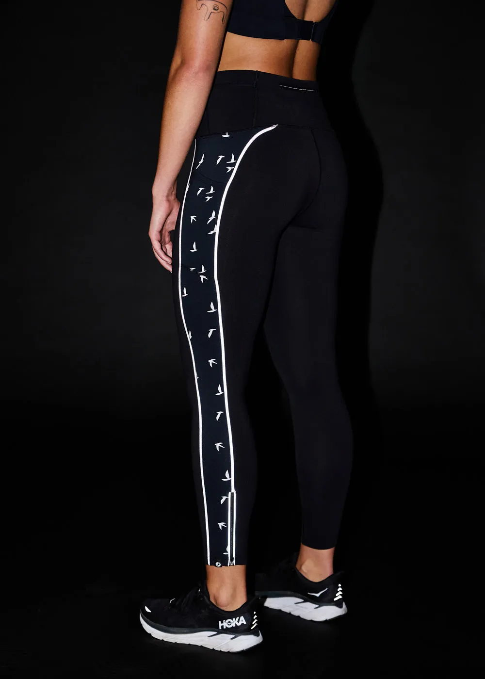You glow, girl. Stay warm and turn heads in this ultra-high-rise addition to our safety-first Firecracker line. Our compressive Nyelle fabric will keep you warm, while the reflective seaming at the sides will ensure that you're seen by drivers and cyclists. Zipper openings at the leg make for an easy-on, easy-off experience and even the zippers on the outseam hem are reflective! Get a little too toasty on your run? We've thought ahead and added utility belt loops to the waistband, making it easy to loop your top layer through it and keep on running. Pack your phone, keys and a gel in the side pockets or back center pocket, and you're ready to hit the road at any hour of the day.