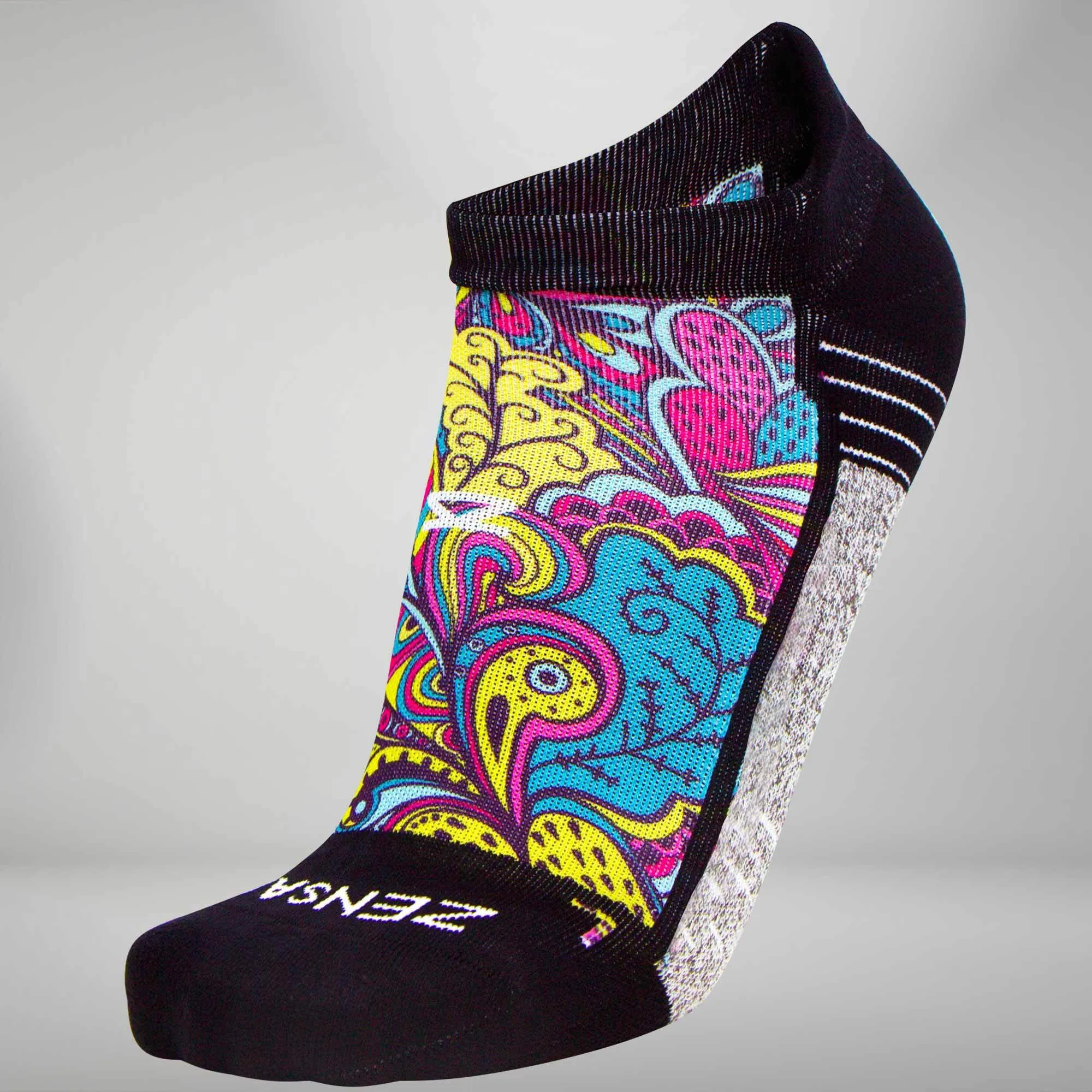 Our Shakeout No Show Socks with a groovy limited edition print! Ditch the boring running socks and bring some color to your runs. Quantities are very limited - once they sell out, they are gone forever!