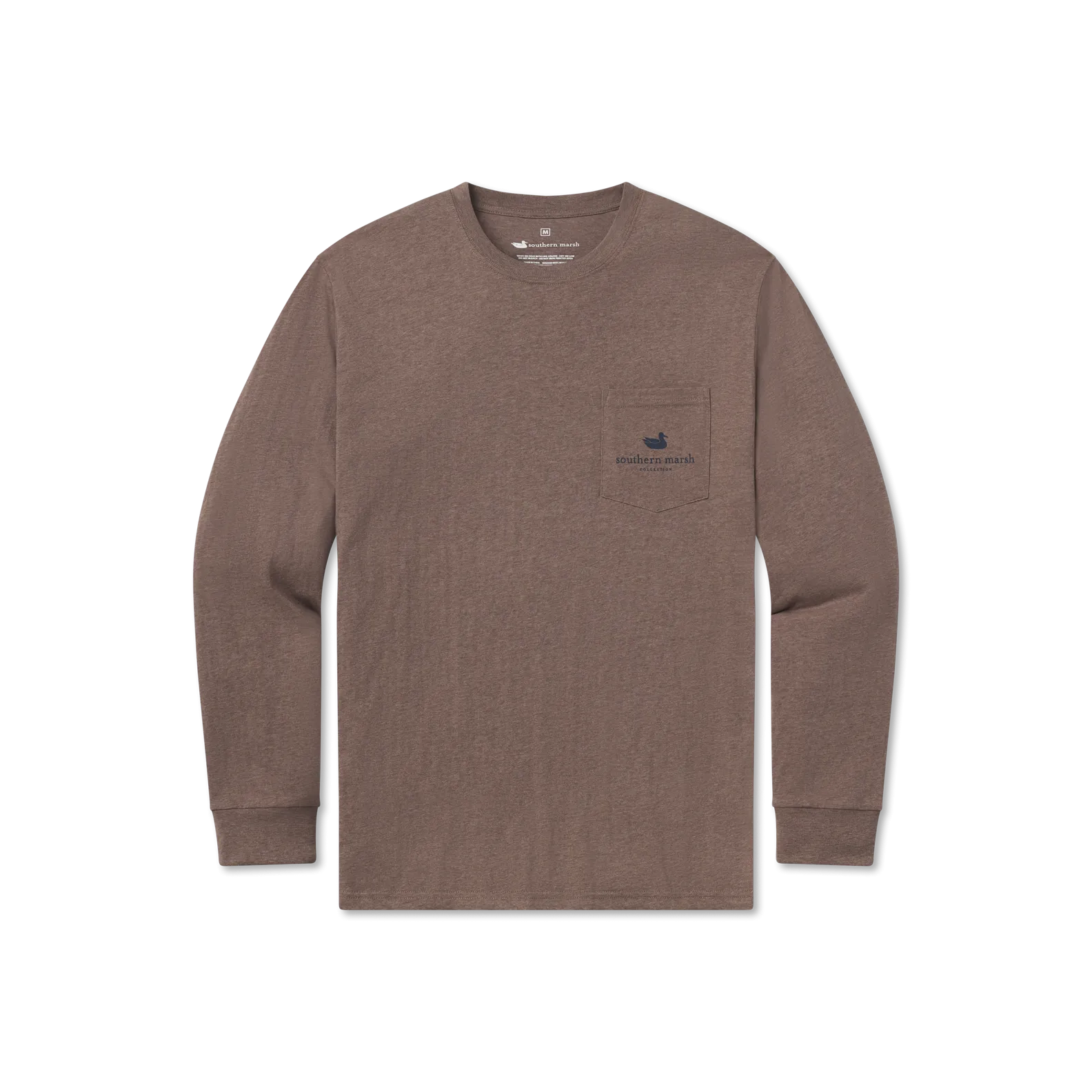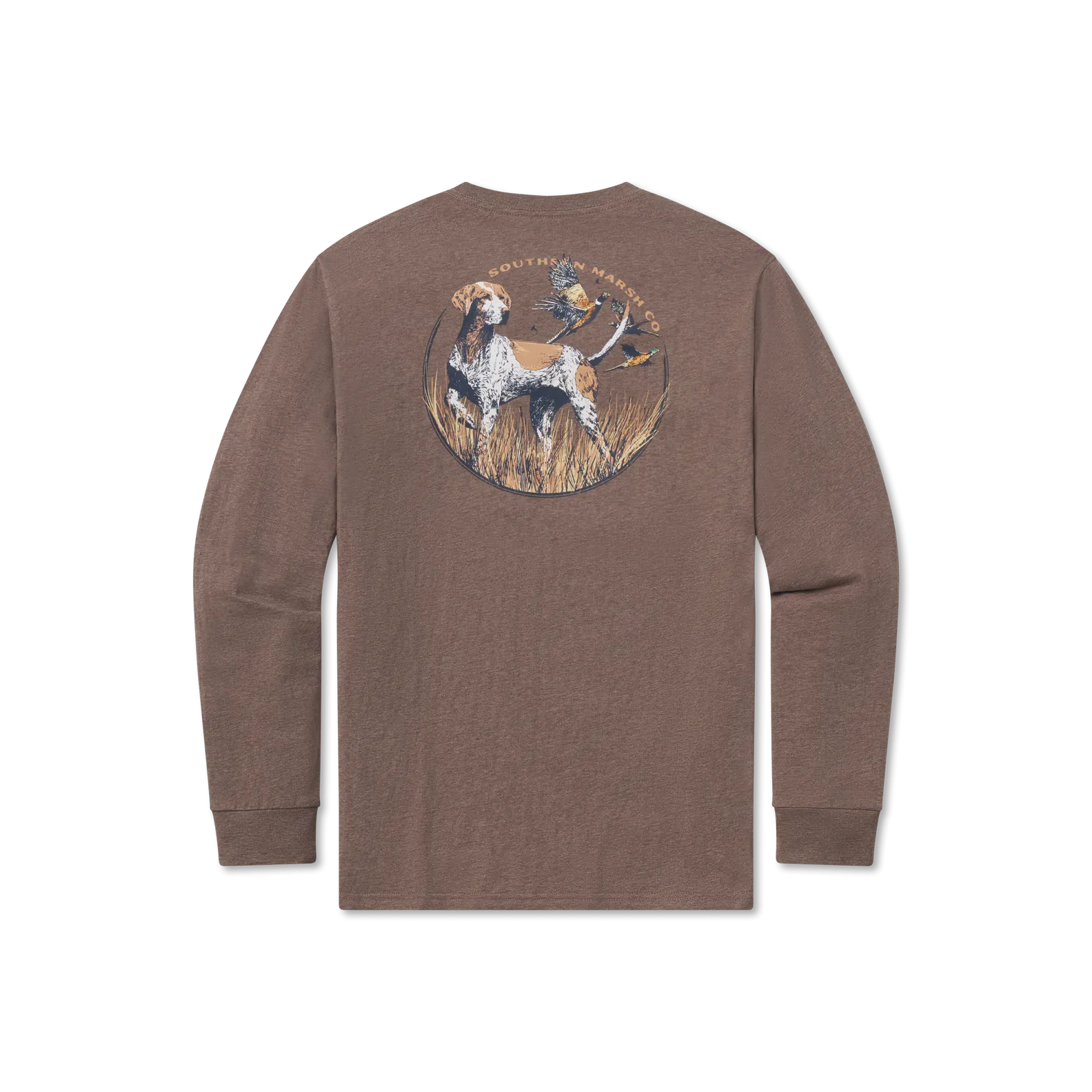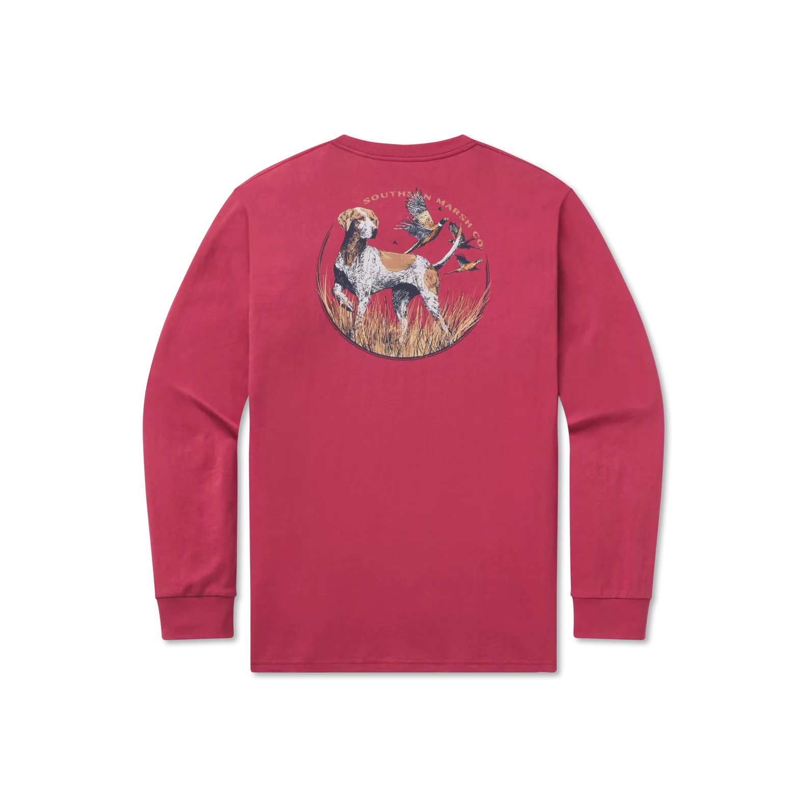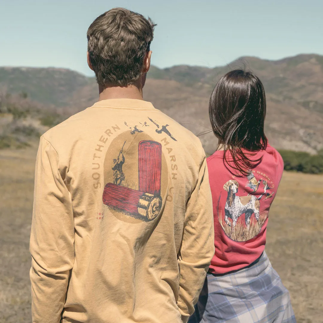 From the iconic marshes of the Mississippi Delta to the sprawling rice fields of Arkansas, the South offers a tapestry of diverse landscapes that beckon waterfowl enthusiasts. Inspired by the Pointer breed and their versatile hunting capabilities, our Gun Dog Collection – Pointer long sleeve tee features a printed tag and soft, breathable cotton fabric making it a perfect layering piece for those crisp late autumn mornings.