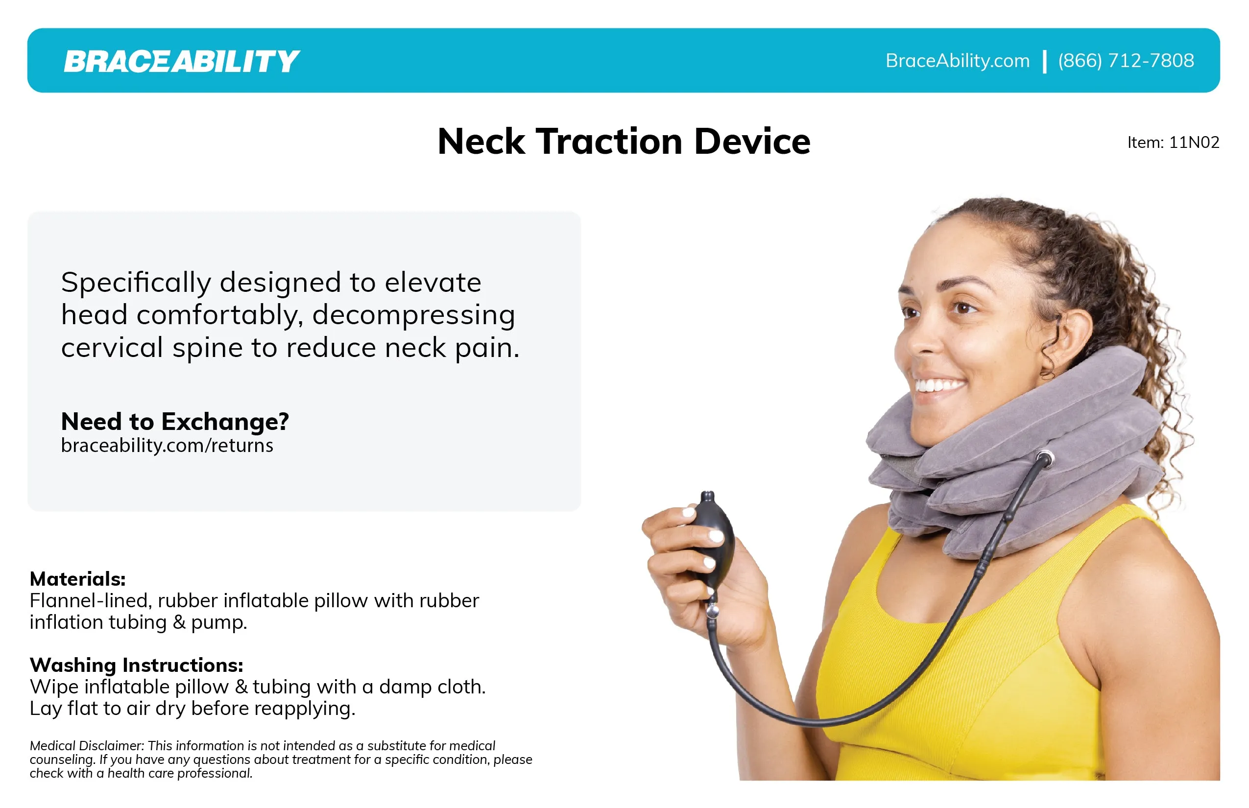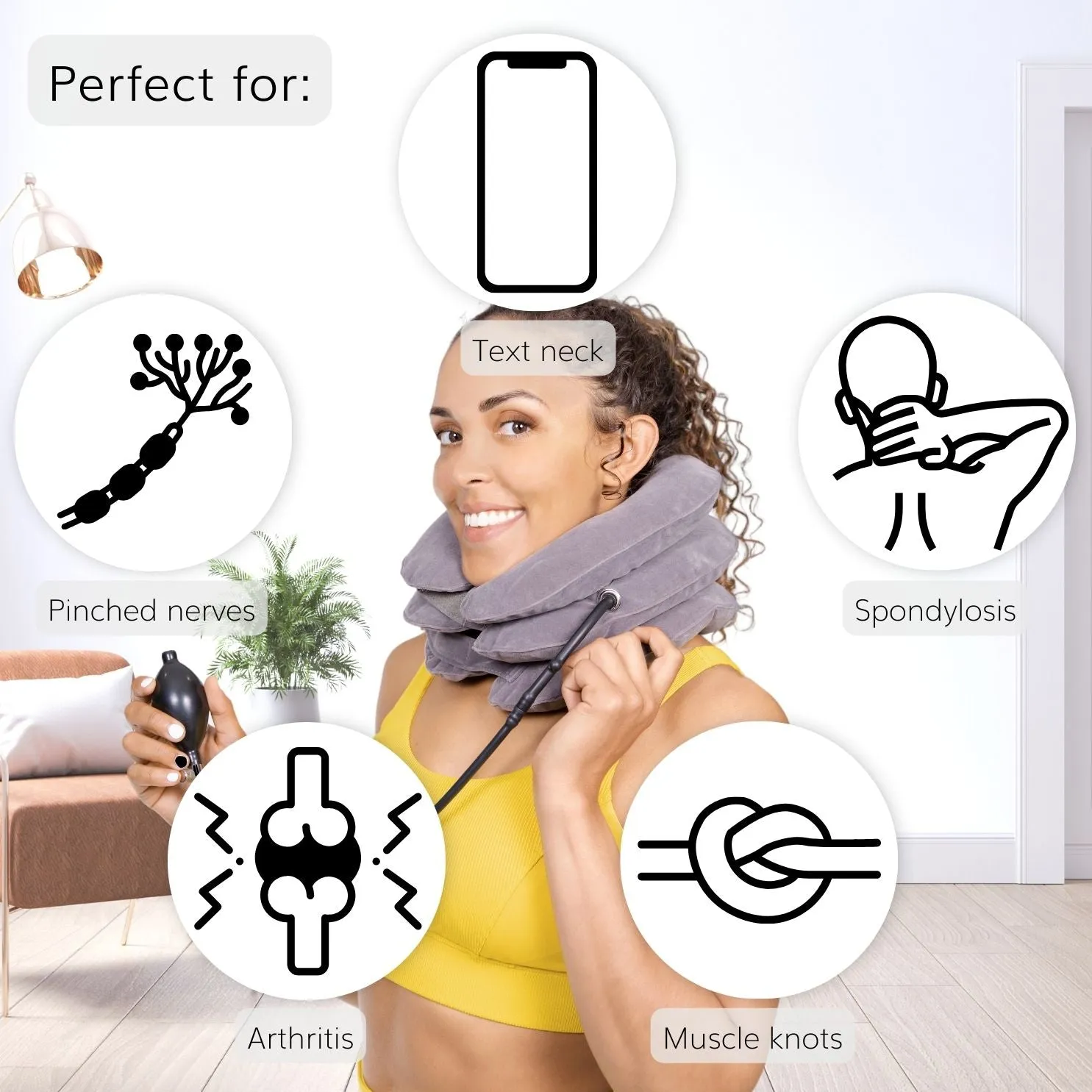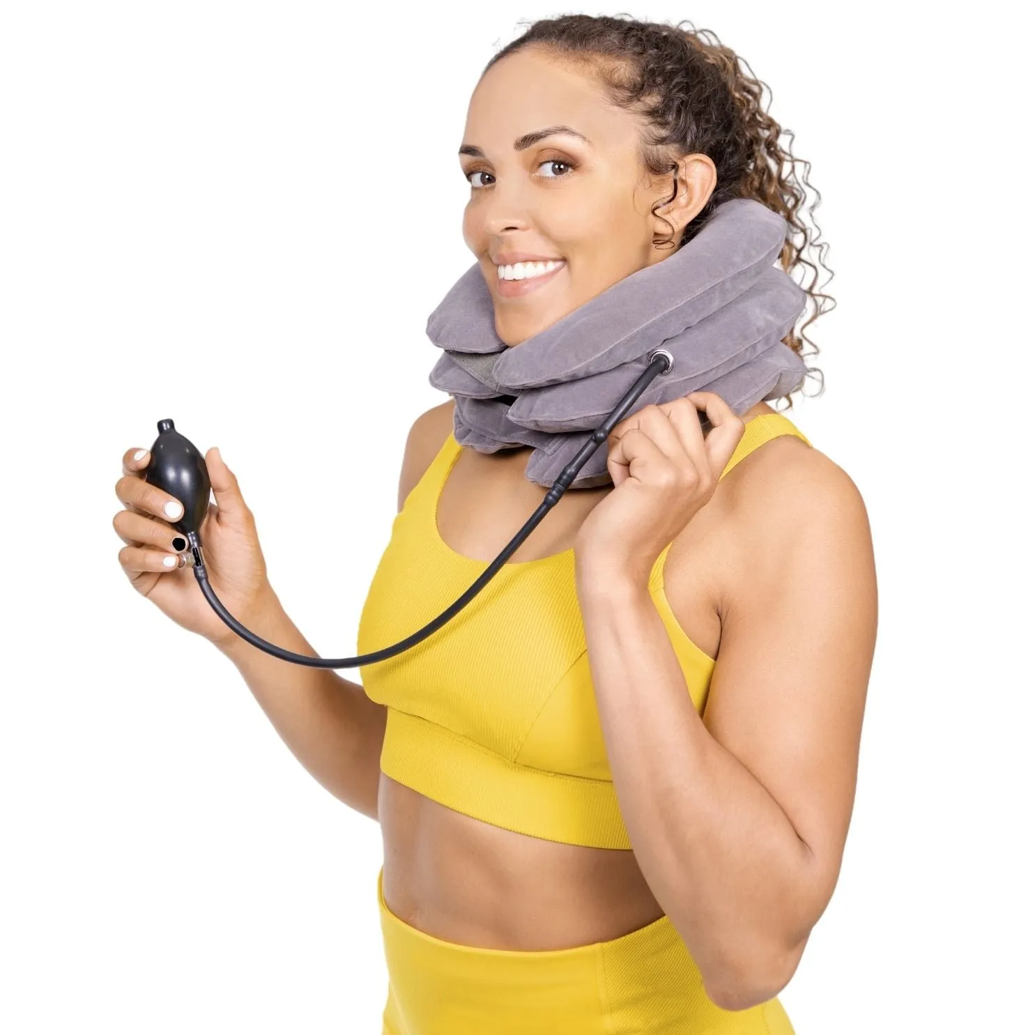 Traction is a pulling force to treat joint, bone, or muscle problems. Neck traction, or cervical traction, uses a gentle pulling force on the neck. Perform cervical traction practices through stretches, exercises, or traction devices like this inflatable neck pillow. Using traction as a form of neck-pain relief has many benefits, such as: