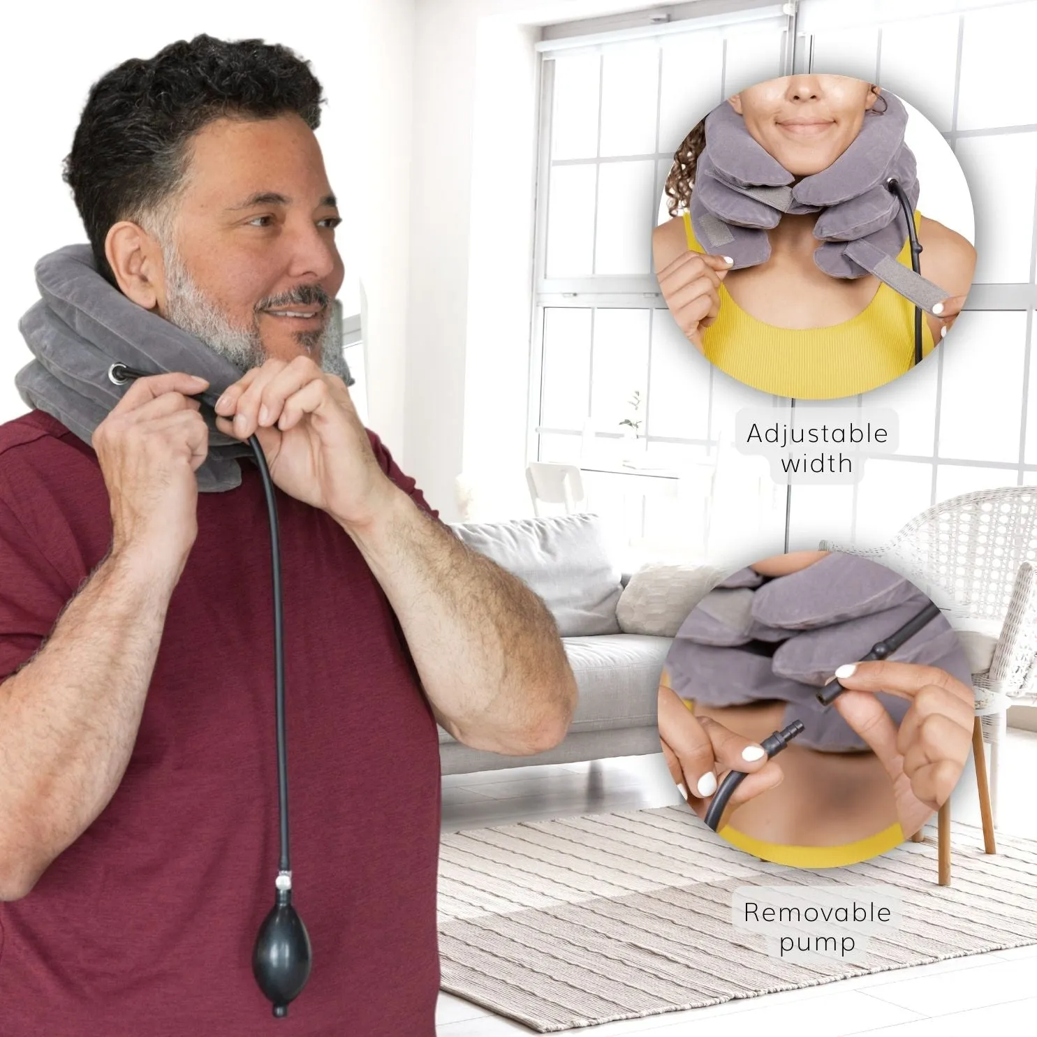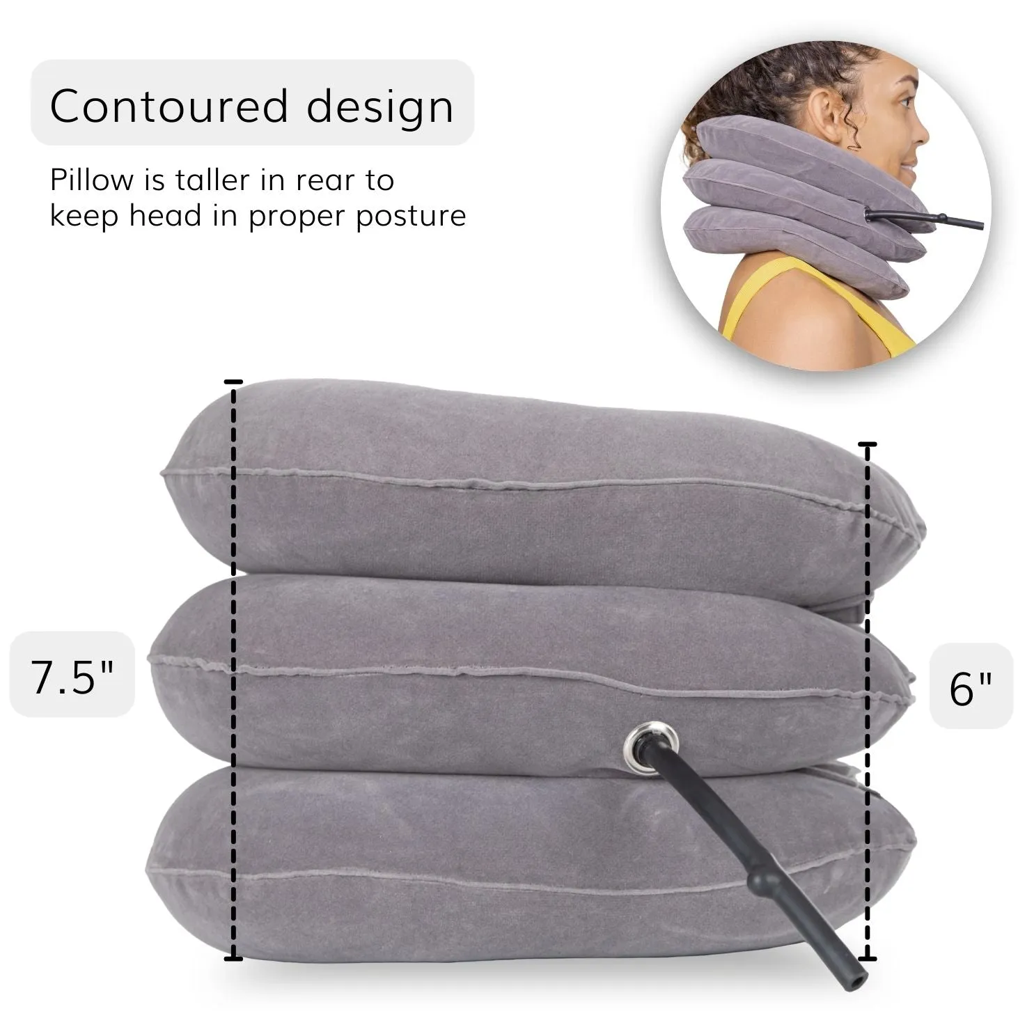 Gently stretch your neck for easy, comfy, and long-lasting neck and shoulder pain relief right in the comfort of your own home. Prevent the need for regular physical therapy or chiropractor appointments with this inflatable neck stretcher that helps provide the gentle, effective stretch and cervical traction that you control. Plus, if you’re looking for pain relief while traveling, the cervical neck pillow is easy to fold up and take with you on the go!