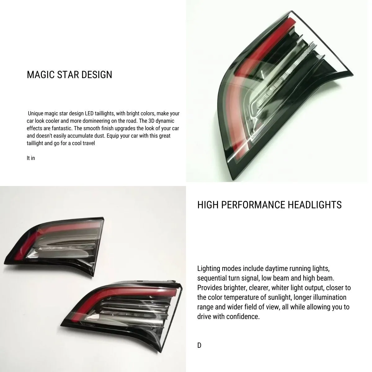 [MAGIC STAR DESIGN] Unique magic star design LED taillights, with bright colors, make your car look cooler and more domineering on the road. The 3D dynamic effects are fantastic. The smooth finish upgrades the look of your car and doesn't easily accumulate dust. Equip your car with this great taillight and go for a cool travel!