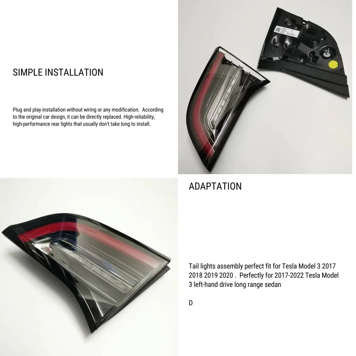 [ADAPTATION] Tail lights assembly perfect fit for Tesla Model 3/Y 2017 2018 2019 2020.2021.2022.2023 . Perfectly for 2017-2023 Tesla Model 3 left-hand drive long range sedan/ performance sedan/ standard plus sedan 4 doors, Model Y long rang sport utility/ performance sport utility 4 doors.