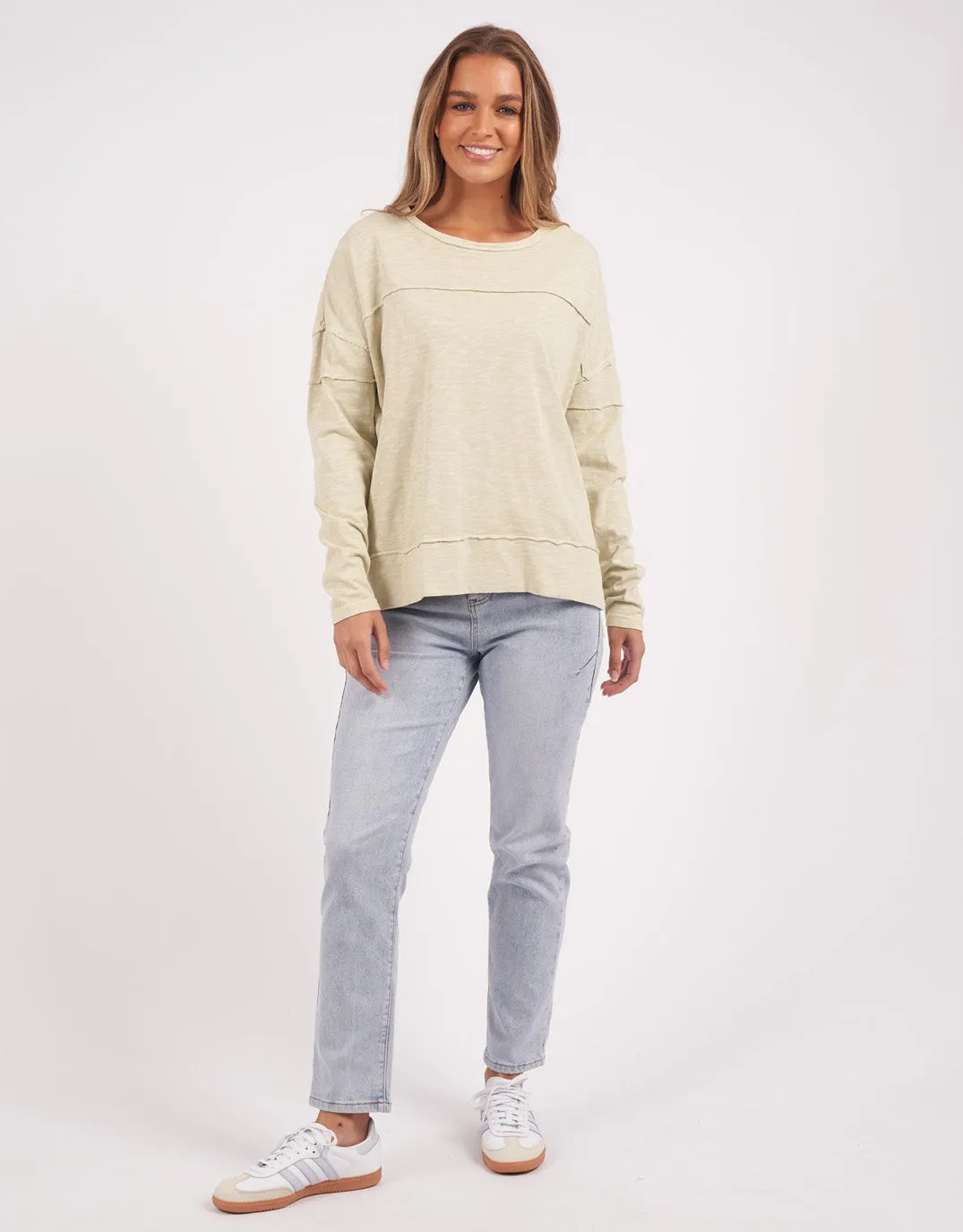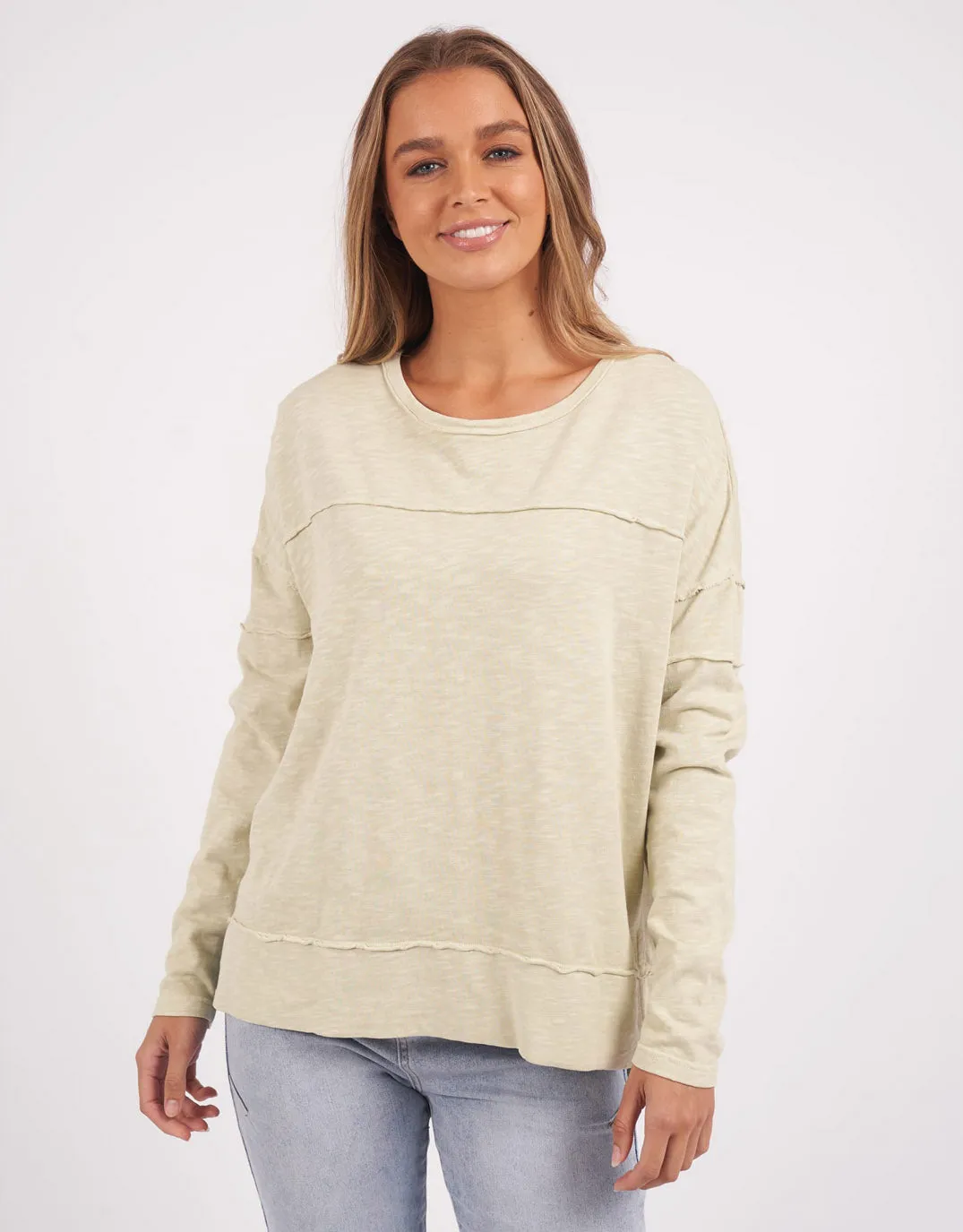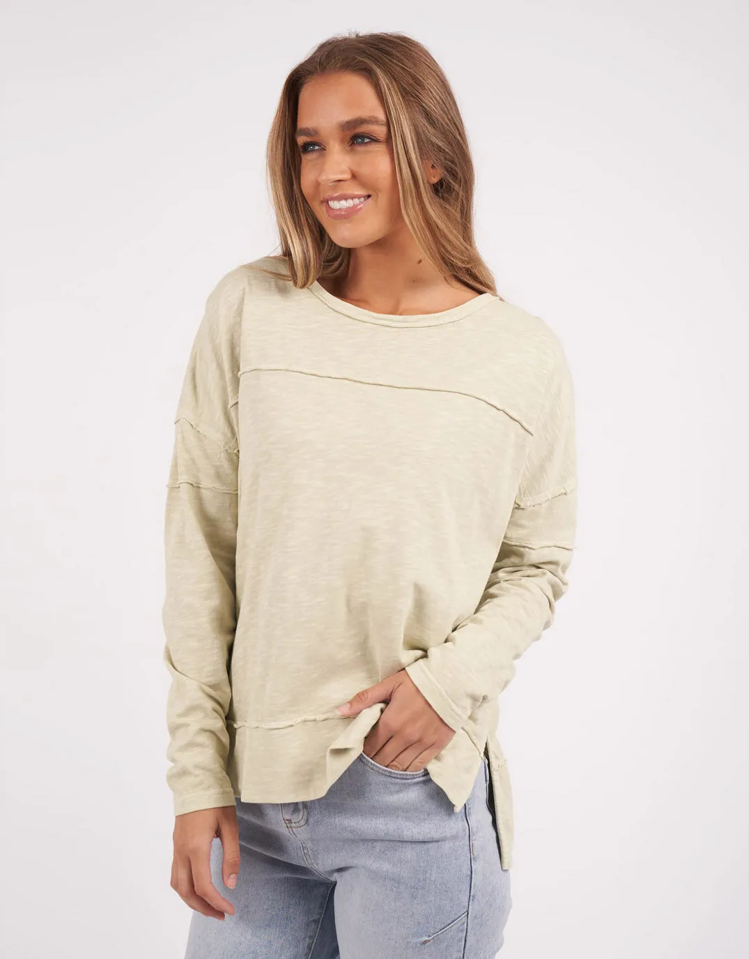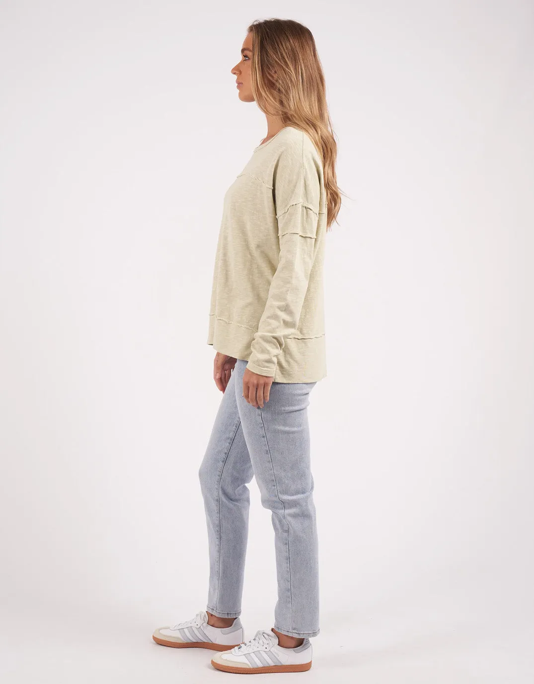 The Jayne Throw On Top in Fog Green by is the ideal lightweight long-sleeve for effortless, everyday wear. Made from soft cotton slub jersey, this top offers comfort and breathability, making it perfect for layering through the changing seasons. It features a round neckline and trendy exposed stitching that adds a casual, yet stylish touch. The side split hi-low hem and raw edge details enhance its laid-back appeal, ensuring that it will quickly become a staple in your wardrobe. The subtle fog green shade is easy to mix and match, making it a versatile piece for various outfits.