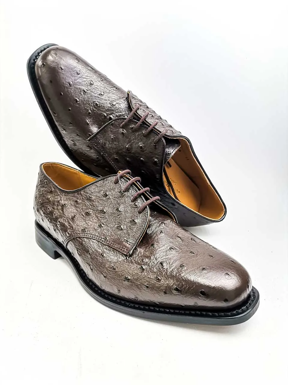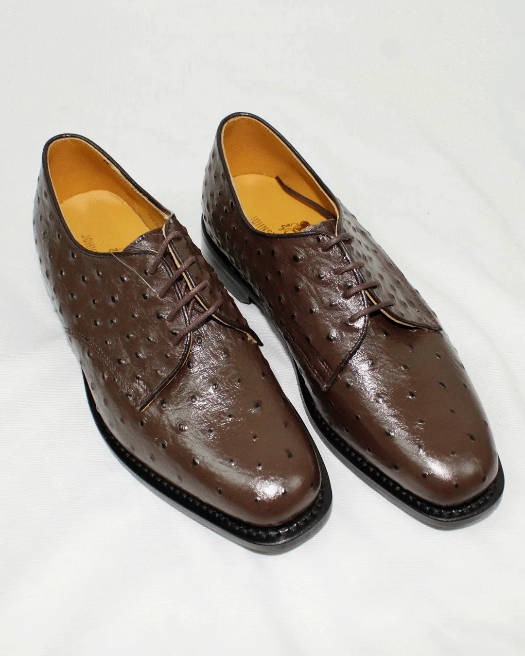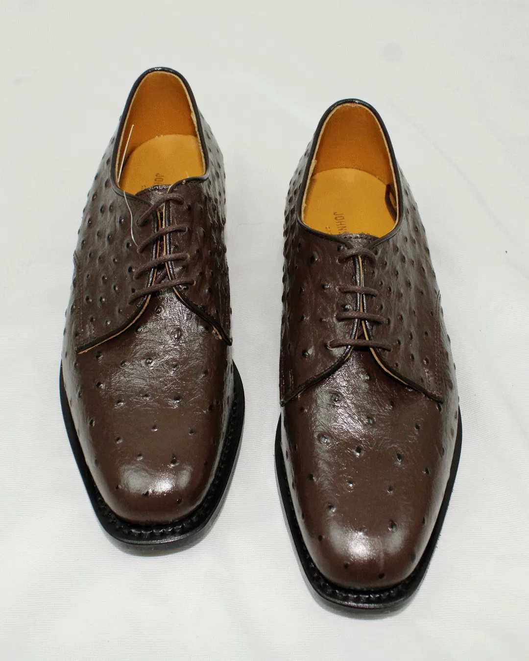The classic dress shoe silhouette is enhanced with meticulous stitching and a refined finish, ensuring both durability and elegance. With a leather lining and cushioned insole, Johnston & Murphy ensures comfort and support throughout the day. Perfect for the discerning gentleman who values craftsmanship and refined taste, the OSTRICH LEATHER CHOC dress shoe is a statement piece that elevates any wardrobe with understated luxury.