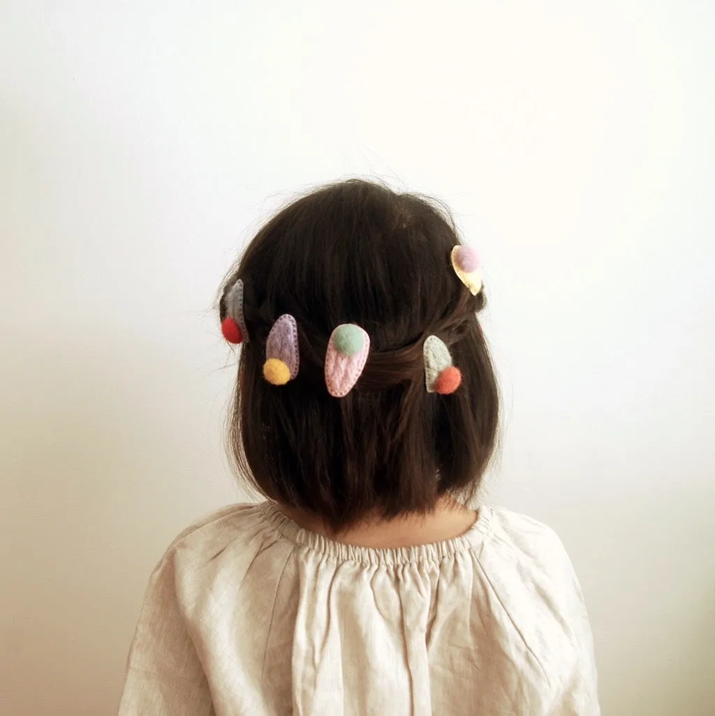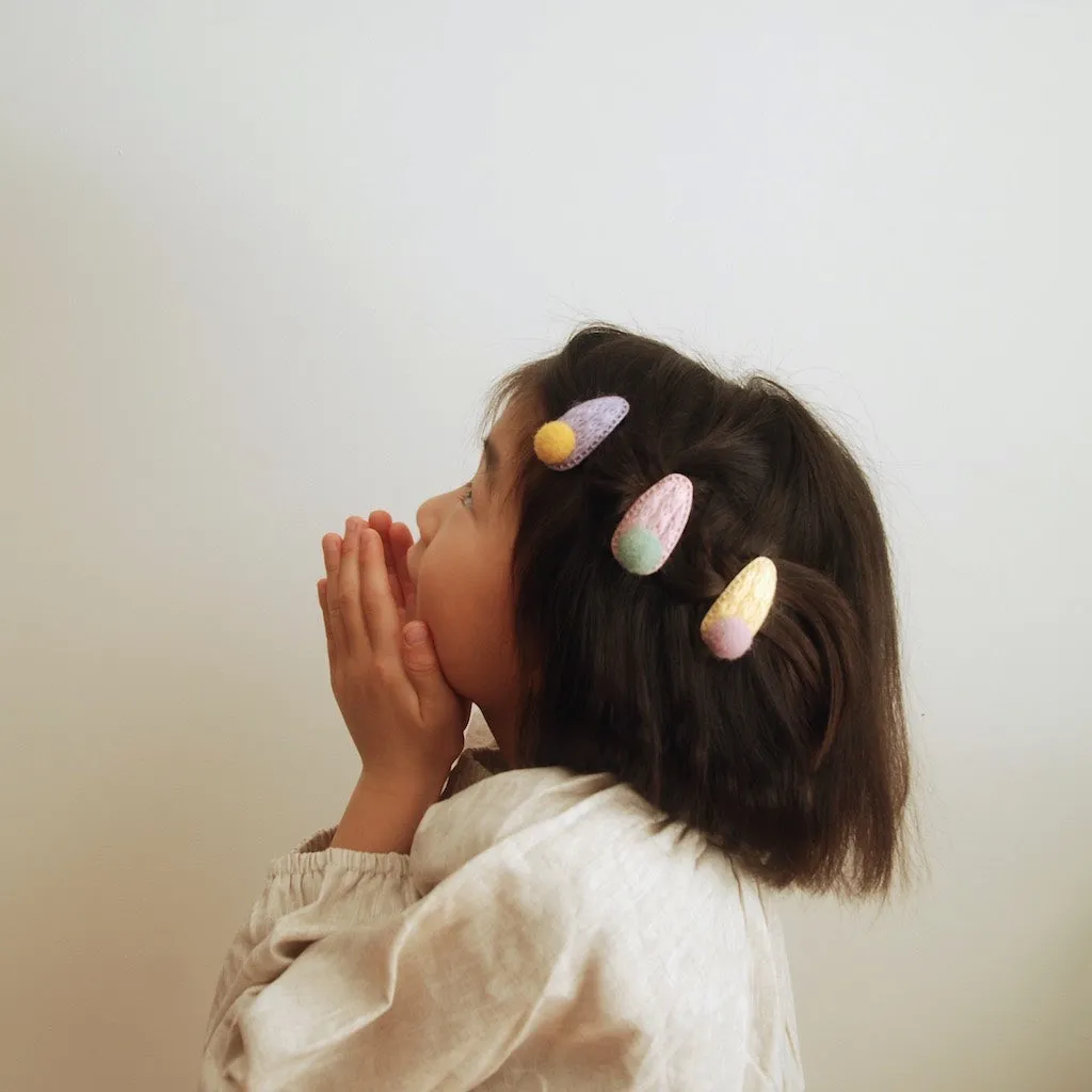 Our soft PomPom children's knit hair clips feature a lovely soft knitted cushion design with a cute little pom-pom on the end. The perfect accessory, they are just so handy for holding up those gorgeous bangs. Alternatively, wear them on the side to for that playful look, perfect for their first birthday party or every day at school.