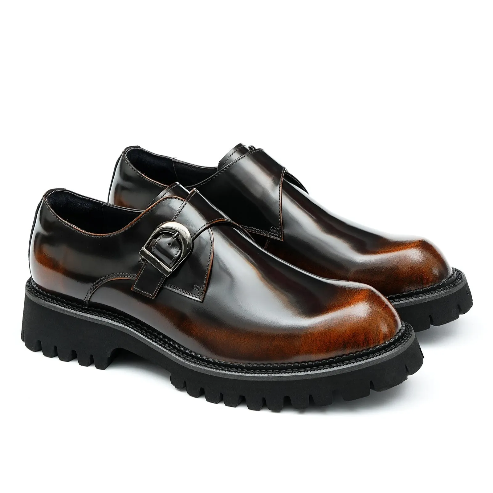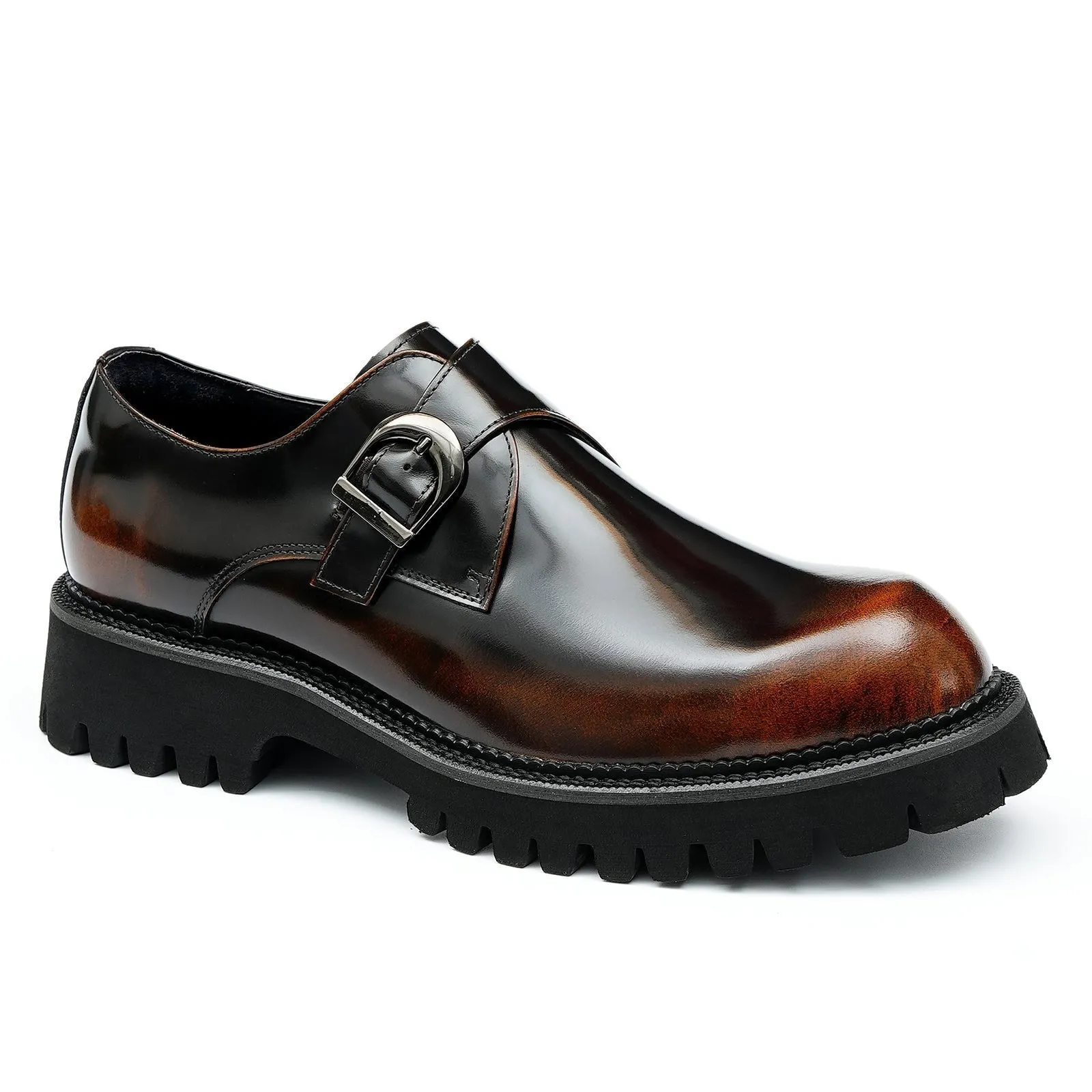 Step up your style with these premium leather monk shoes for men. Designed for the modern gentleman, these shoes feature a robust rubber outsole and a stylish monk strap buckle. The rich brown finish adds a touch of luxury, while the durable leather upper ensures longevity. With a heel height of 4.8 cm and a shaft height of 6.7 cm, these monk shoes are built for comfort and durability. Perfect for both formal and casual occasions, they make an essential addition to any wardrobe.