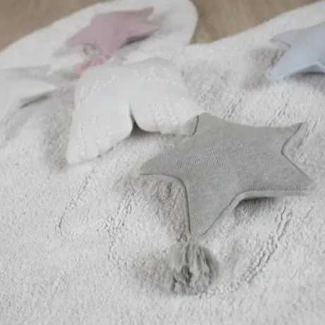 This soft knitted cushion in Pale Pink is shaped as a star with a cute tassel stitched at one tip of the star. Pair with any of our rugs from the Lorena Washable rugs . Perfect for the nursery, kids room or playroom. You can wash it directly in your washing machine, without taking out the filler!