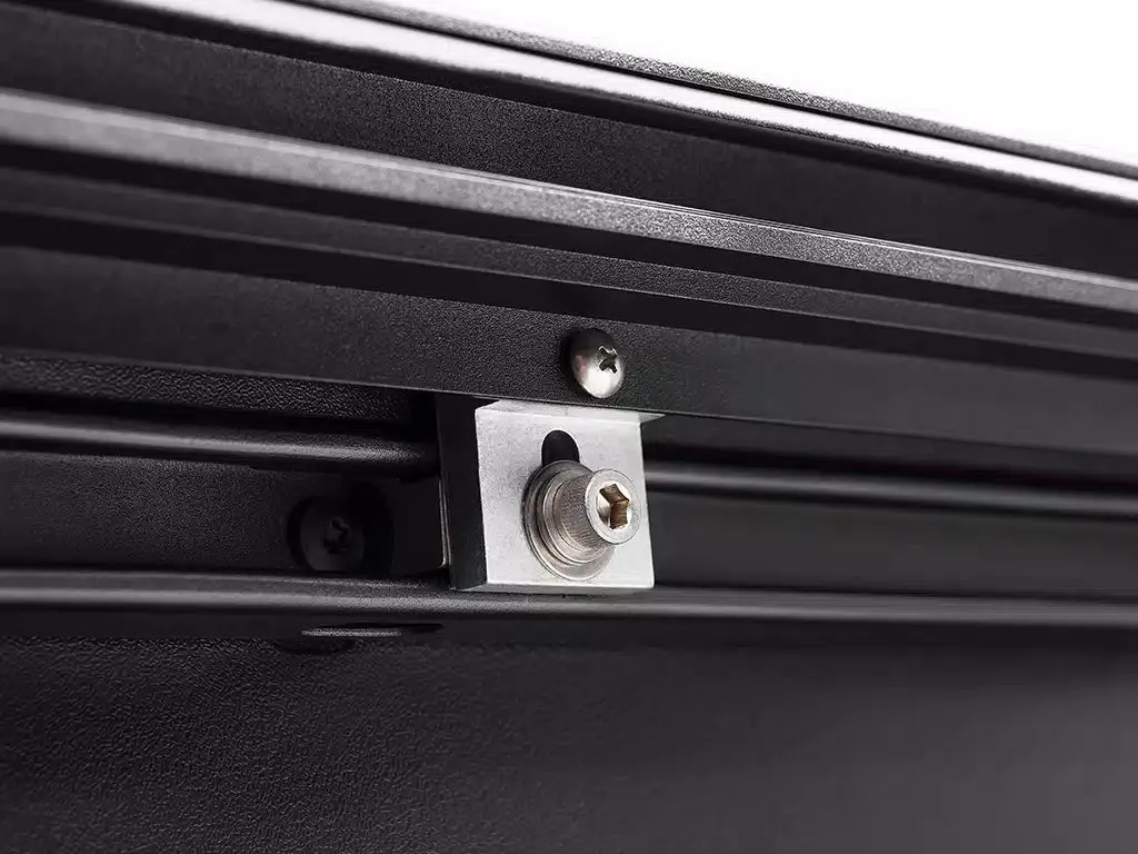 The M-Series retractable truck bed cover provides you the security of a hard cover, smooth appearance of a soft cover, and convenience of a retractable cover. Its durable vinyl-over-aluminum hybrid cover design is dedicated to four season protection and optimal bed security. It tackles durability while remaining exceptionally easy to operate with its unique frictionless construction and insulated grip lever. Simply use its key to unlock the cover and begin to open towards the cab as it retracts into its compact canister. The M-Series can open, lock and close without even opening the truck's tailgate and locks in multiple open positions. Checking the box for unmatched convenience and quick access to your bed and gear. Roll-N-Lock's M-Series retractable truck bed cover has a quick and easy install, and backed by a 3 year warranty.