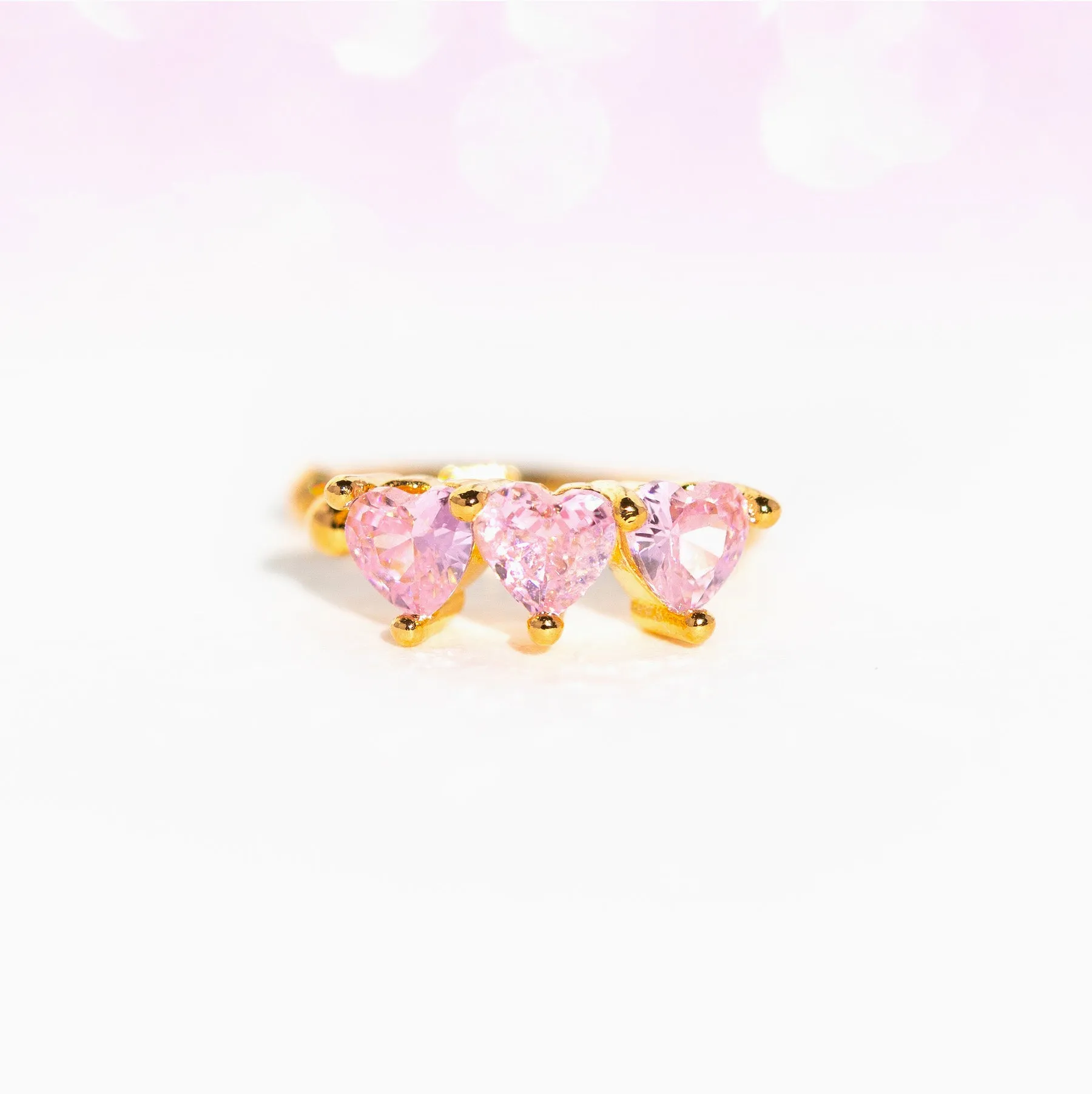 Get ready to triple the love with our Valentine's-themed ear cuff featuring not one, not two, but three charming pink heart gems that'll have your heart all a-flutter! Our Mi Amor Ear Cuff screams romance and flirtatious vibes. Elevate your Valentine's Day glam and let this sparkling trio of hearts be your statement piece for the season of love!