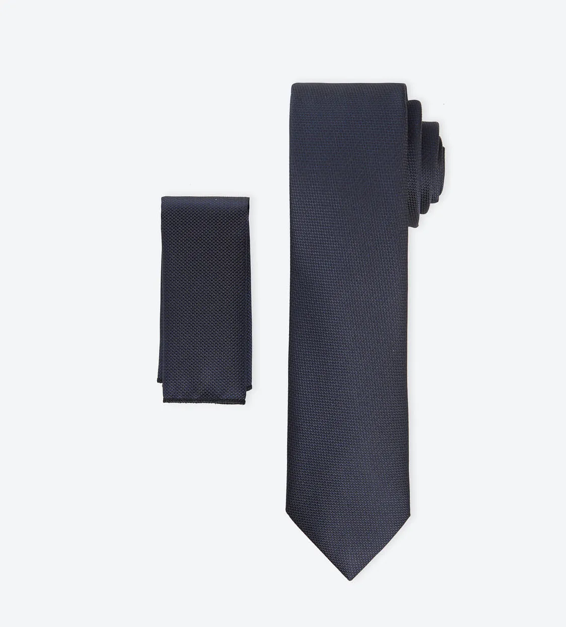 This handsome tie is crafted from a navy-black micro-silk fabric with a timeless tone-in-tone weave pattern.