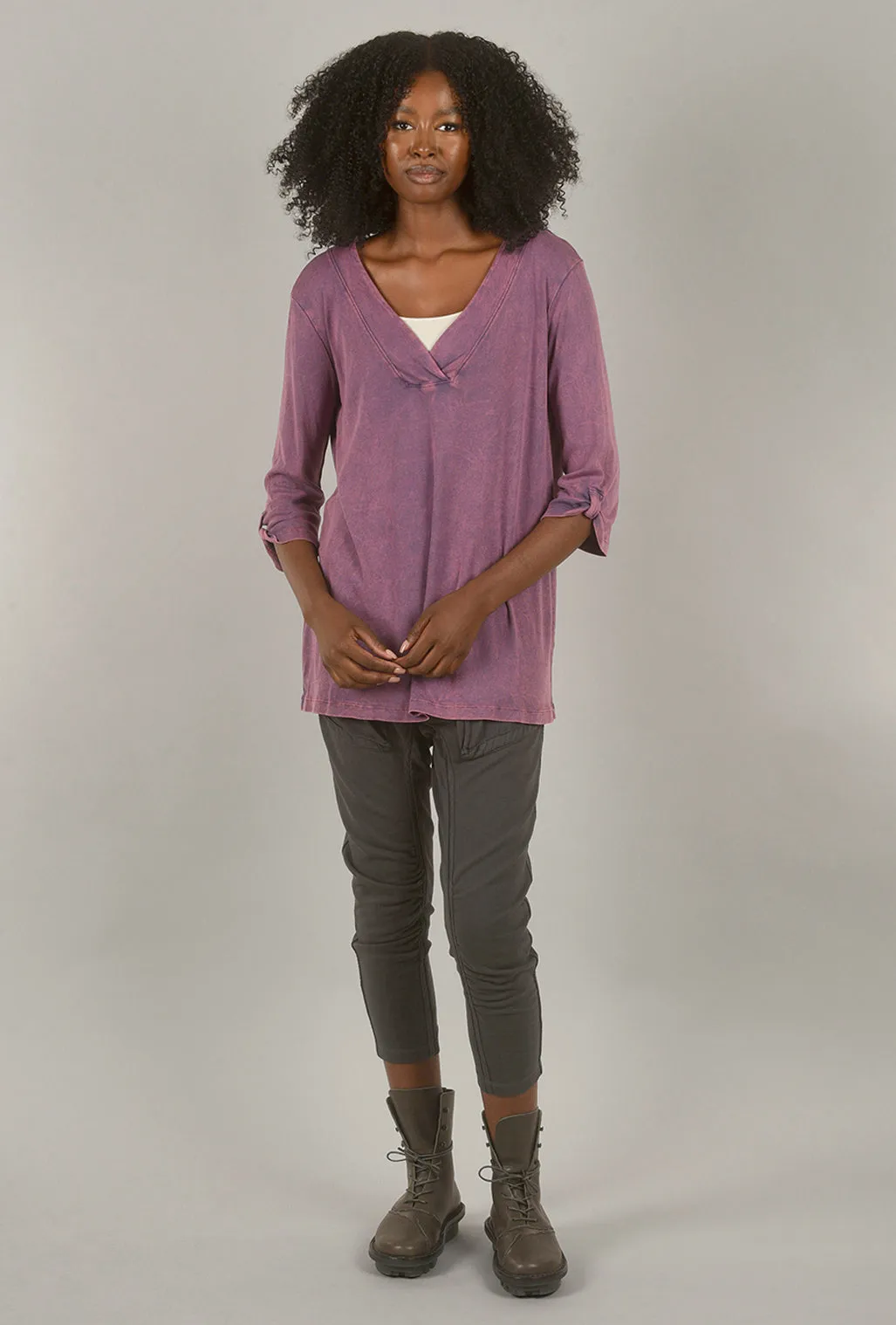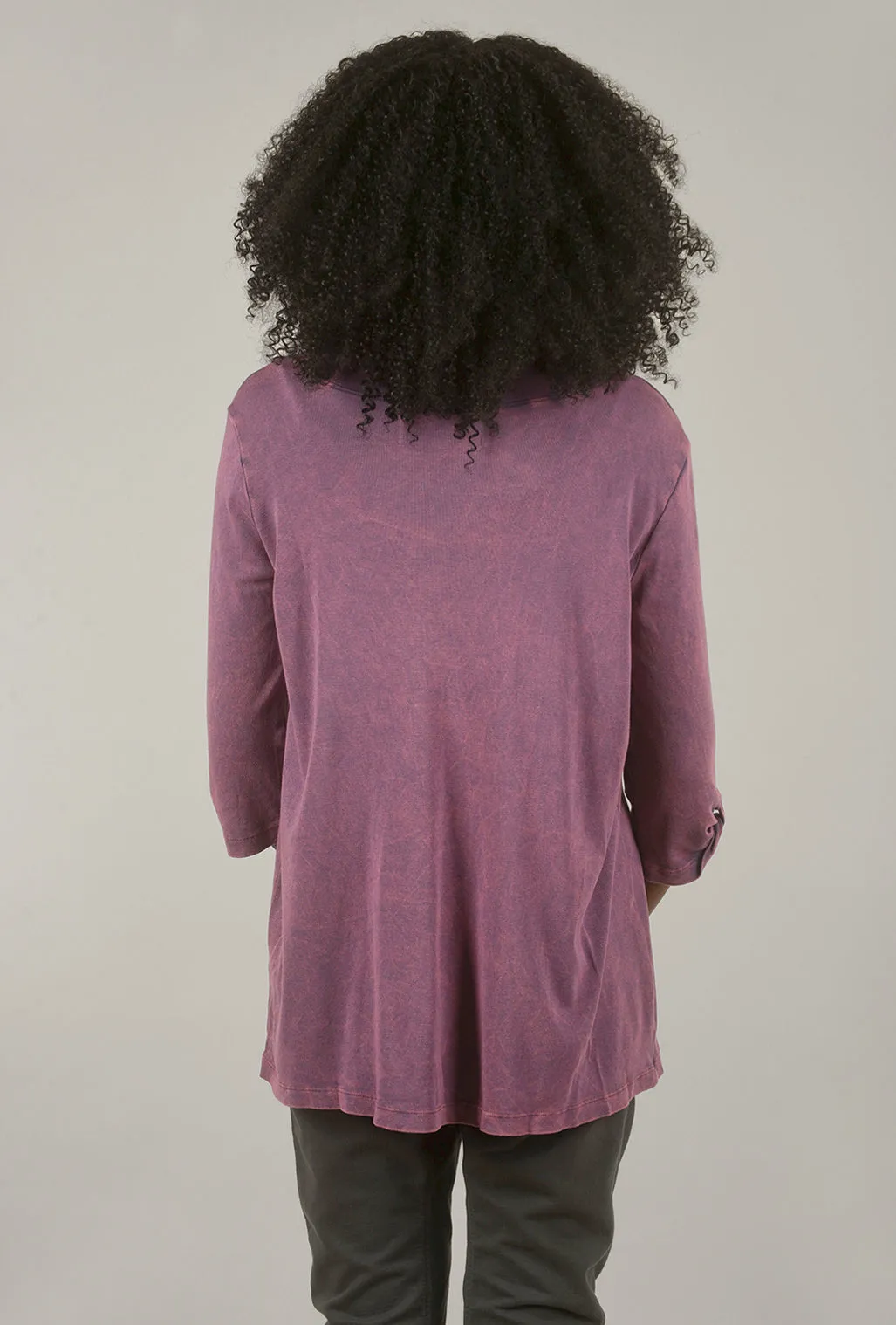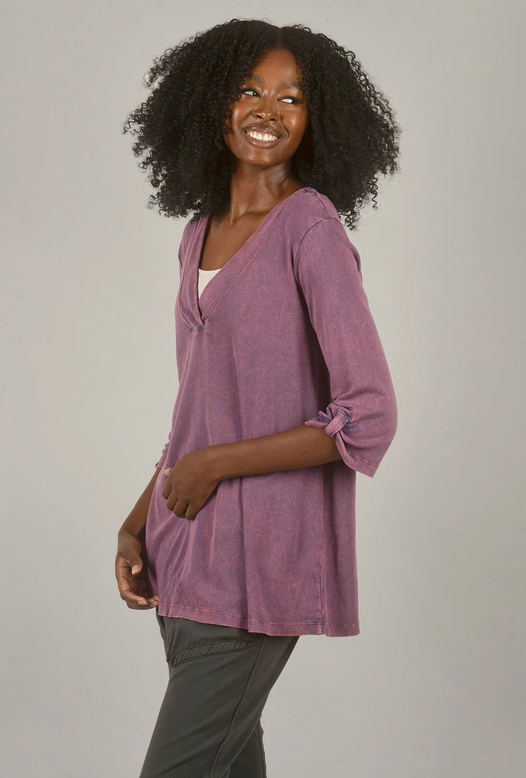 Done in a smooth cotton blend that's been mineral washed for instant cool, this easy knit tunic has a V neckline and three-quarter-length sleeves. The silhouette is an easy A-line with a relaxed fit.