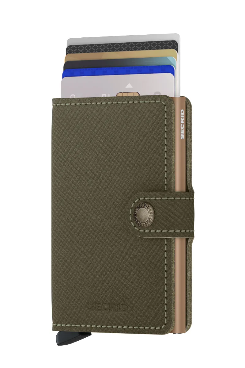 Small in size and surprisingly large in storage capacity, the Mini Wallet by SECRID combines the best of both worlds. The exterior holds banknotes, receipt and cards, while the aluminium Cardprotector allows you to slide out cards with one simple motion and protects them from bending, breaking and unwanted wireless communication.