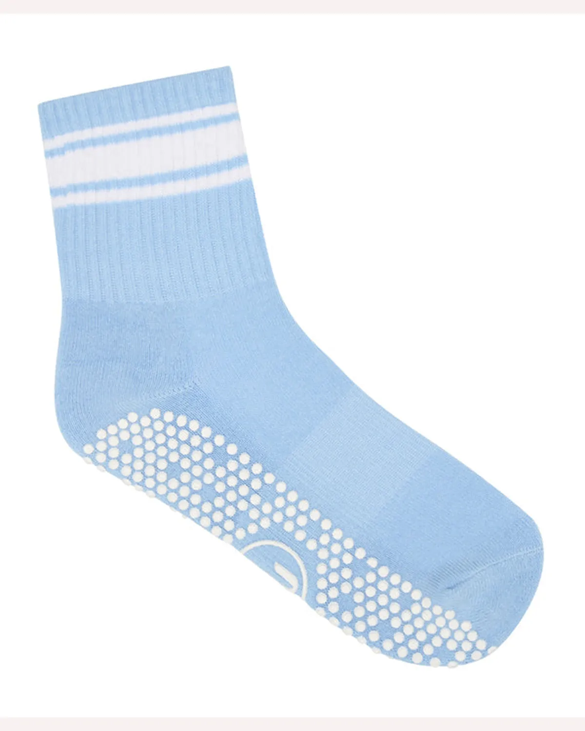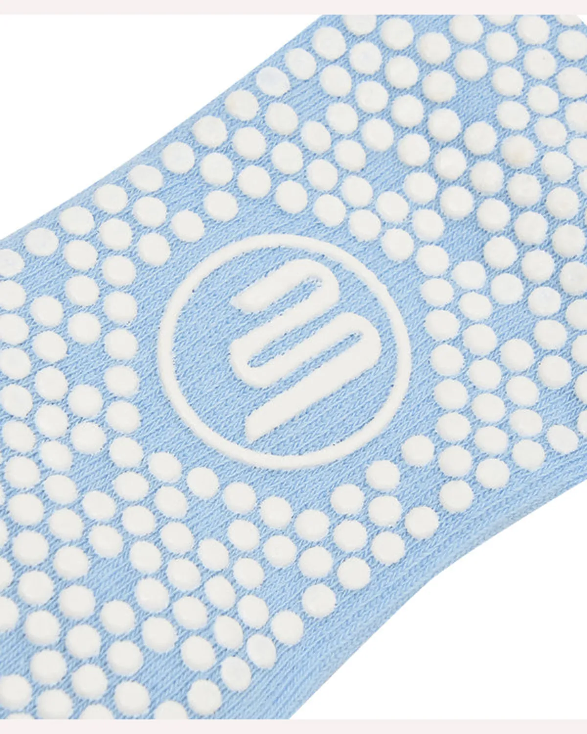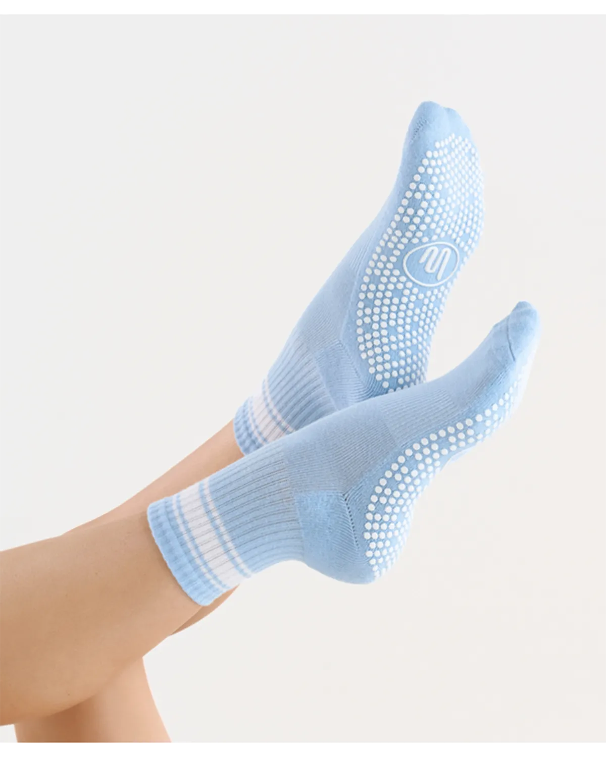 Experience unparalleled comfort and stability with our Crew Non Slip Grip Socks - Powder Blue Stripes. Designed with your active lifestyle in mind, these socks provide the perfect blend of grip, support, and style. Whether you're practicing Pilates, flowing through yoga, hitting the gym, or simply lounging at home, these grip socks are your ideal companion.