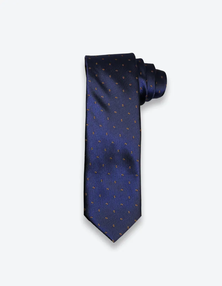 Perfectly classic with a playful touch, this Peyman Umay tie features mini brown dots on a midnight navy solid background.