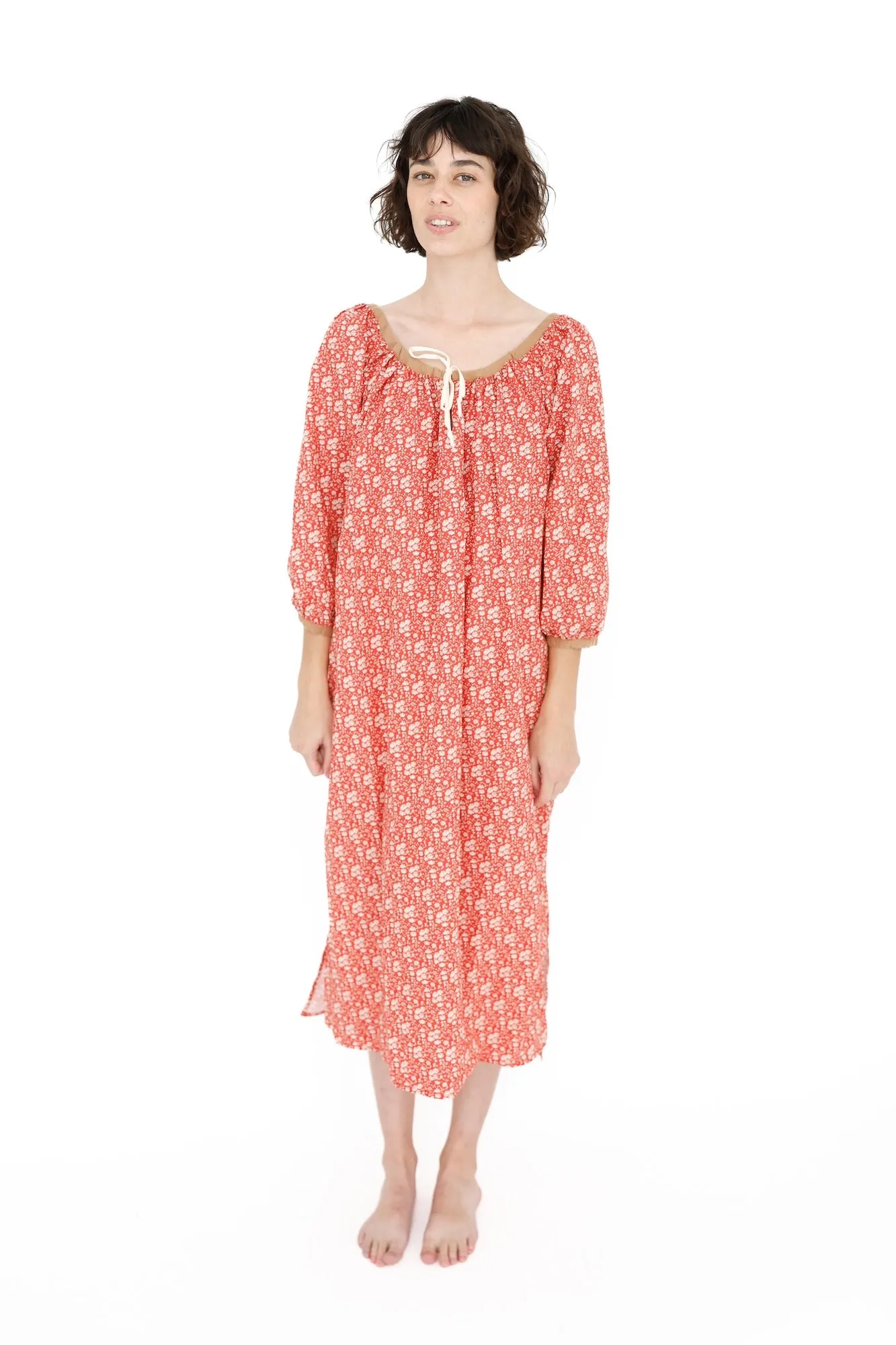If lounging was a sport, this just past your knee-length nightgown would be our dream uniform. With ladder-lace trim around the gathered neckline, adjustable neck tie, and subtle side slit.