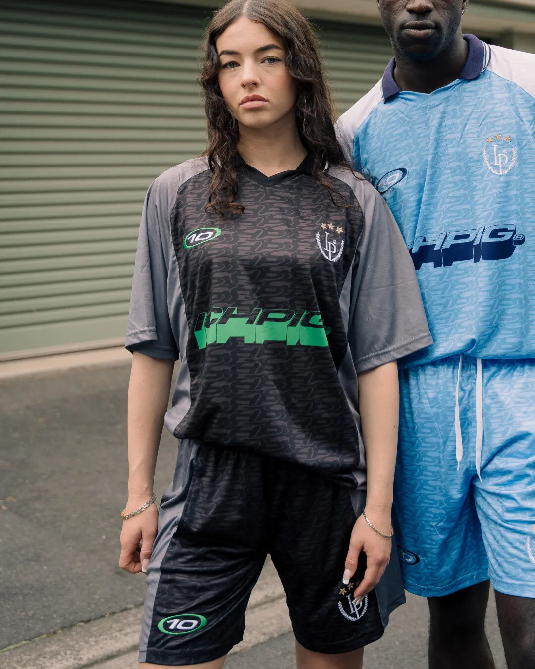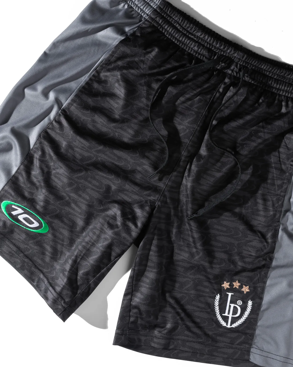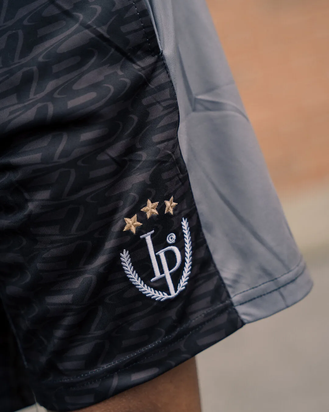 - Custom yardage sublimated print on contrasting panels, paired with a Double ICHPIG® embroidery just above the bottom hem on both legs