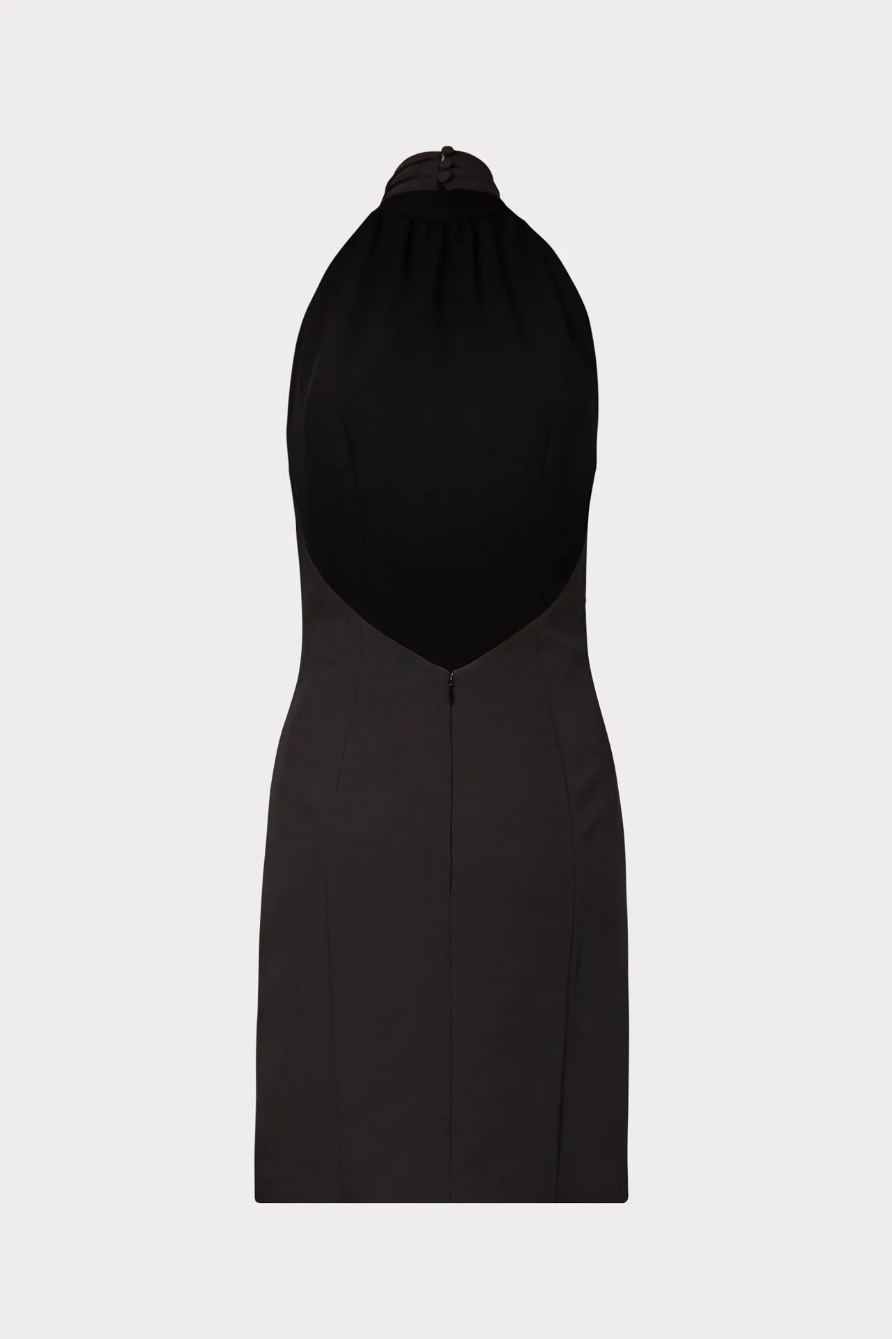 Whether you’re looking for business or pleasure, the Penny Mini gets it done every time! It has a high, halter neckline, an open back, hugs every curve, and hits above the knee. So simple. So chic. It comes in ecru, black, and neon pink.