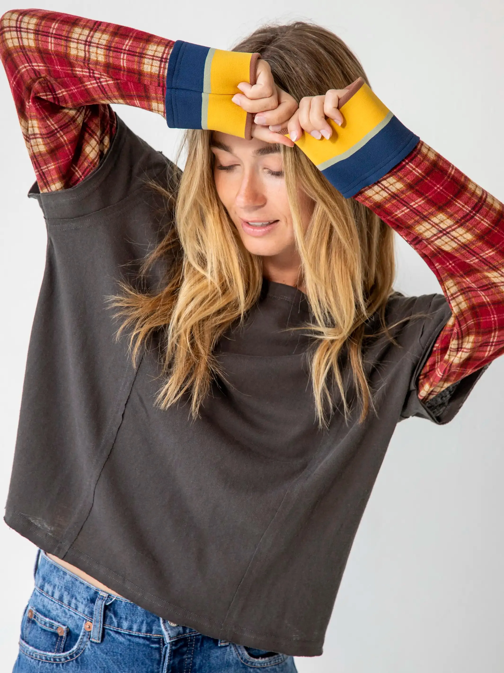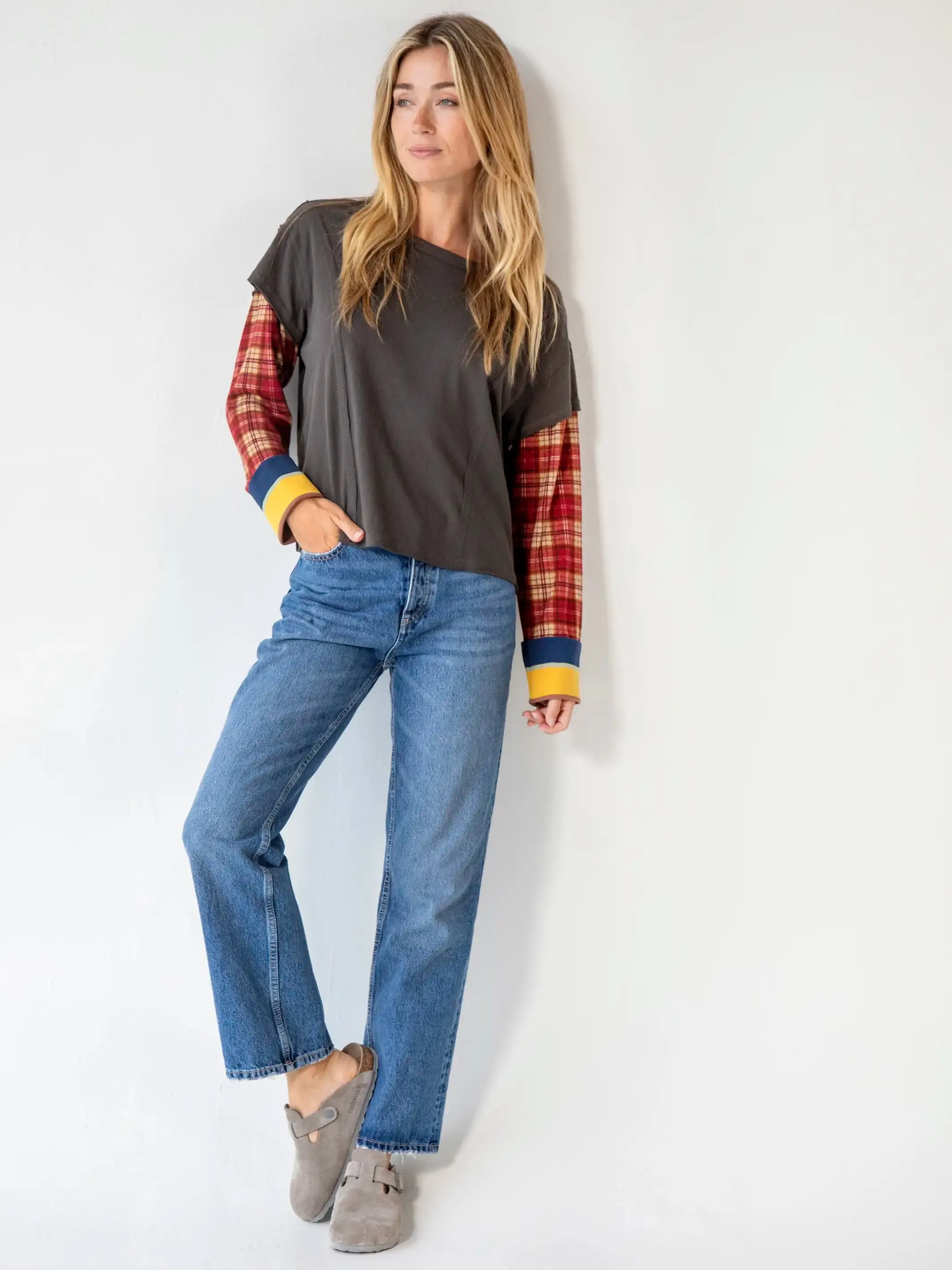Looks like 2 layered tops but it's really 1! Soft, cozy & laid-back!