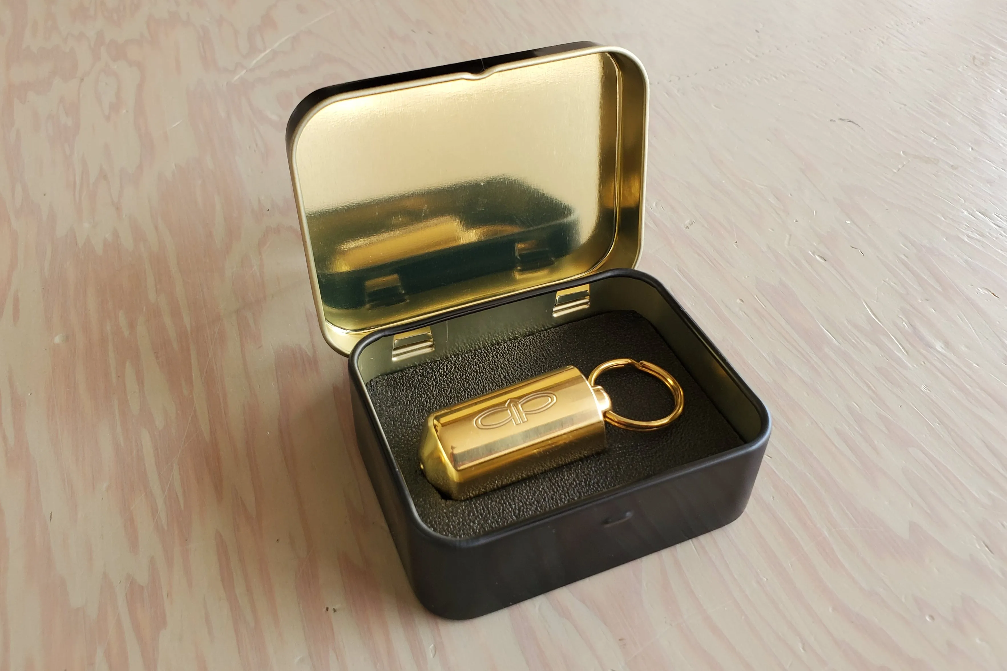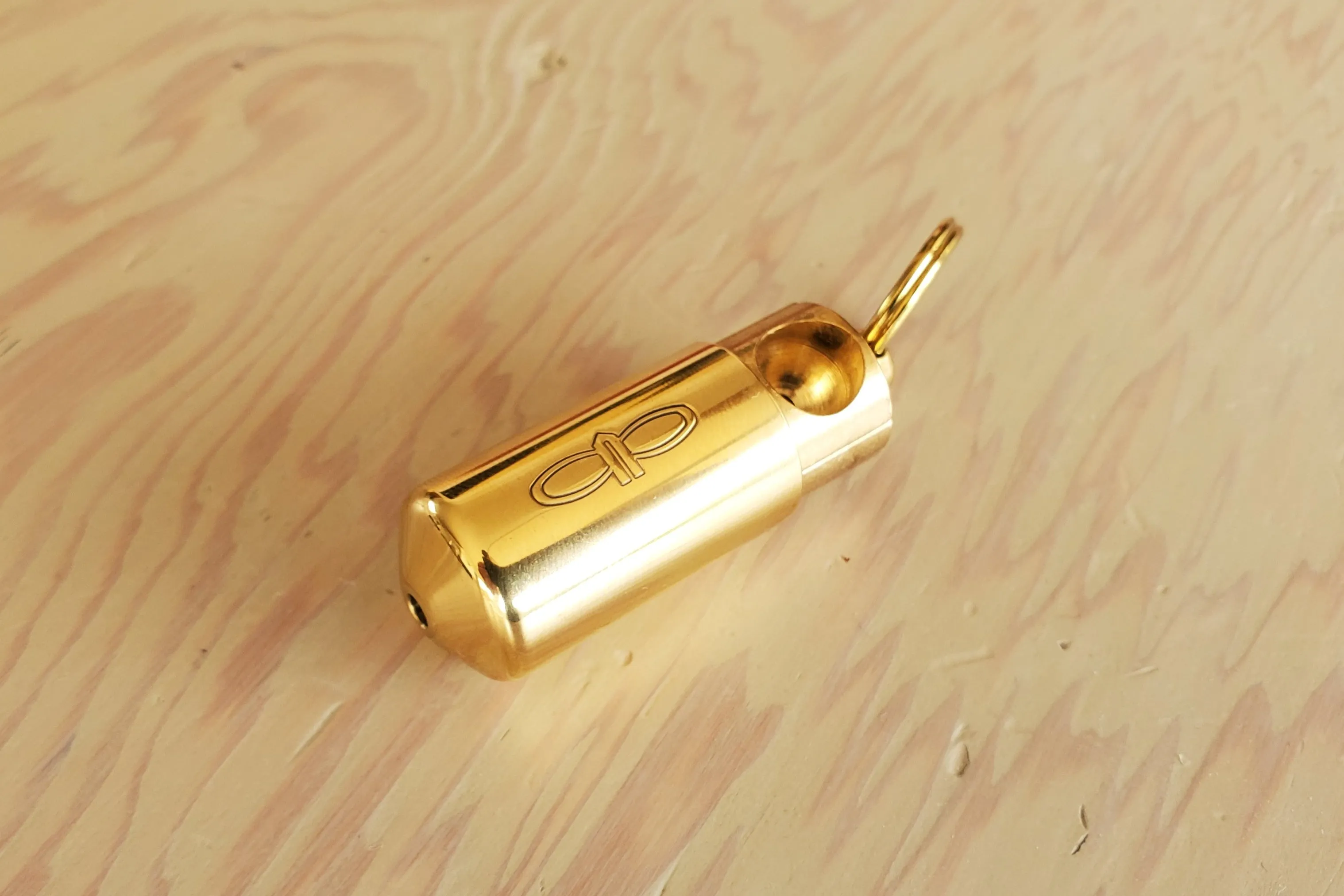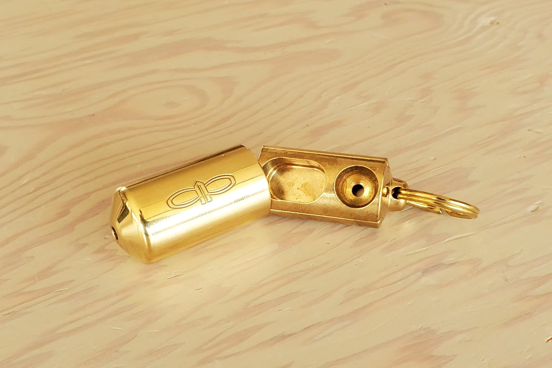 Portable and discrete. Cool and odorless (when closed). Easy to use. Has extra stash compartment. Clicks cleanly into three positions from closed, to open, to reload. Made of high quality brass in Sweden. Comes in attractive tin.