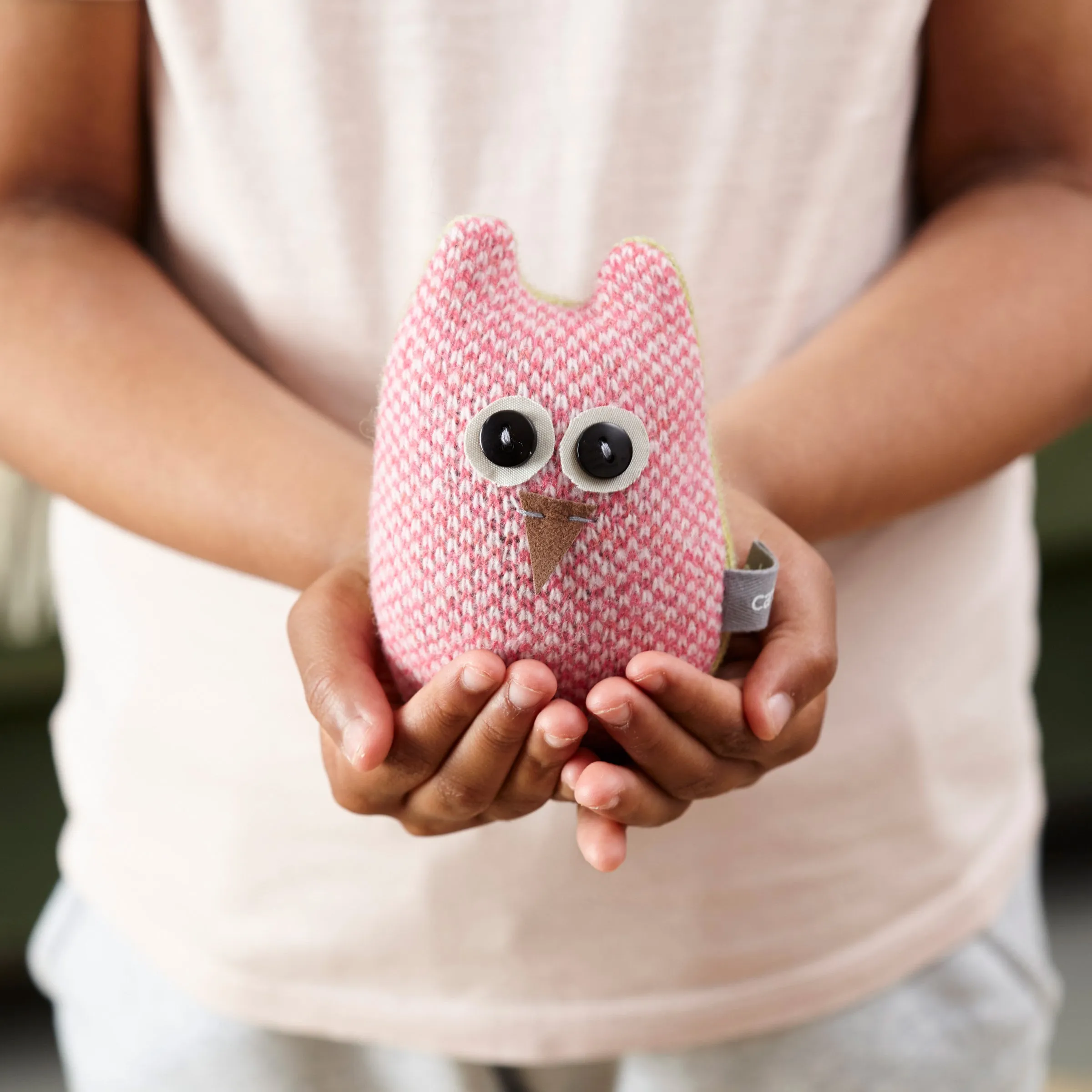 These mini knitted owls are filled with fragrant lavender buds and wheat. Handcrafted from our unique felted lambswool fabrics, they are irresistibly cute and smell great. Fun to have and hold this owl makes a lovely gift or cute little companion.