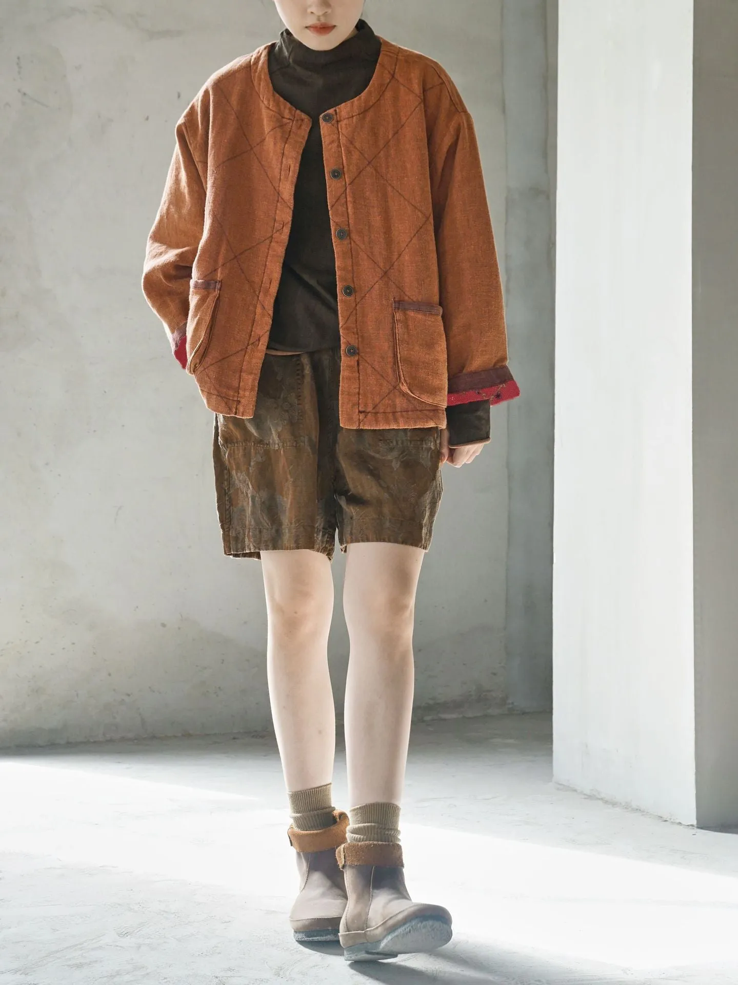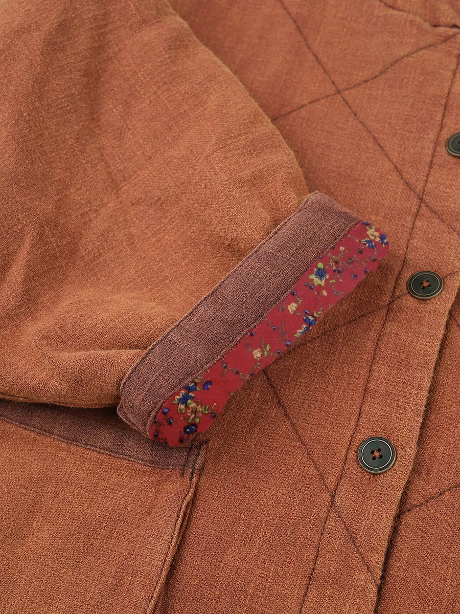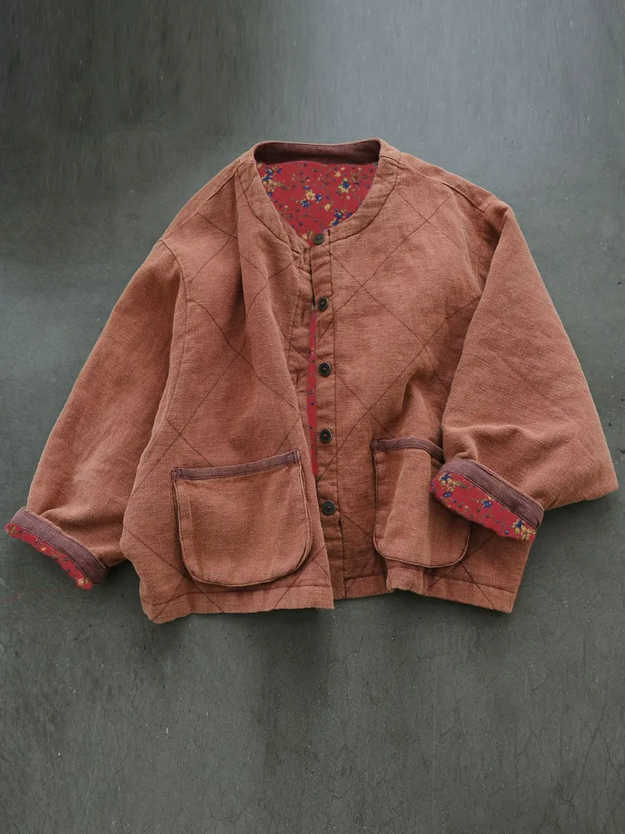 This vintage styled padded coat is made of 100% linen, perfect for the winter and autumn seasons. The o-neck collar provides a classic touch, while the solid pattern and waist sleeves add stylish details. Keep your belongings close with convenient pockets.