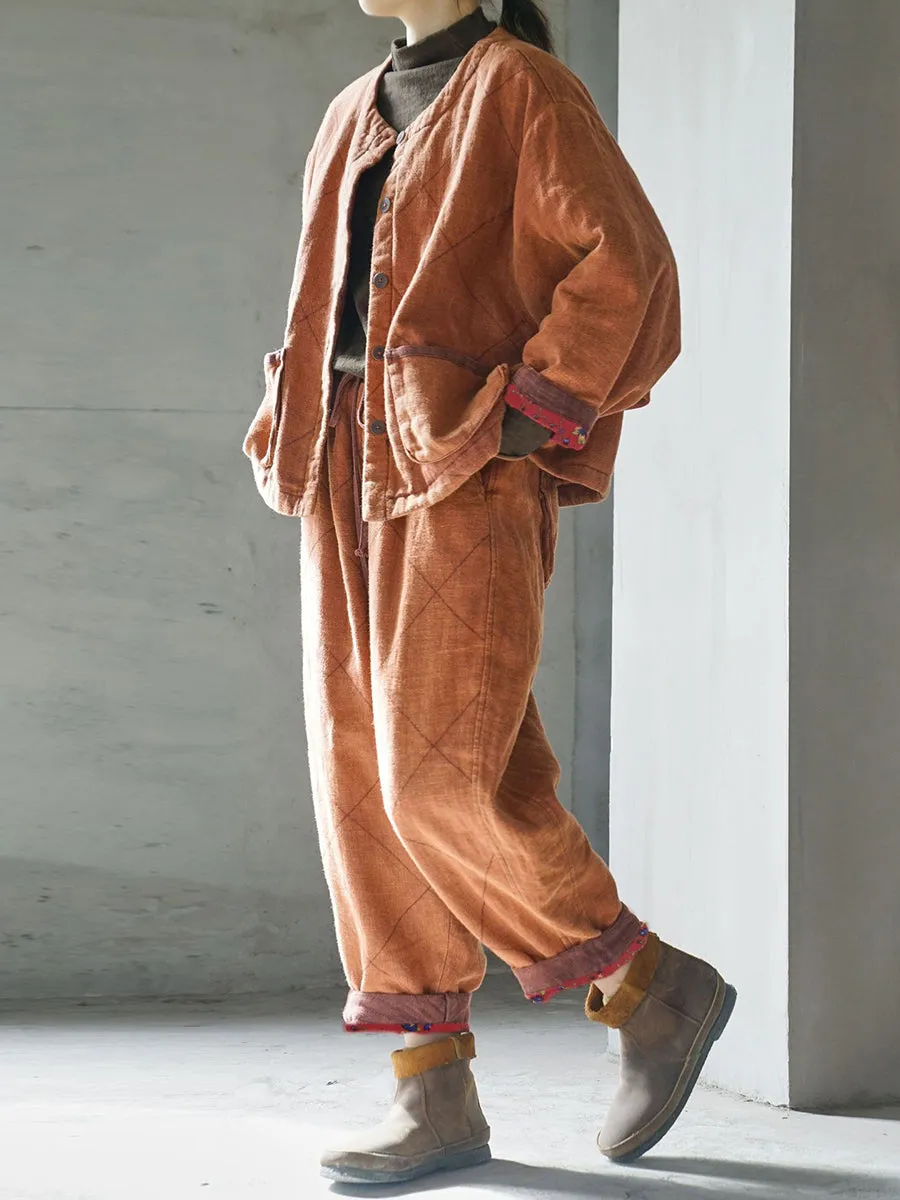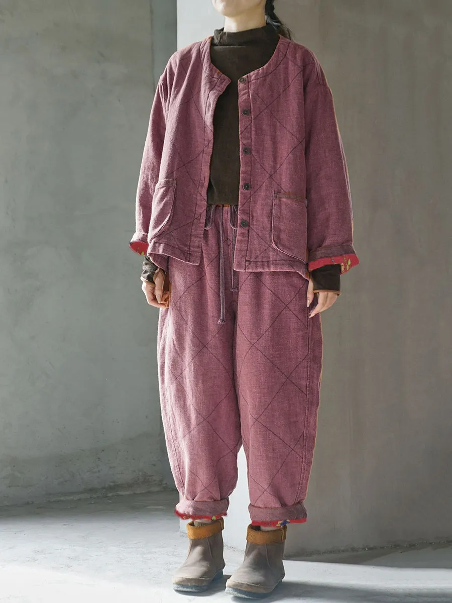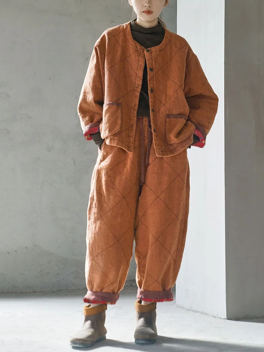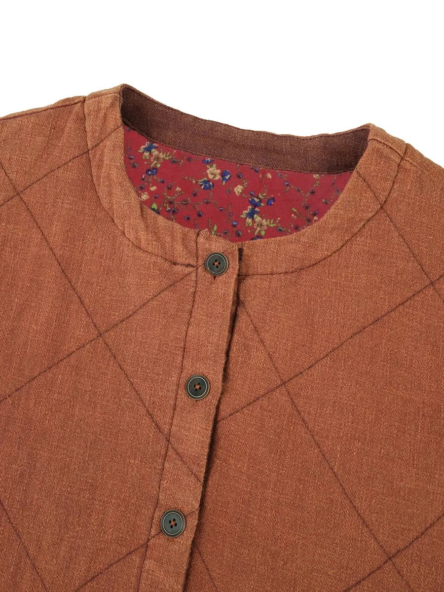 This vintage styled padded coat is made of 100% linen, perfect for the winter and autumn seasons. The o-neck collar provides a classic touch, while the solid pattern and waist sleeves add stylish details. Keep your belongings close with convenient pockets.