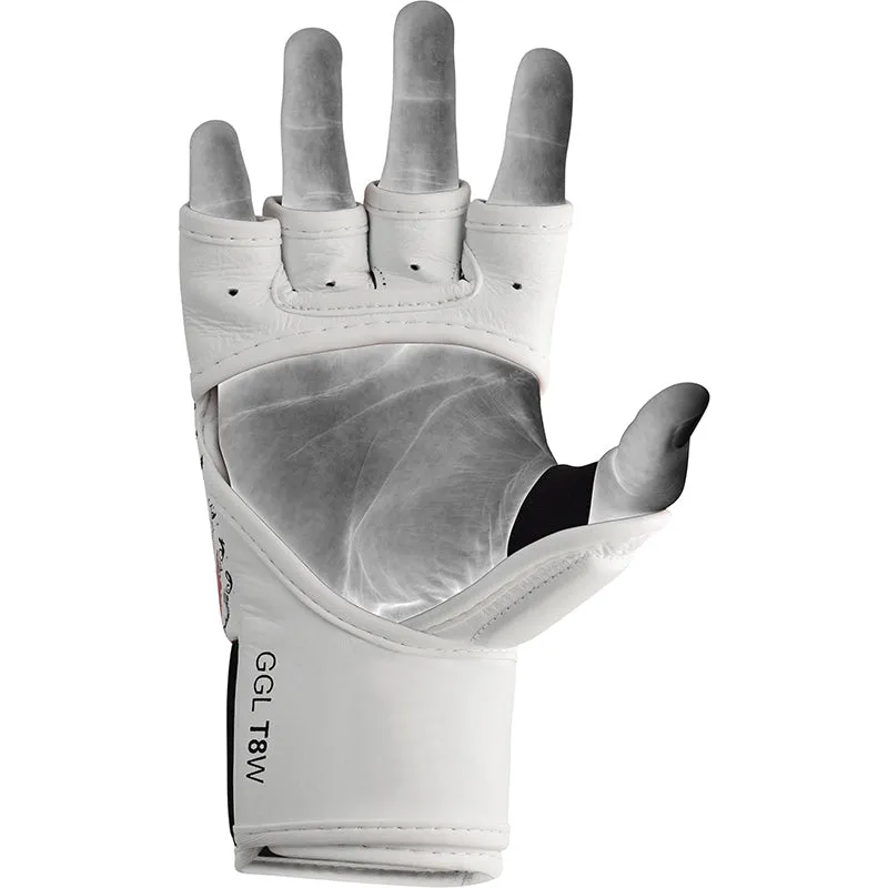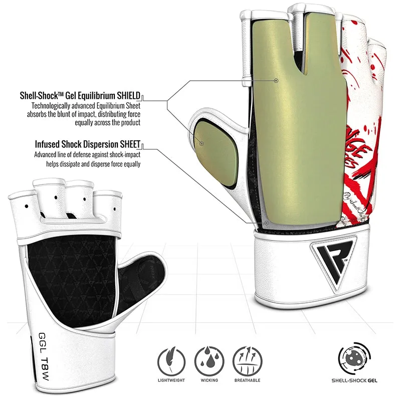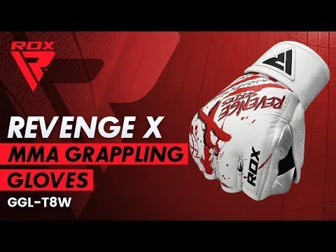 Tap into the spirit of the warrior, and make sure that your opponent taps out with our 'Revenge X' MMA grappling gloves. Boasting an intimidating 'blood splatter' design, these robust and versatile mitts are the tool of choice if you're looking to improve your grapples, or need to drive your opponent back into the ropes with a flurry of knockout blows. They have an open-palm design to ensure that moisture and sweat are wicked away from your skin, and they're skinned in high-quality leather to ensure resistance to the rigours of a long bout. They also combine a thick slab of Shell-Shock gel over EVA-LUTION foam to protect your hands from damage, and keep you punching long after your opponent has given up the ghost. If you're looking for the ultimate MMA grappling gloves, look no further! (SMALL & MEDIUM SIZES RECOMMENDED FOR UP TO 14 YEARS OF AGE)