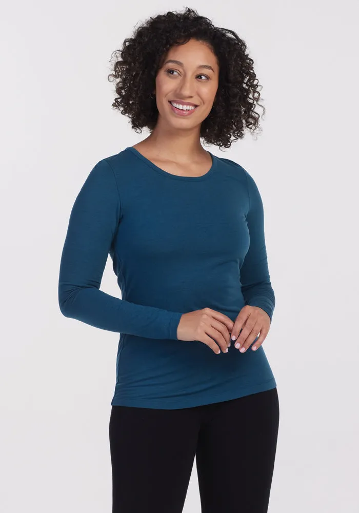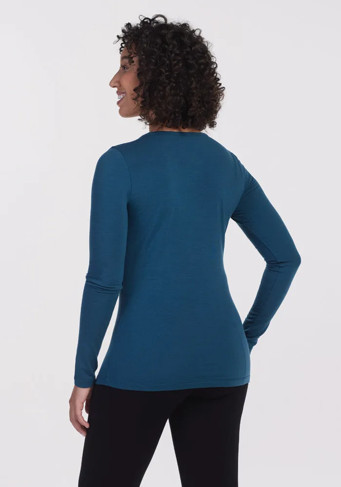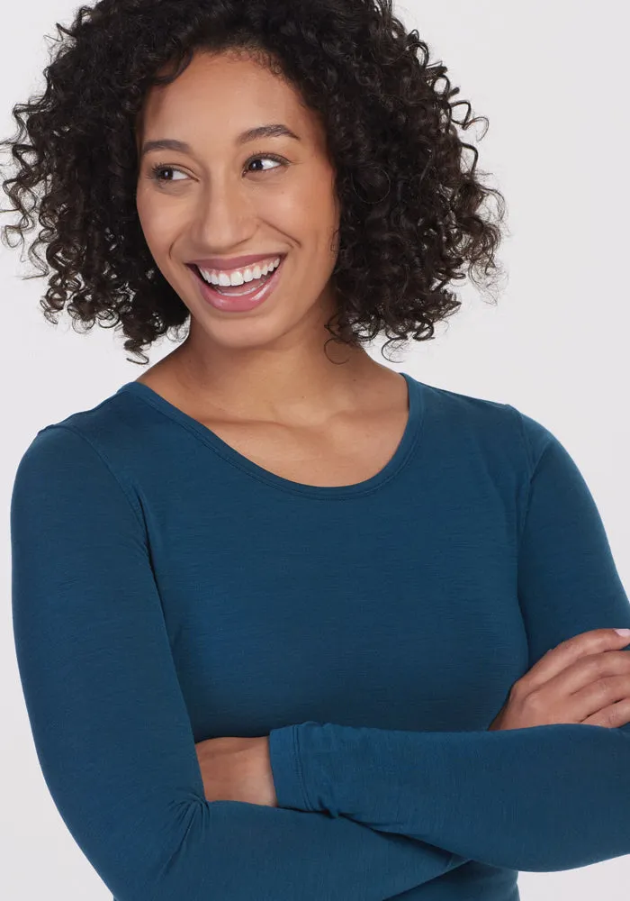 Say hello to your ultimate travel companion—the Remi Long Sleeve T-Shirt in Real Teal. This travel-friendly Merino wool top is designed for adventurers who refuse to compromise on comfort or style. Lightweight and buttery soft, it packs effortlessly into any suitcase and emerges wrinkle-free, ready to wear.