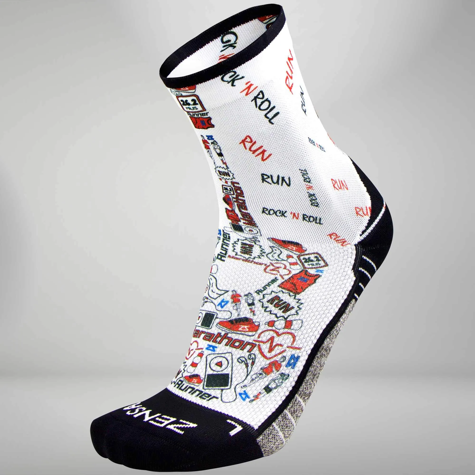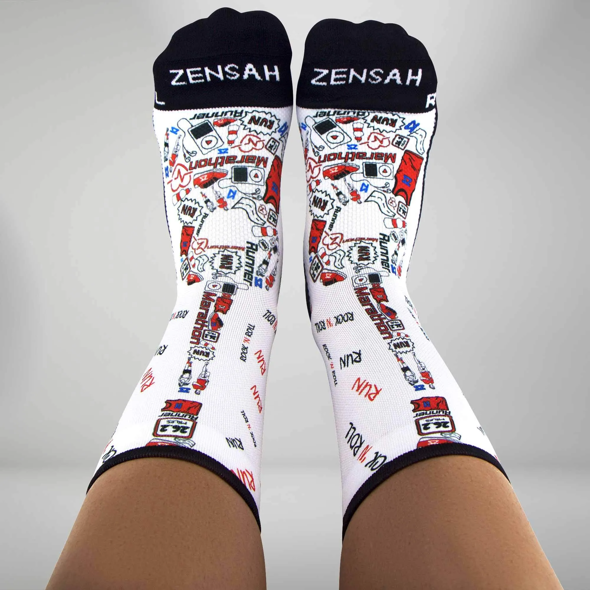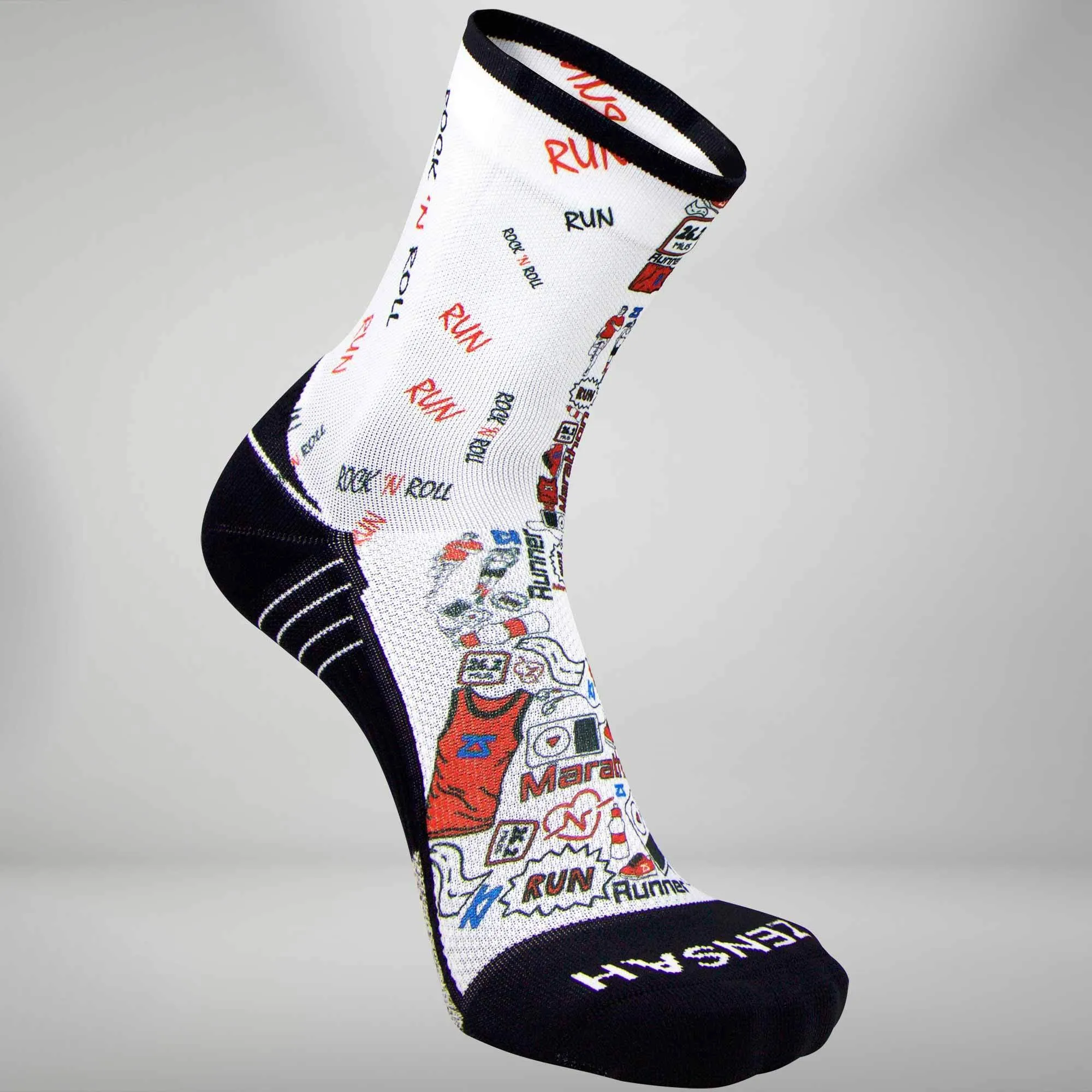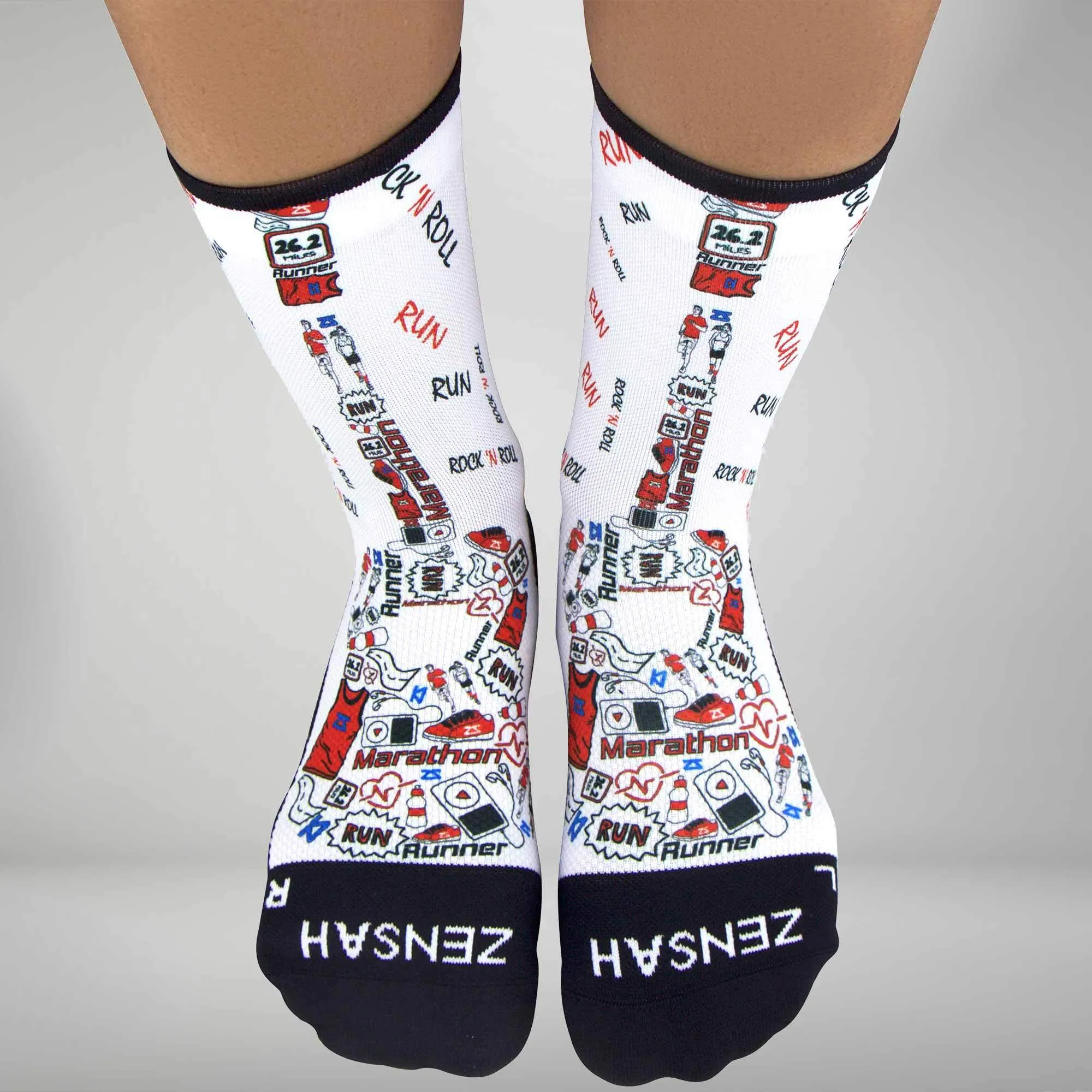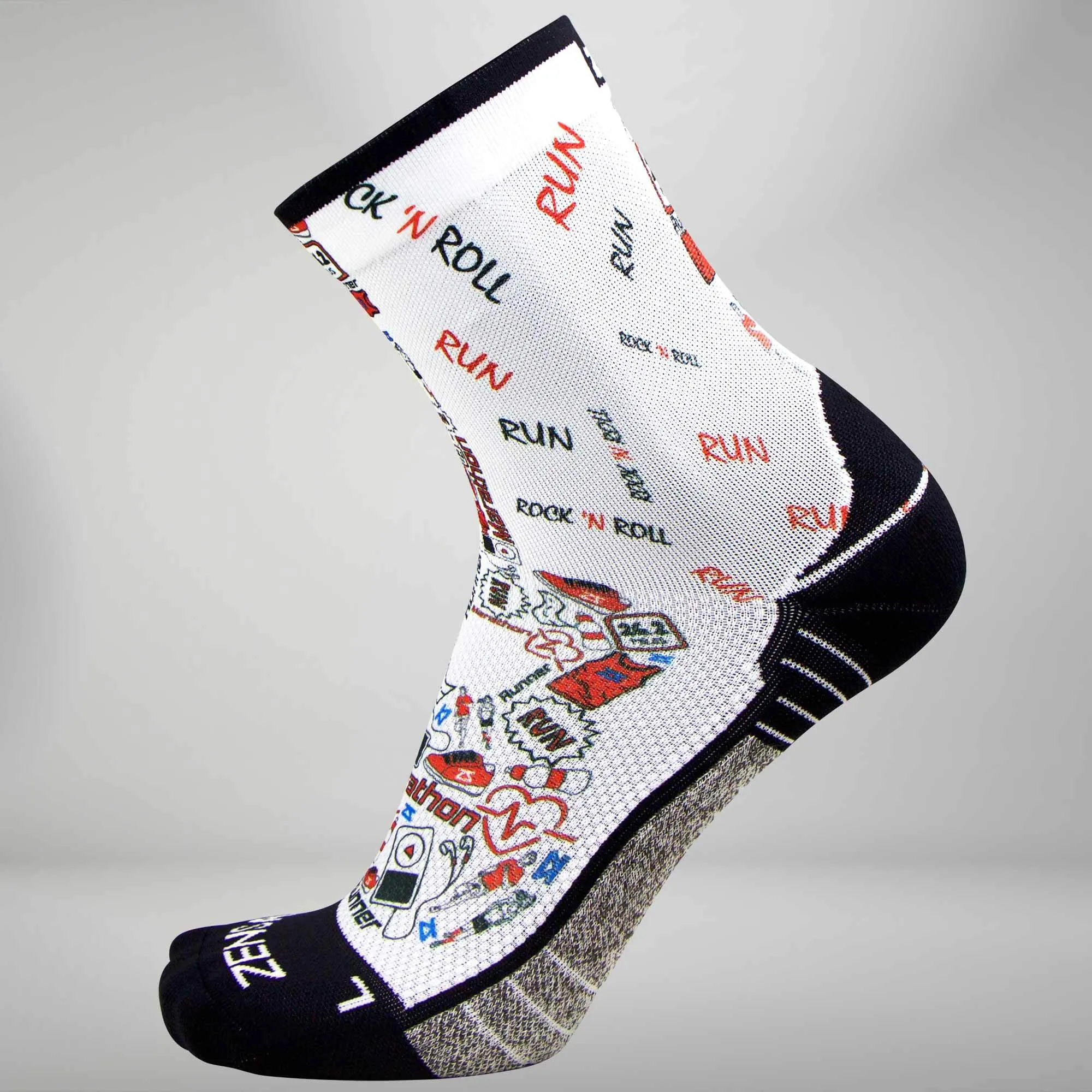Our Shakeout Running Socks with a Rock & Roll limited edition print! Use to stay motivated while training or remember your accomplishment.