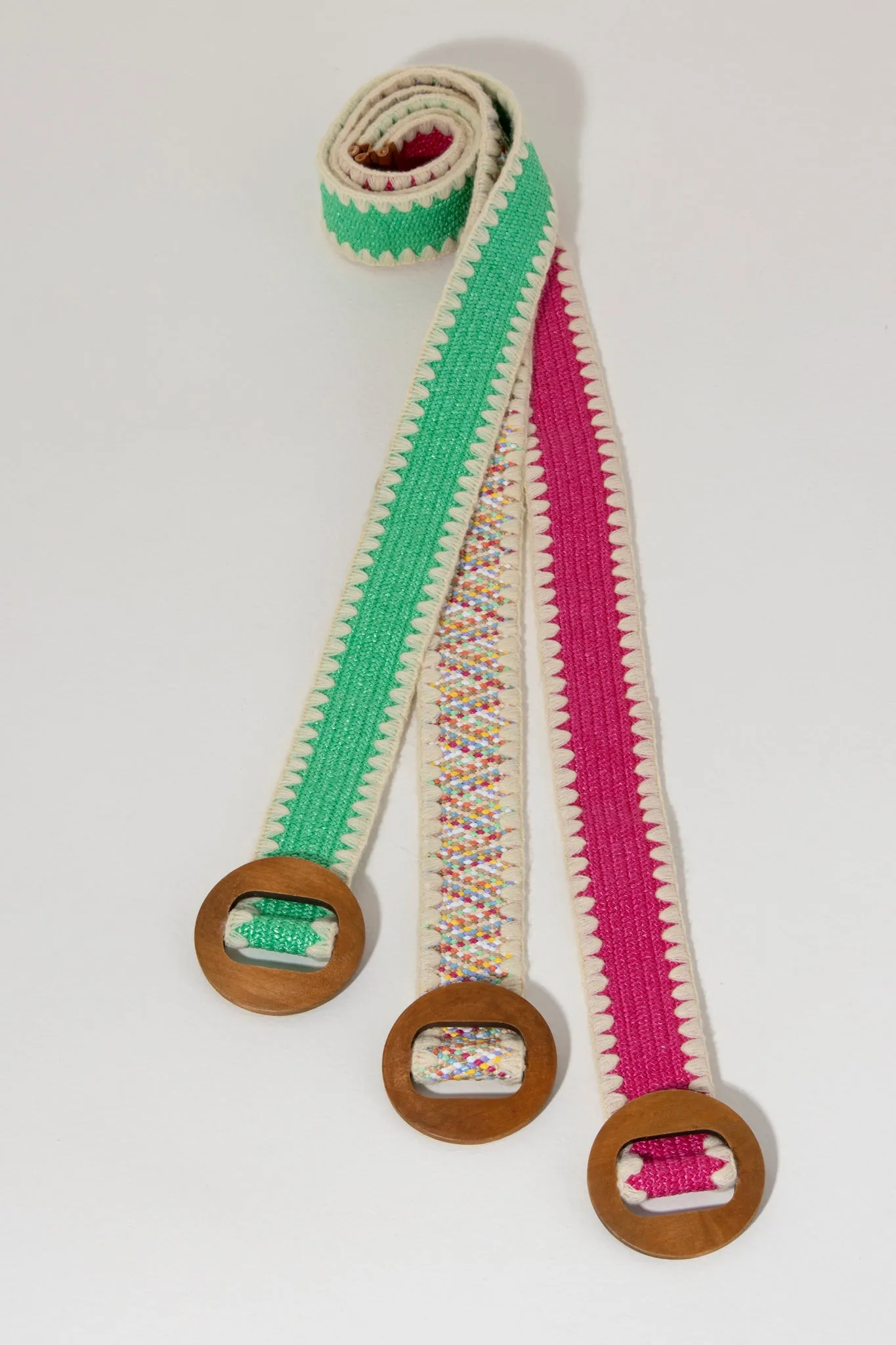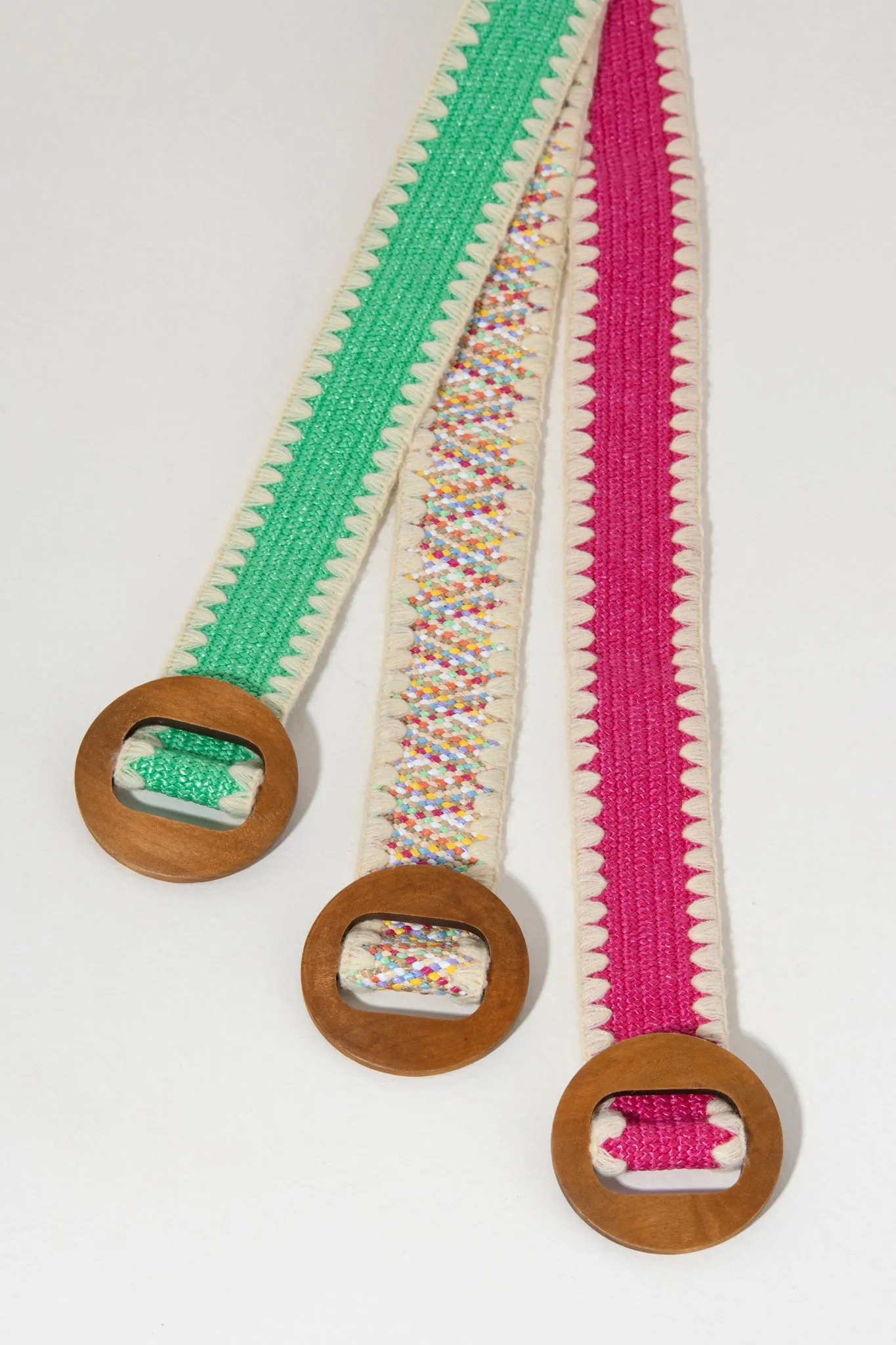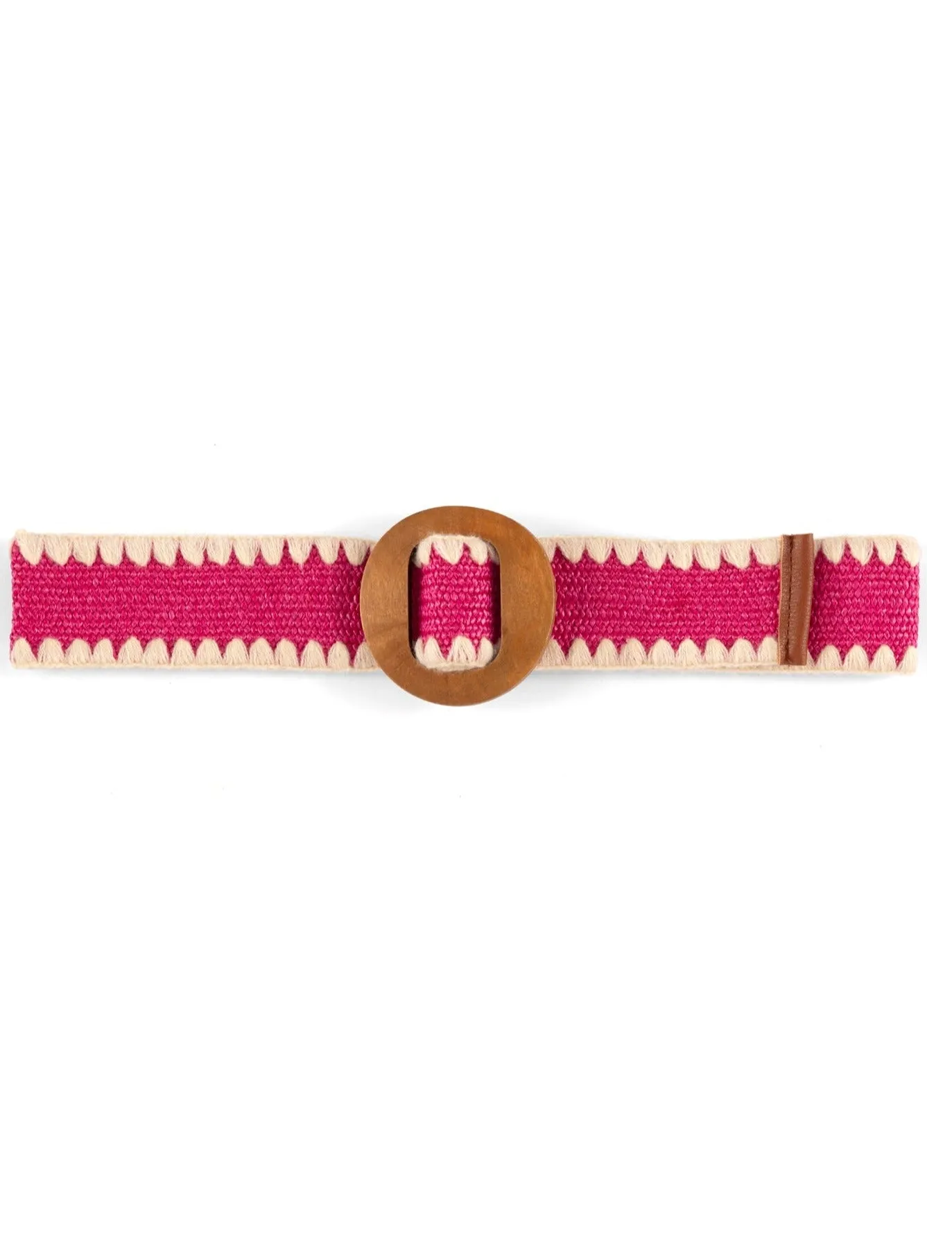 Tie your outfit together with Shiraleah's magenta Kayla Belt. With a beautiful natural wood buckle and a little extra stretch from the elastic material, this adjustable waist piece is the perfect accessory to complete your look. Pair with other Shiraleah pieces to complete your summer style!