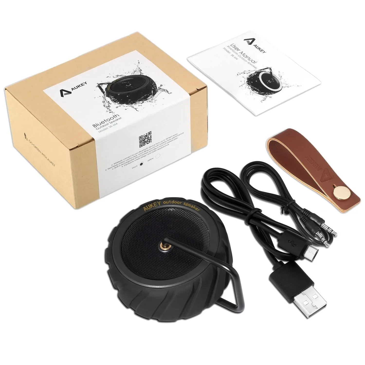 Durable, shock resistant rubber tire form factor is ready to hit the road or the river, from daily wear and tear to white water rafting - the SK-M4 is along for the ride. You can even connect your ancient non-Bluetooth 3.5mm audio devices via AUX input with included 3.5mm audio cable.