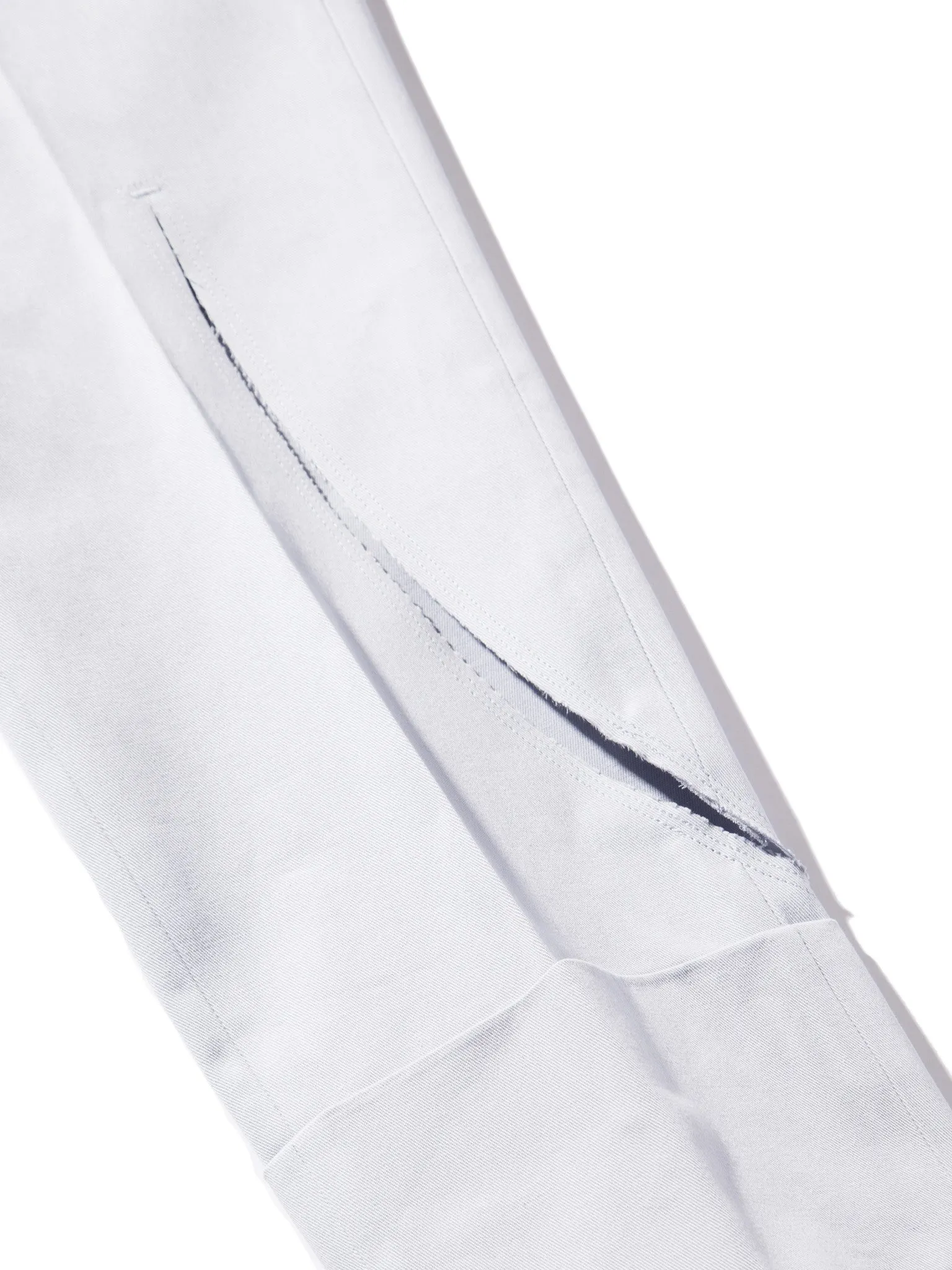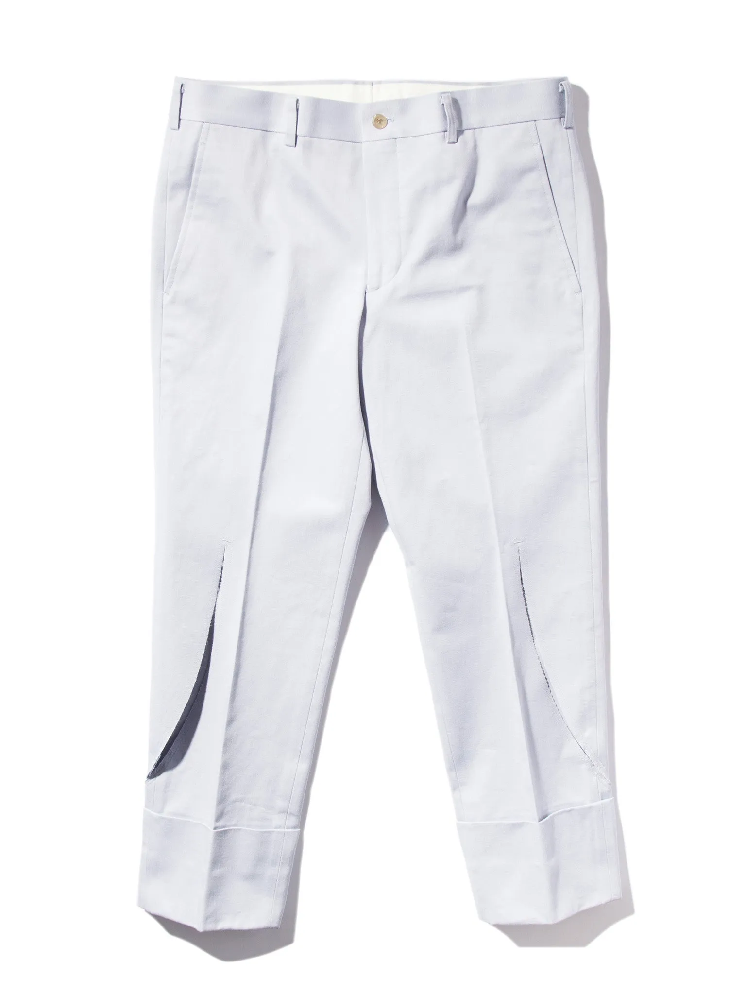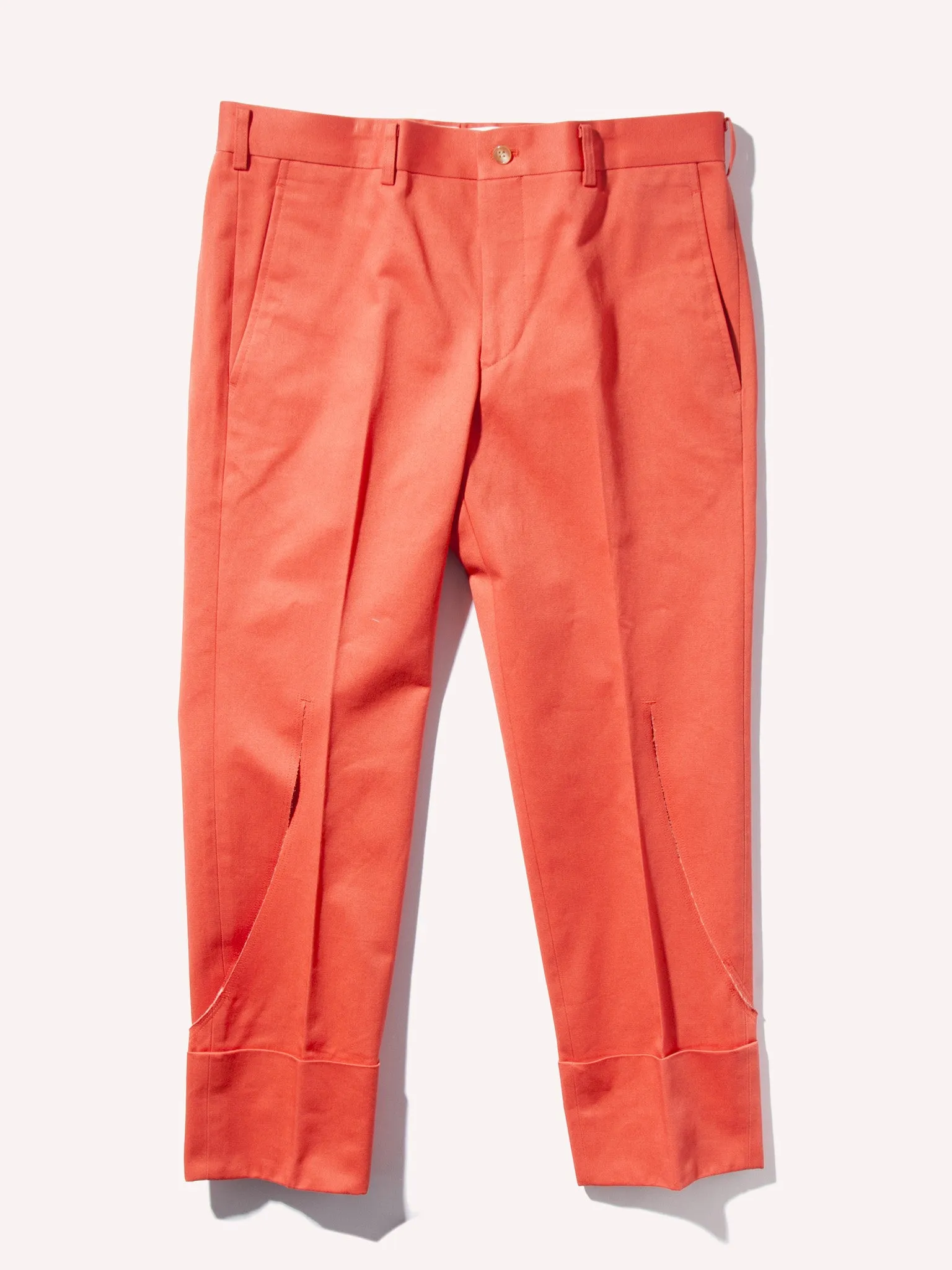 Comme Des Garcons Homme Plus heavy twill high water pant with cut outs at the knee. A really beautiful fabric weight, hand feel and color. Quite a unique article of clothing. Truly genuine, truly dope.