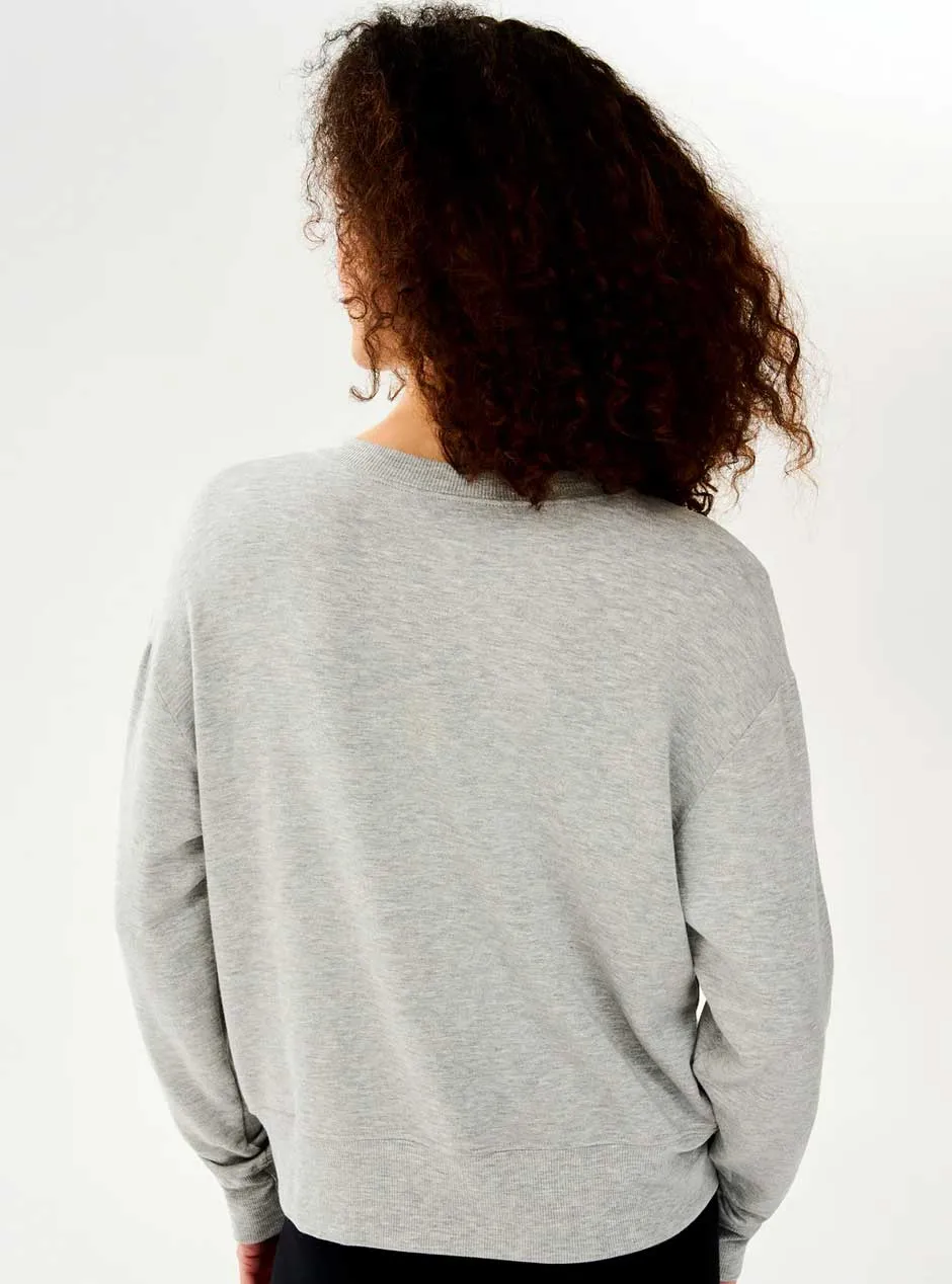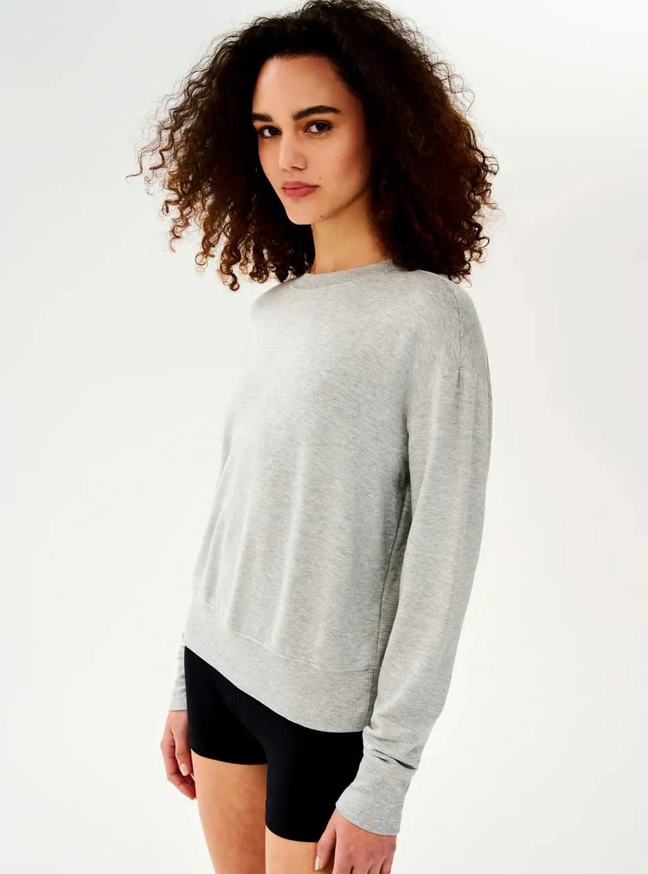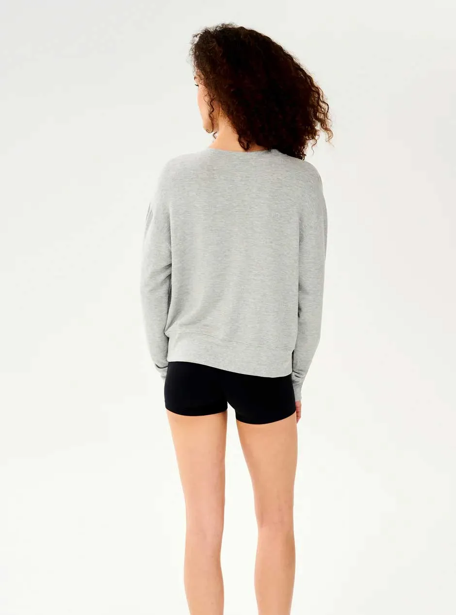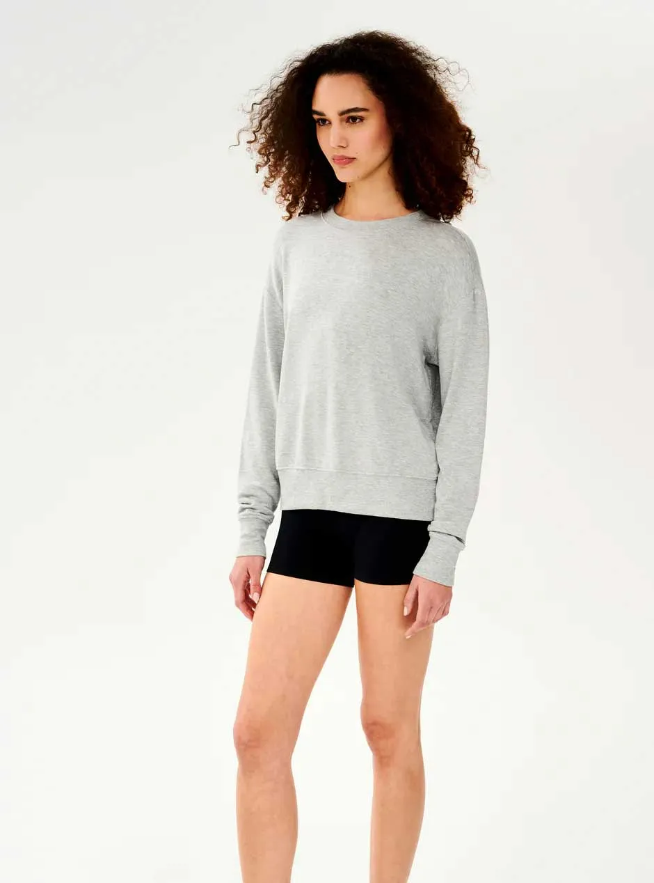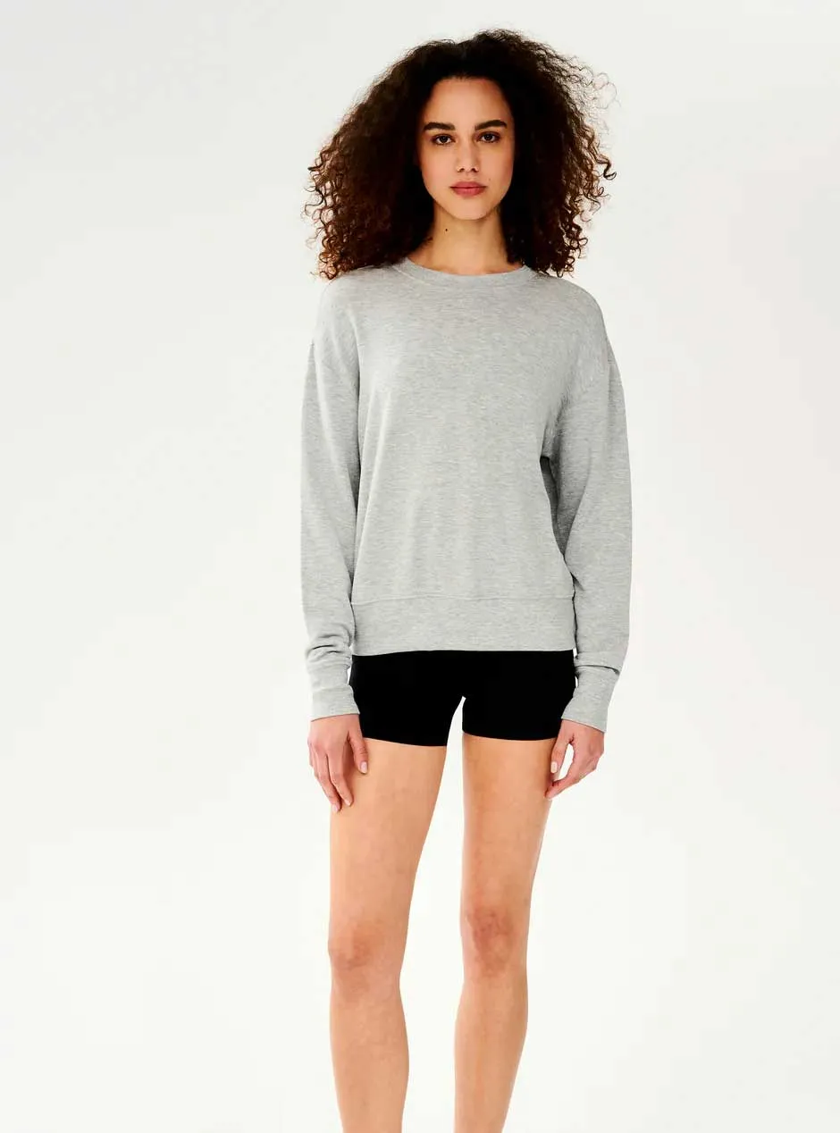 This classic sport inspired crewneck pullover is soft, versatile and ultra-flattering. The ultra luxe fleece body is finished with, dropped sleeves ribbed hem and sleeve cuffs. MADE IN LOS ANGELES to minimize carbon footprint. BEST FOR: Warming up and cooling down after running, yoga, CrossFit, barre, Pilates, cycling and spin class.